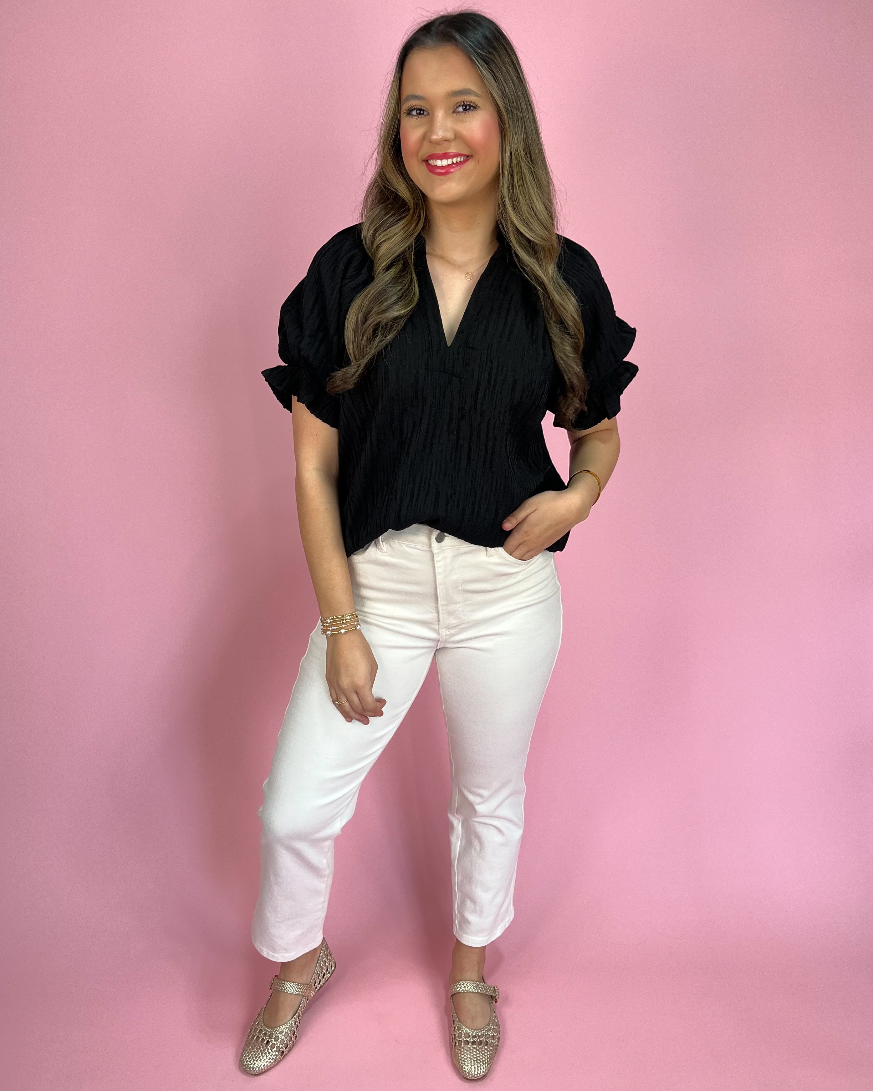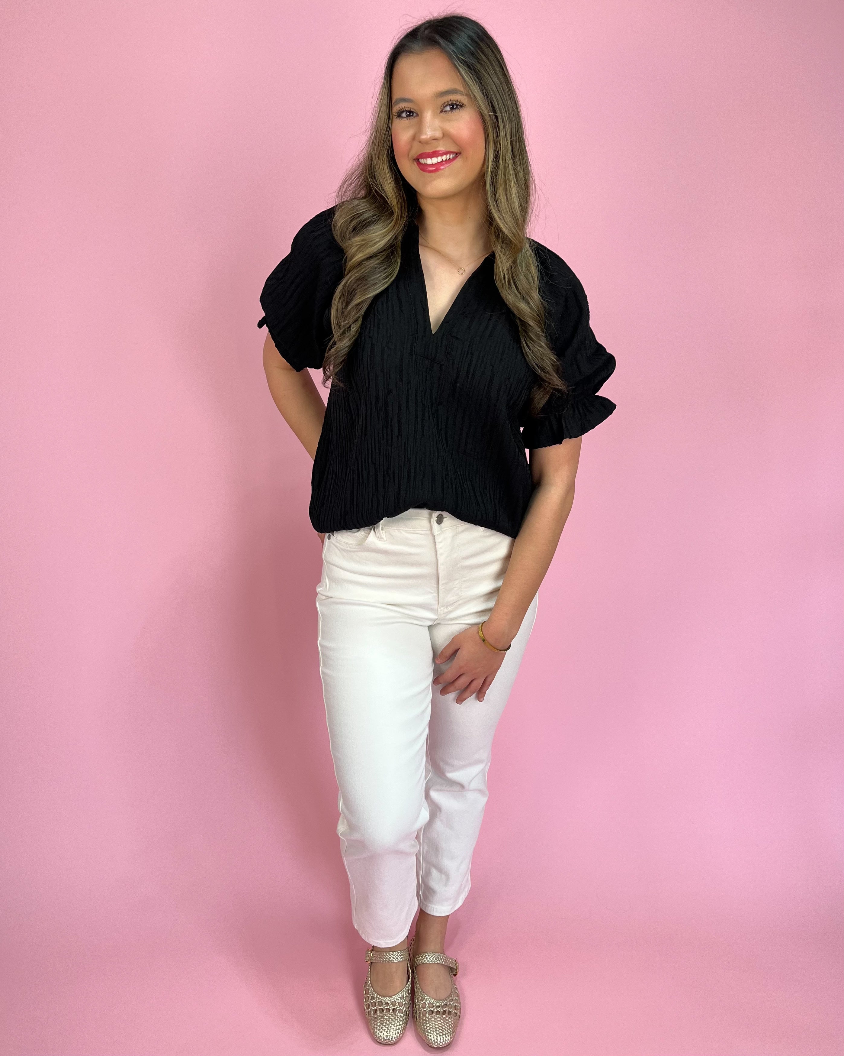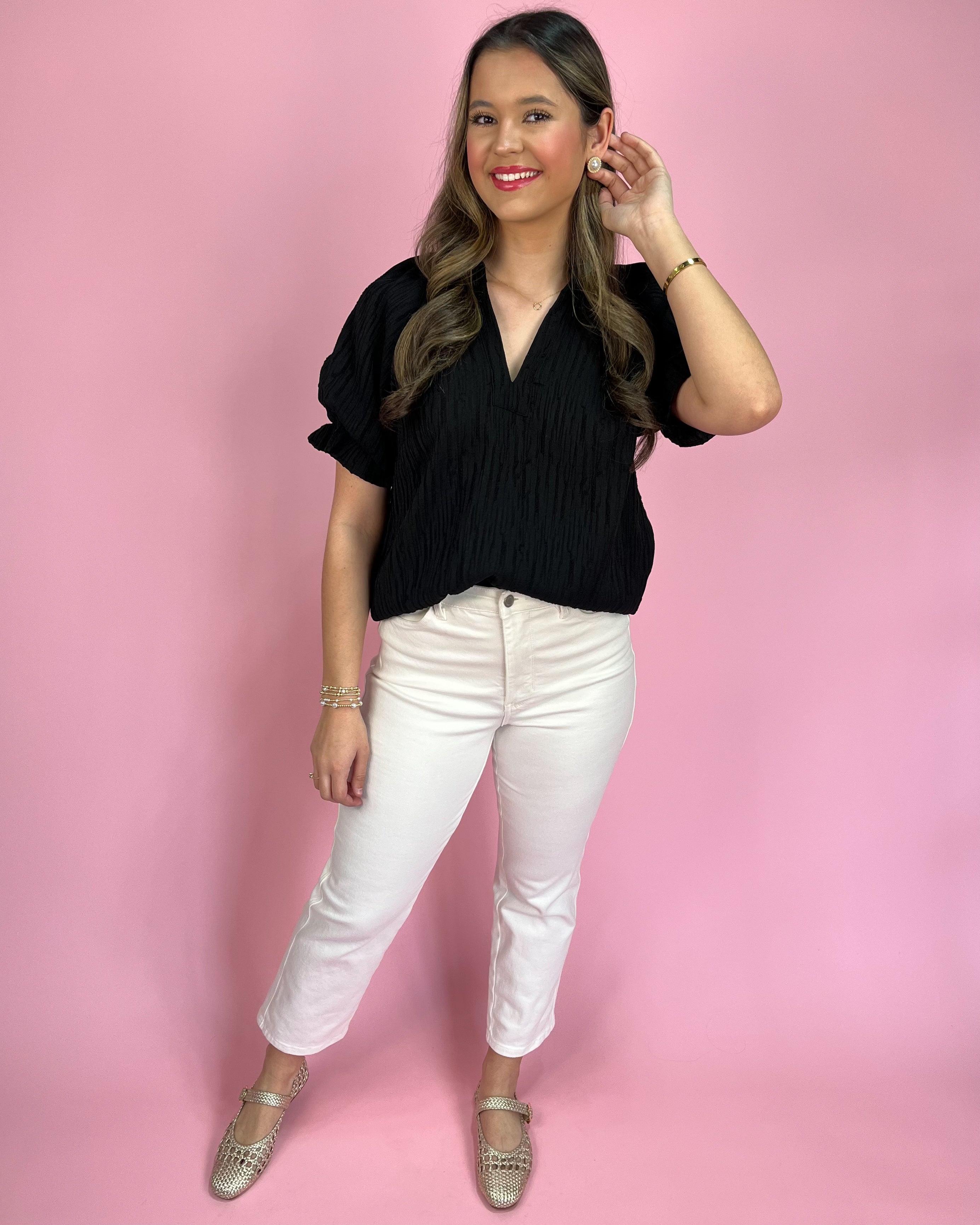If you love an easy “throw on and instantly look put together” top… this one is calling your name 😍 The textured fabric gives it that elevated, boutique feel while still being totally wearable for everyday.