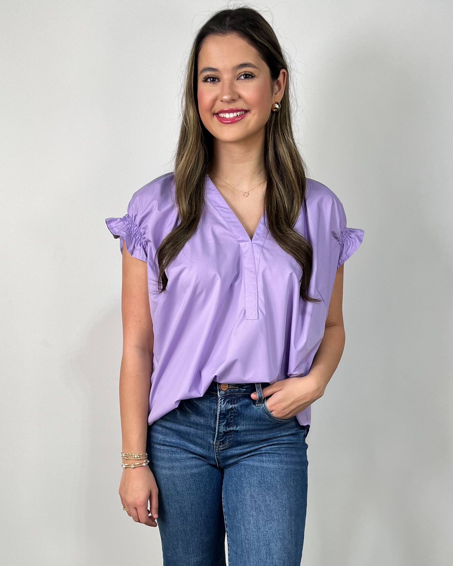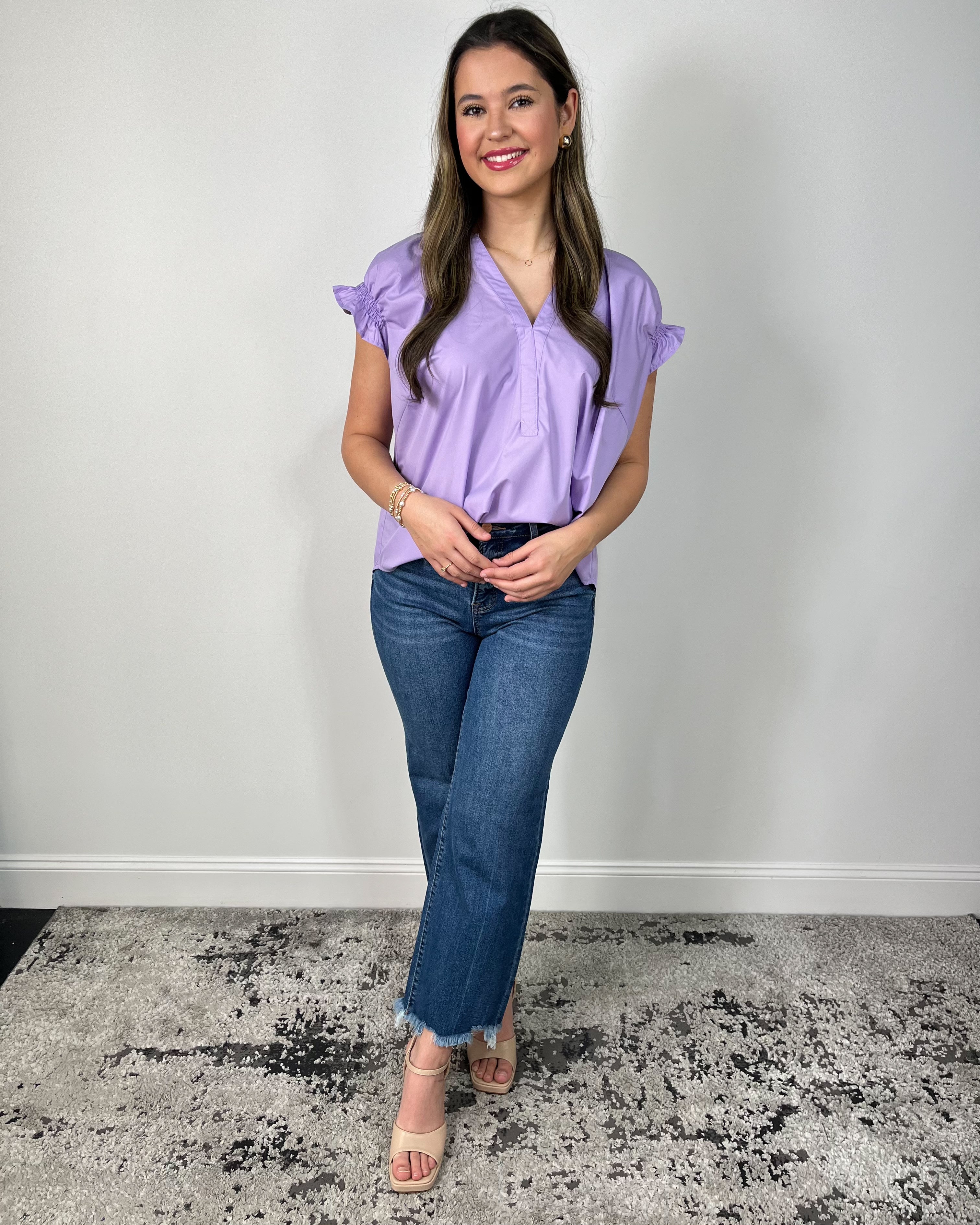 The Lavender Lane Ruffle Top combines timeless femininity with everyday wearability. From the soft lavender hue to the flattering ruffle neckline, it’s an easy yes for anyone who loves effortless elegance with a boutique twist. -