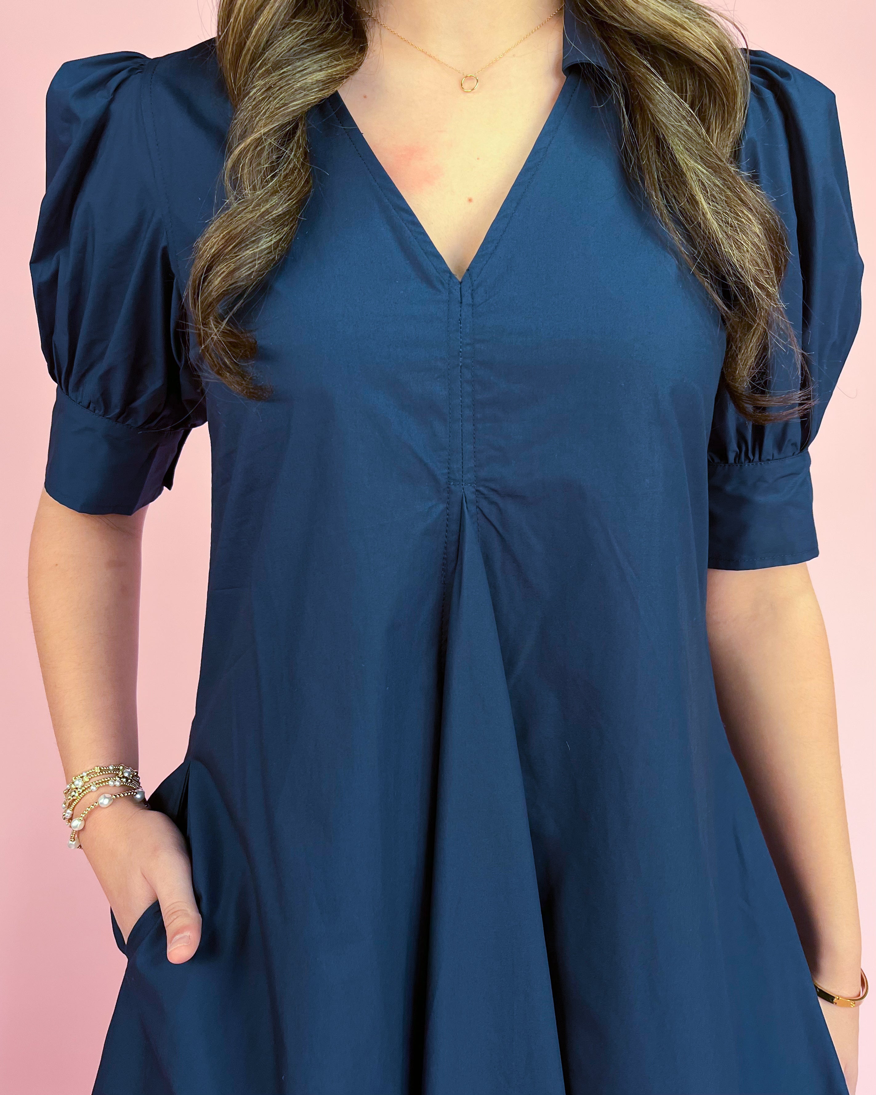 The collared neckline + flattering v-cut front makes it feel elevated (hello, effortless sophistication ✨), while the soft puff sleeves add just the right amount of feminine charm 🎀.