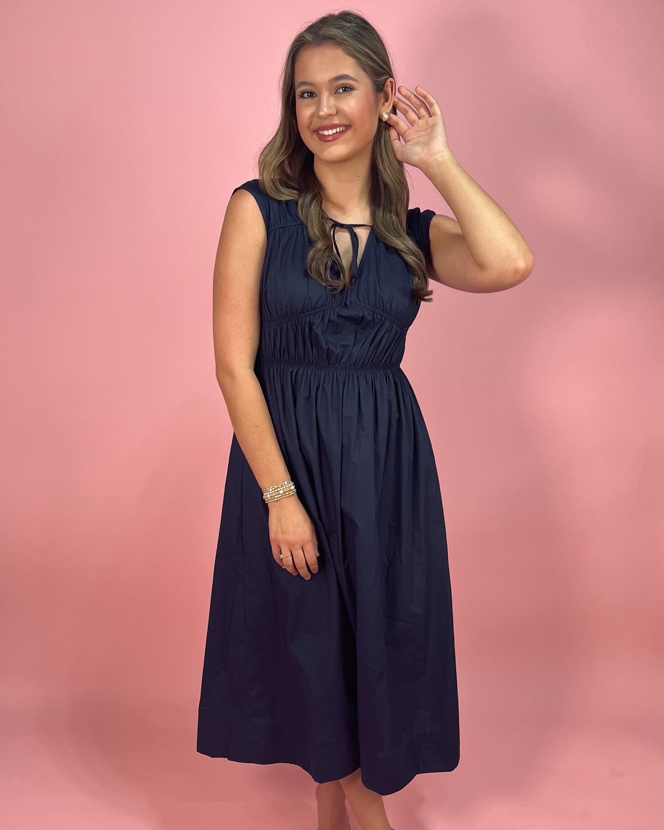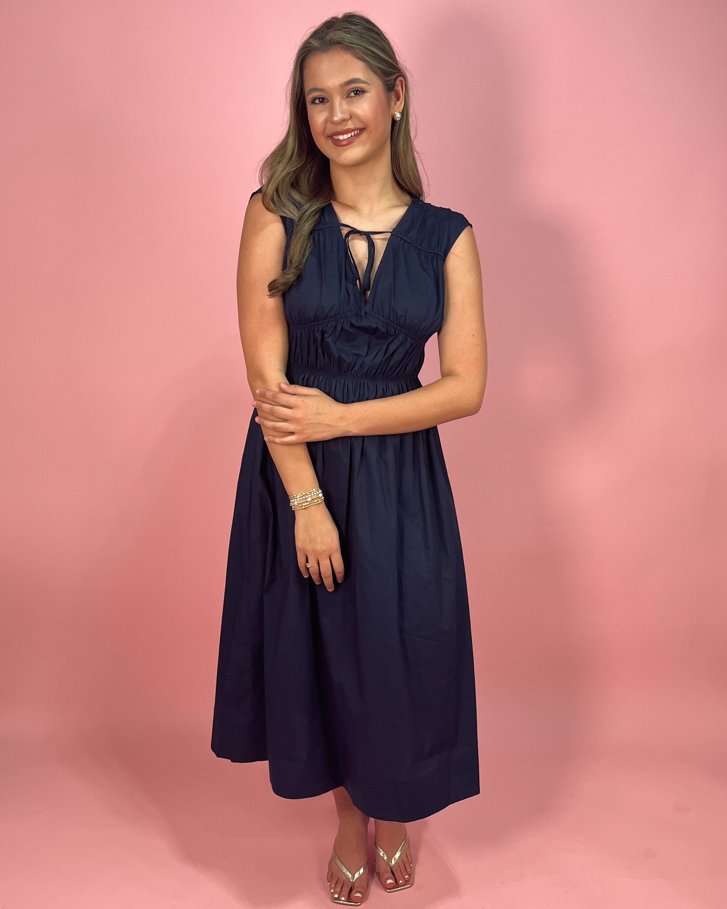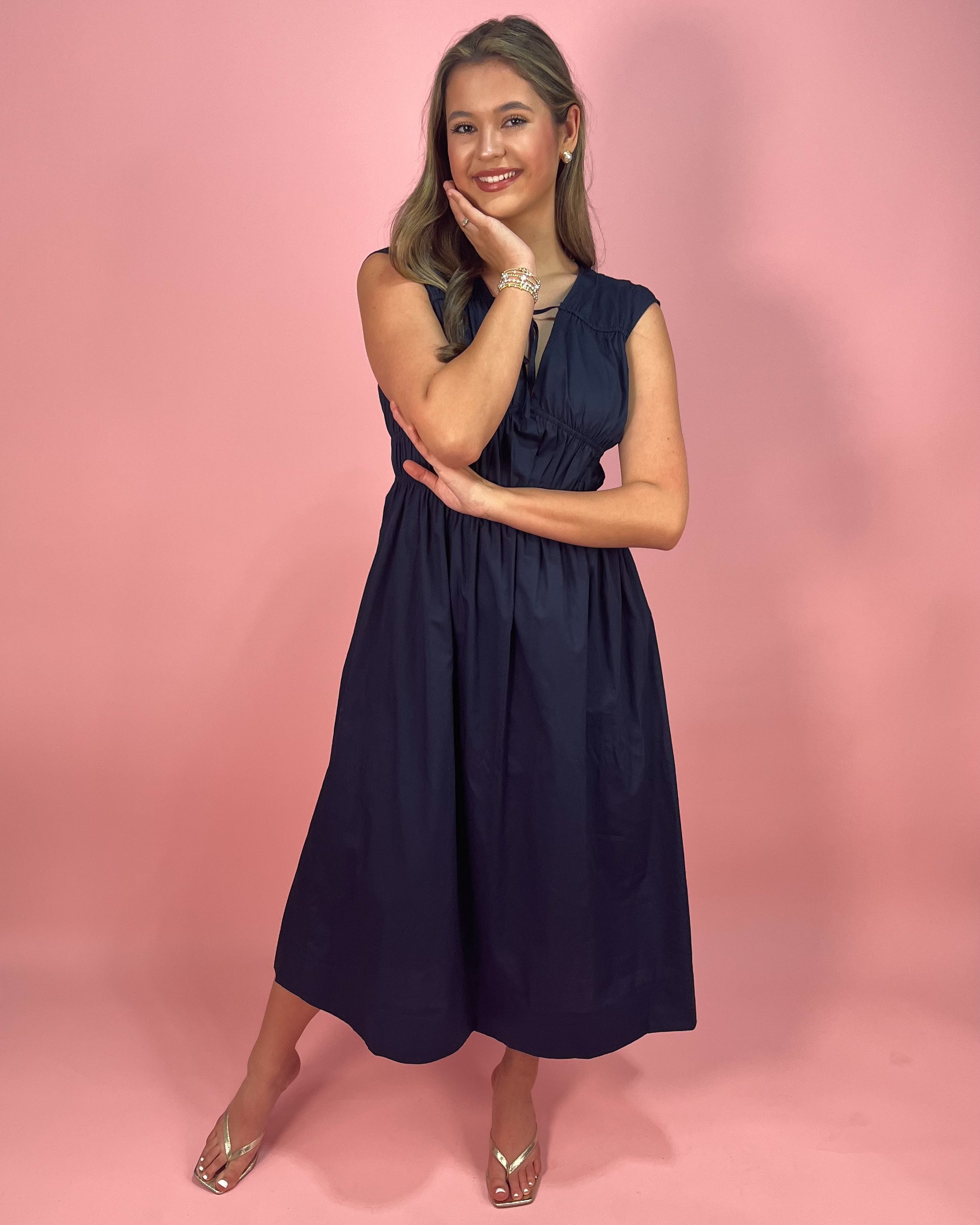 Effortlessly classic with a touch of everyday ease, the Navy Number Sleeveless Cotton Midi Dress is your go-to for polished comfort. Crafted from breathable cotton in a rich navy hue, this dress offers a clean, timeless look that’s perfect for everything from casual days to on-the-go styling.