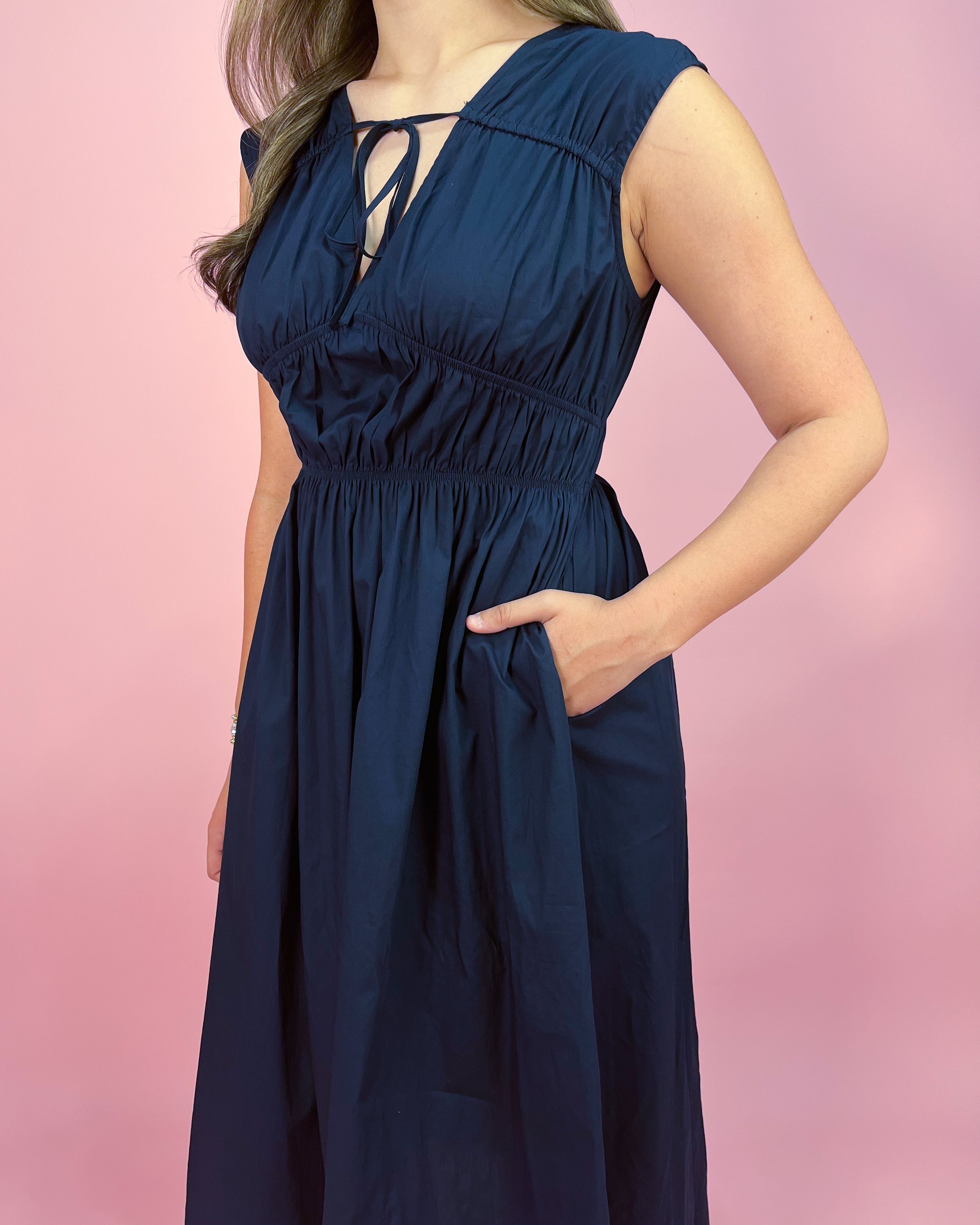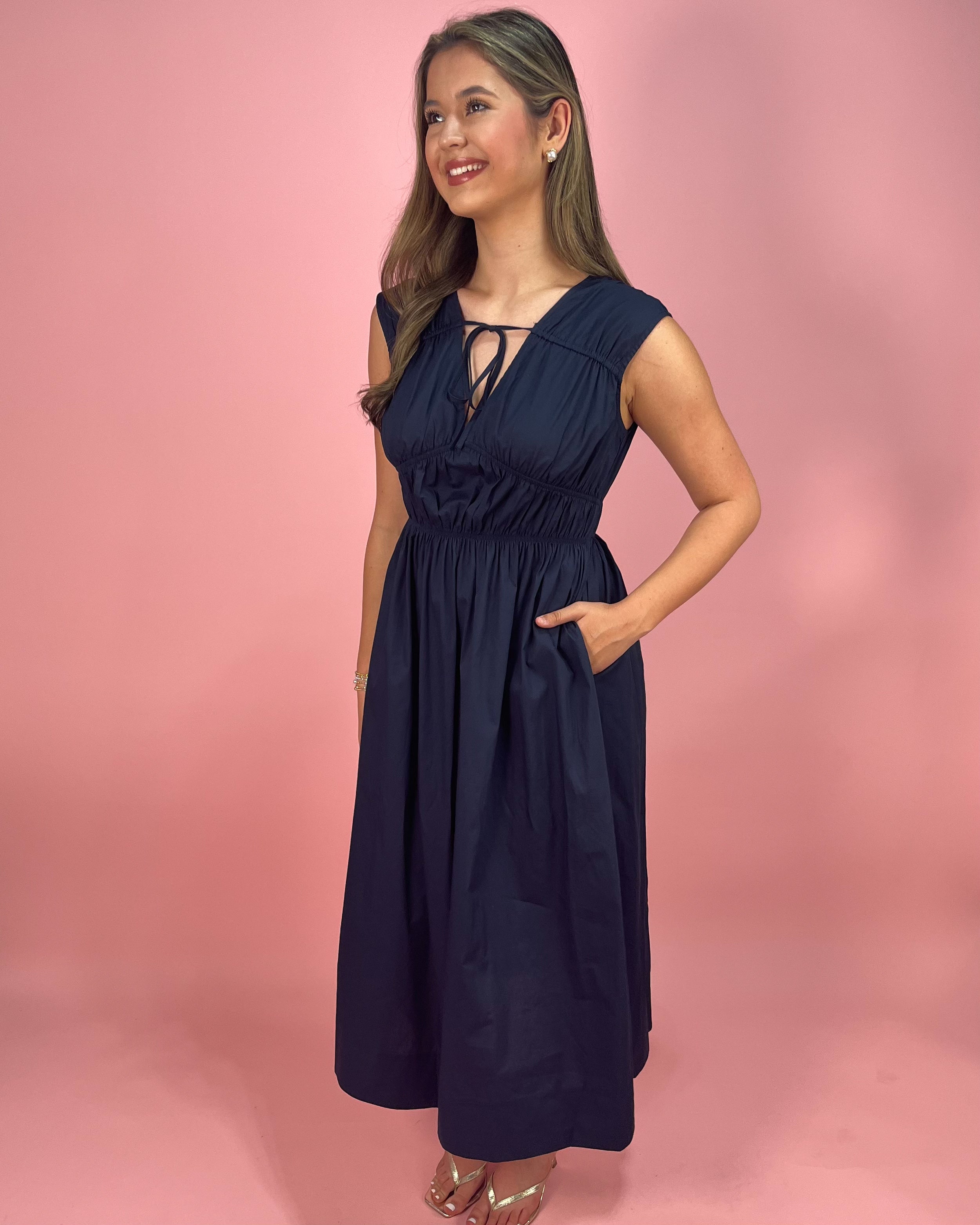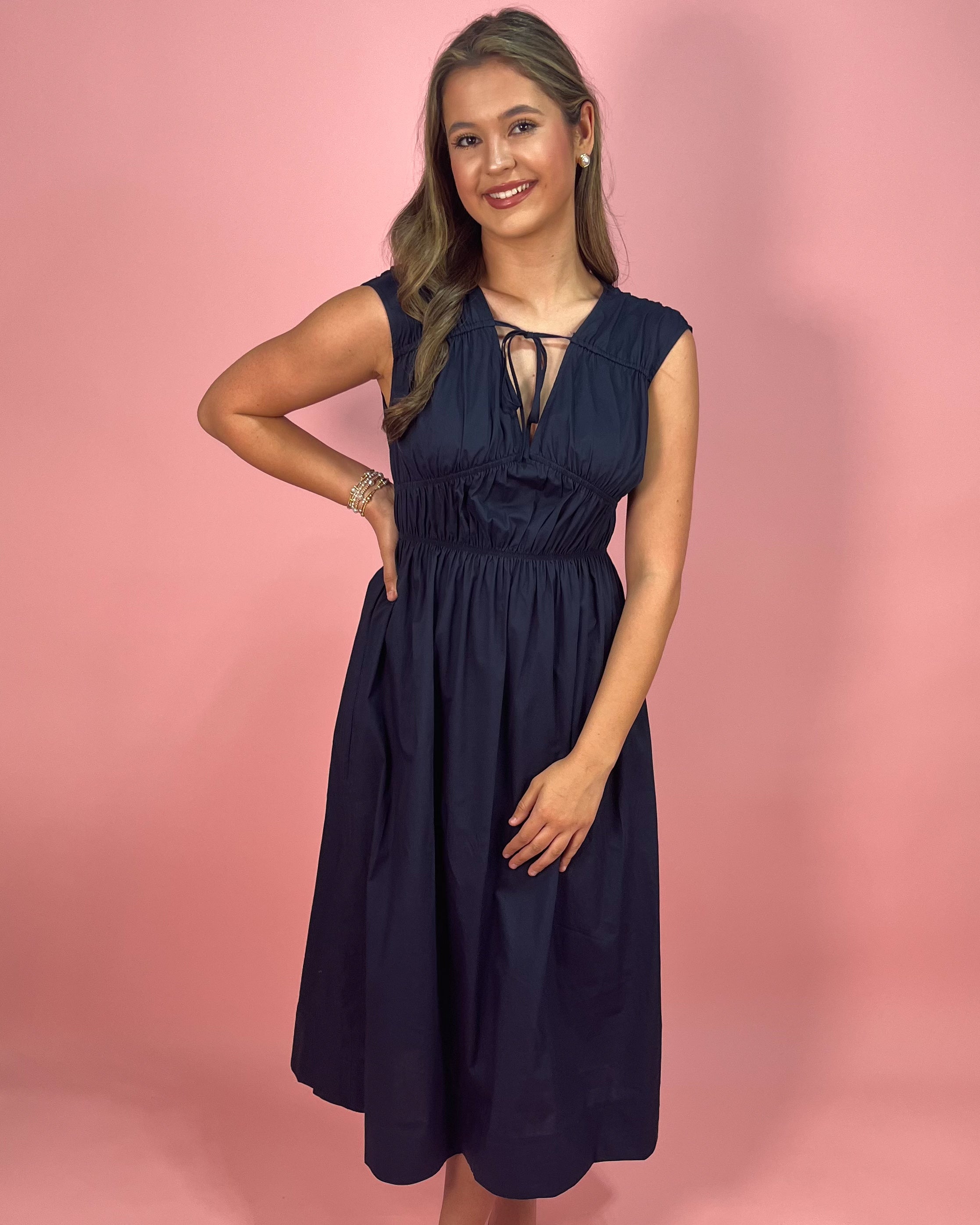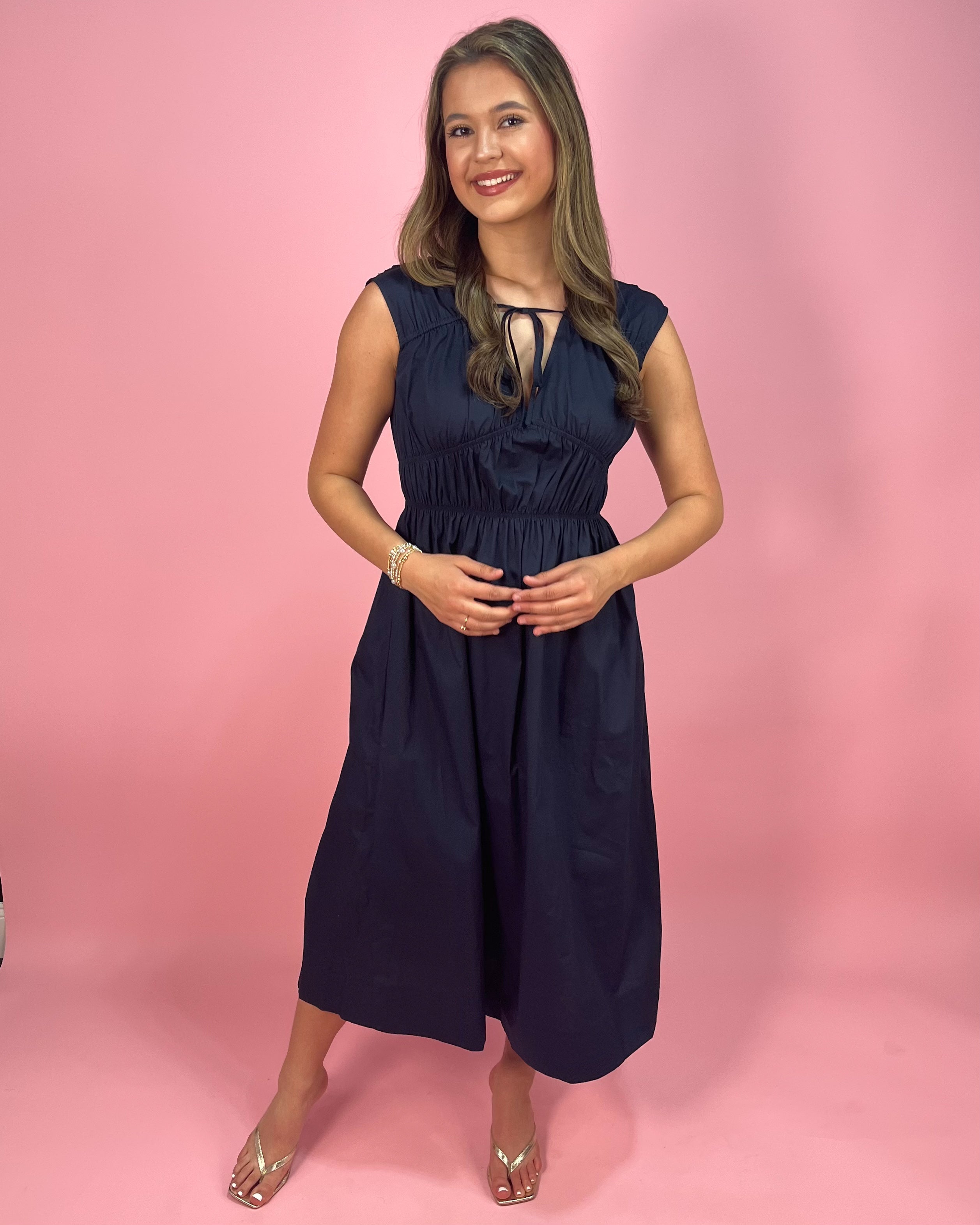 Effortlessly classic with a touch of everyday ease, the Navy Number Sleeveless Cotton Midi Dress is your go-to for polished comfort. Crafted from breathable cotton in a rich navy hue, this dress offers a clean, timeless look that’s perfect for everything from casual days to on-the-go styling.
