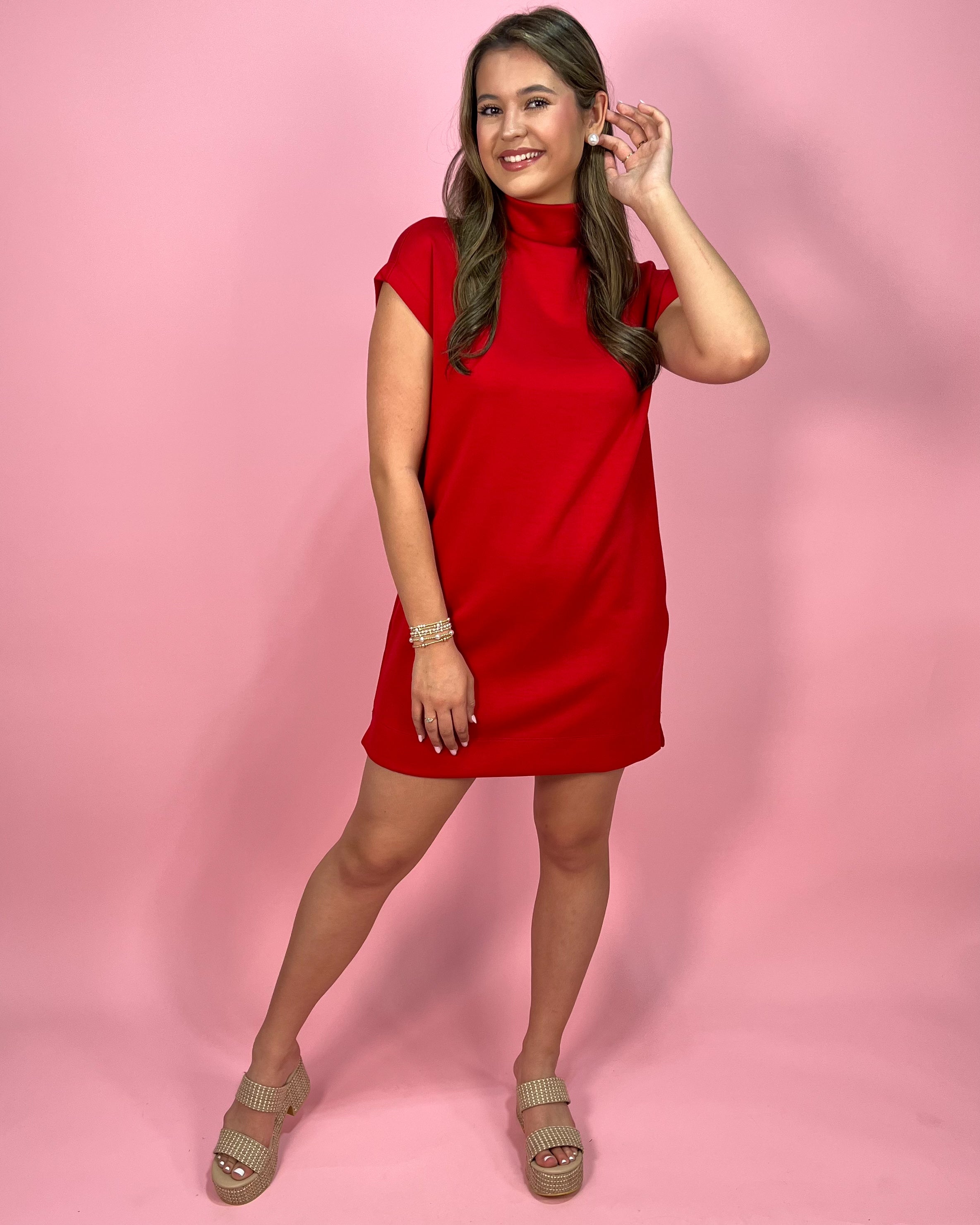 The Polished Ease Red Mock Neck Dress is your go-to for when you want to look instantly put-together with minimal effort. Bold, confident, and effortlessly sleek, this vibrant red piece makes a statement while keeping things comfortable and wearable.