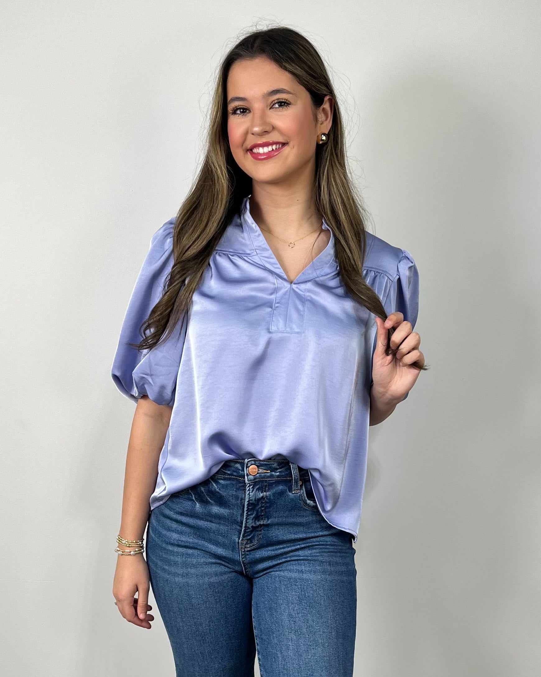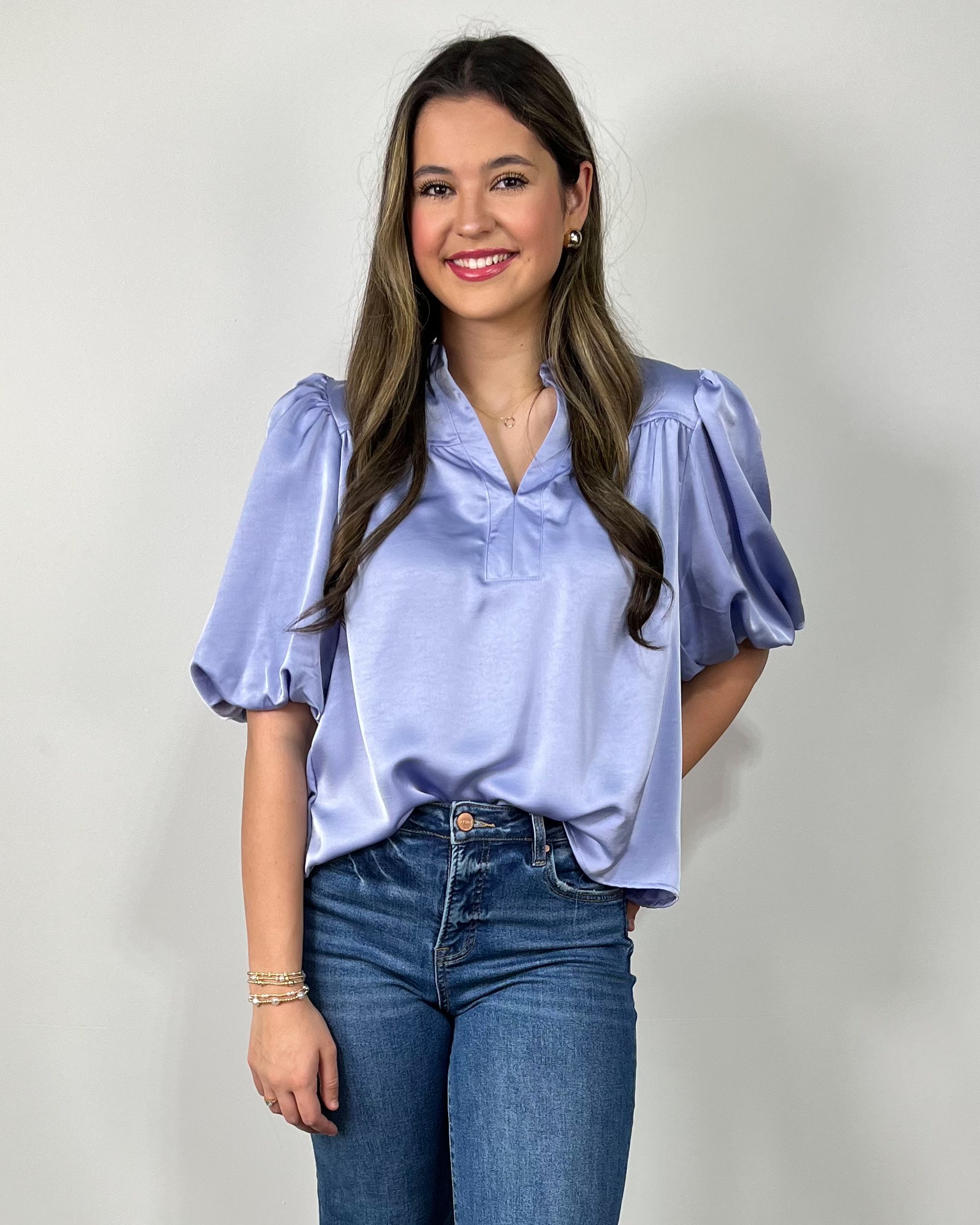 The Something Blue Bubble Sleeve Top is timeless, flattering, and endlessly versatile. From its silky texture to its feminine sleeve detail, it’s the kind of top that makes you feel instantly put together — no matter how you style it. A must-have boutique staple you’ll wear on repeat.
