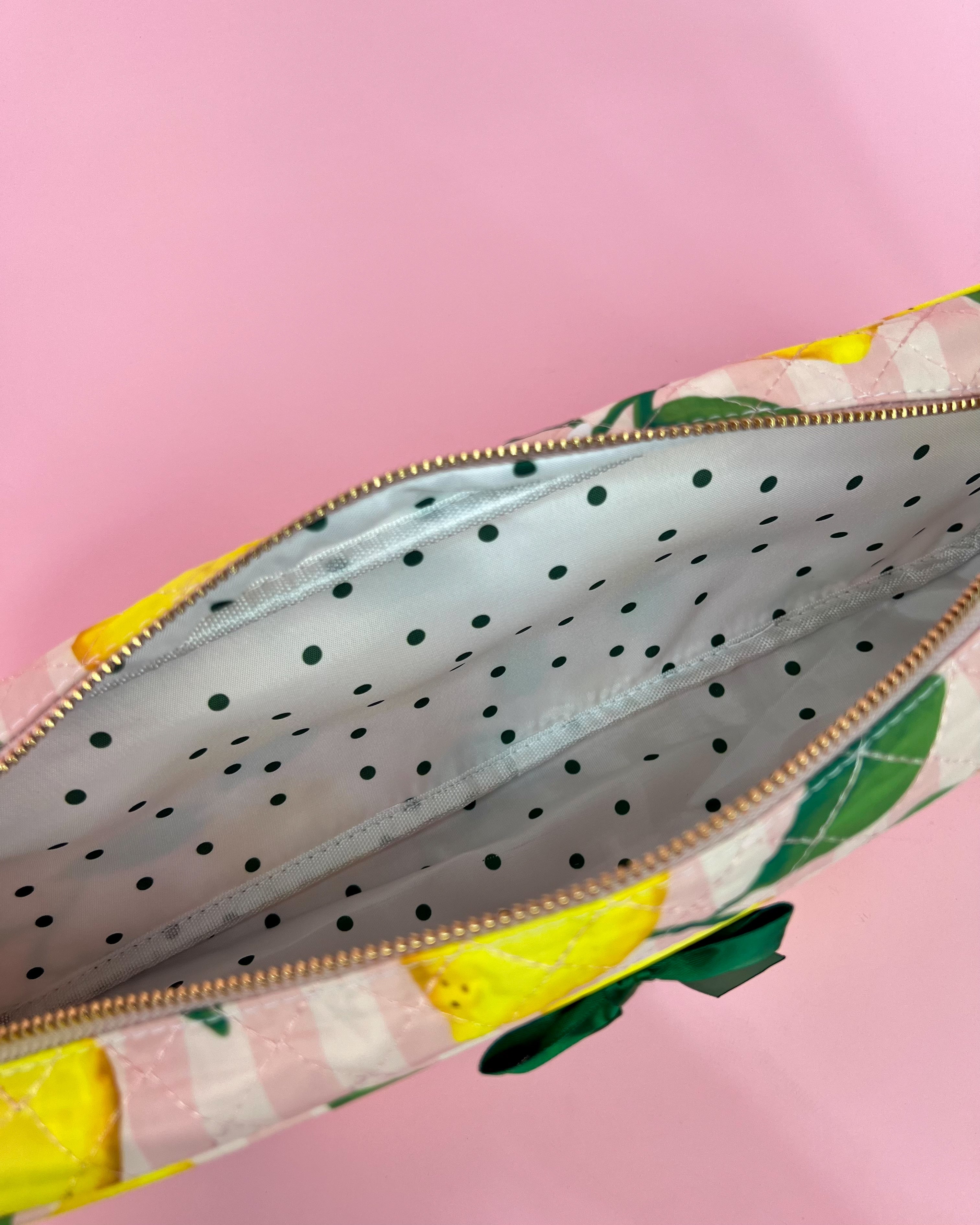 Playful, practical, and perfectly giftable, this Quilted Hair Tool Bag keeps all your styling essentials organized in the cutest way possible. Designed in a soft quilted fabric with charming prints (hello lemons 🍋 and lobsters 🦞), this bag adds personality to your vanity while keeping your hot tools protected and easy to grab. The structured shape makes it ideal for storing curling irons, straighteners, wands, brushes, and more—whether you’re at home or packing for a weekend getaway.