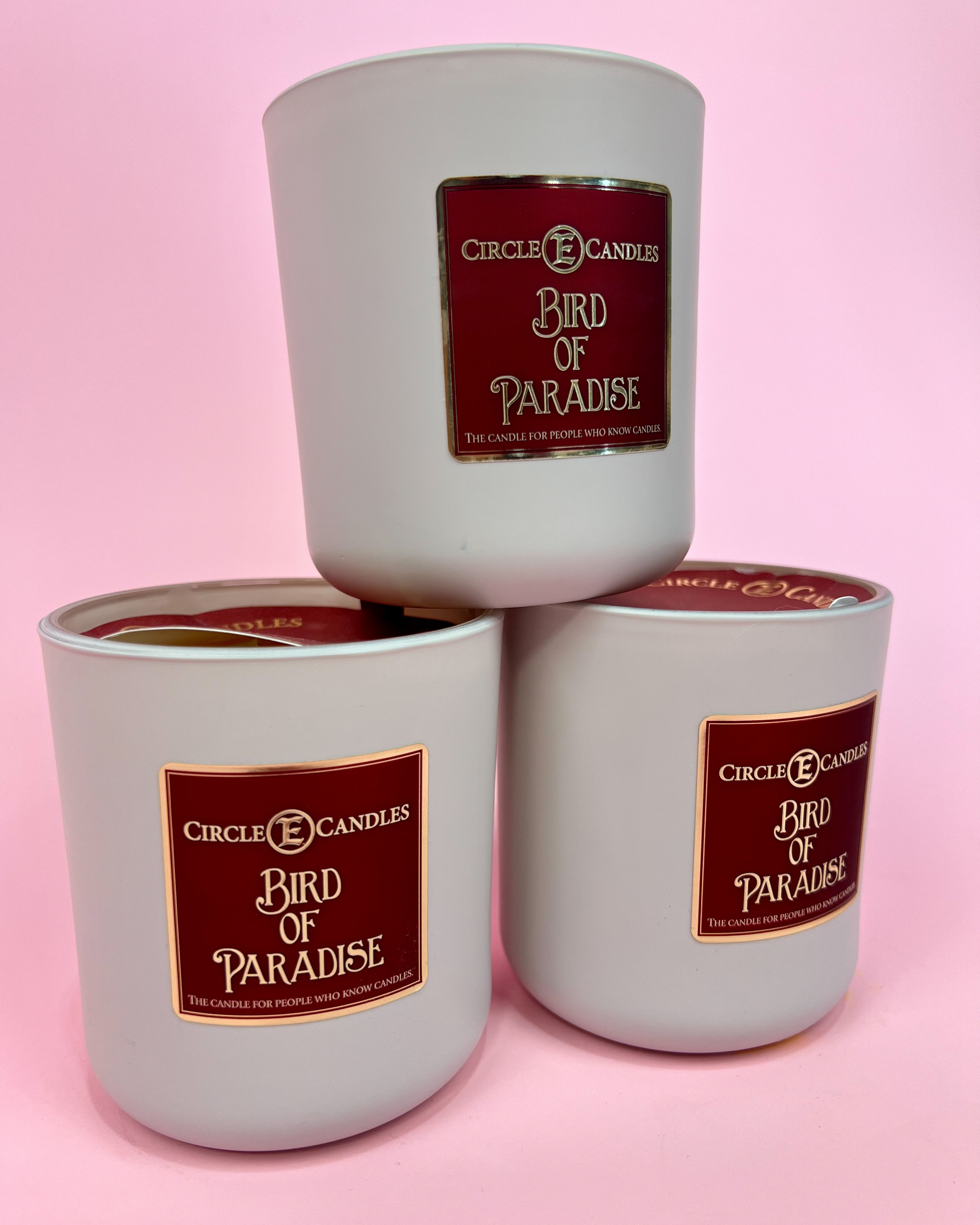 Circle E Candles - Birds of Paradise Scent - A magical blend of strawberries and cream. An all-time favorite.