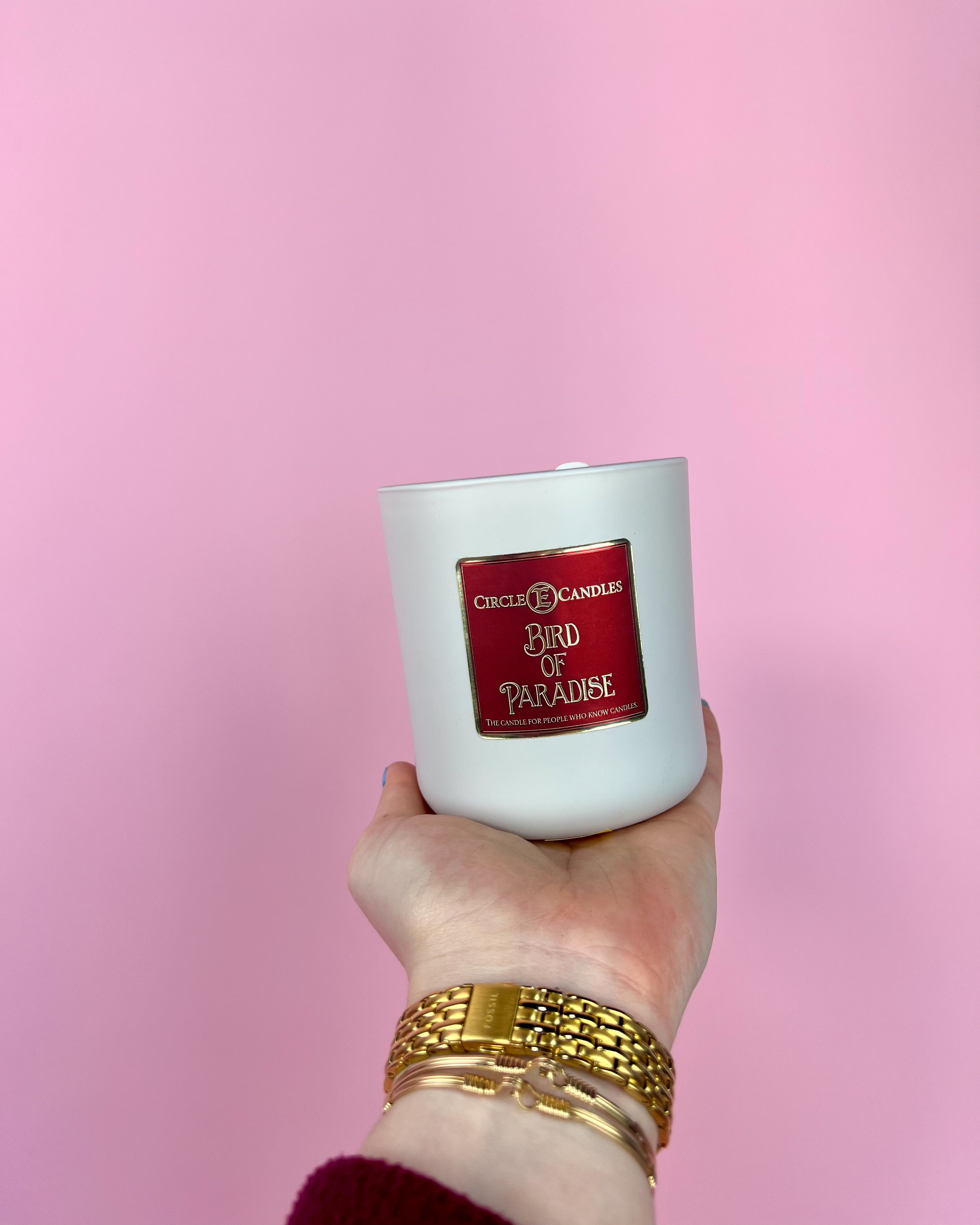 - Presented in a beautifully decorated glass holder, Circle E Candles are a simple way to achieve balance and harmony in your home by filling your room with the long-lasting scent of Bird of Paradise, Magical Blend of Strawberries & Cream