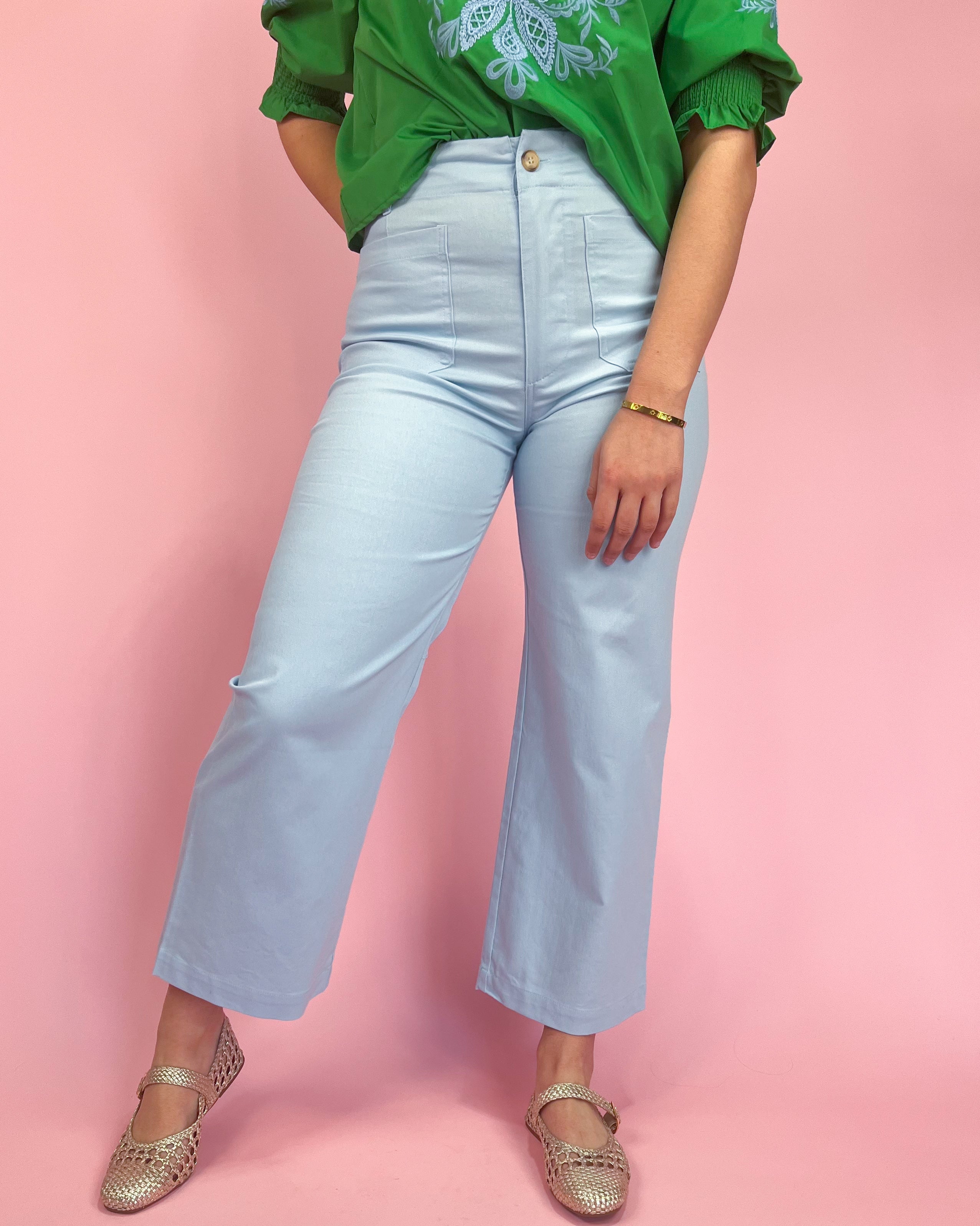 This dreamy baby blue shade is the perfect pop of color for spring + summer, and the fit is just as good as the name sounds! The wide leg silhouette keeps it effortless, while the structured front patch pockets add that polished, “put together” vibe.