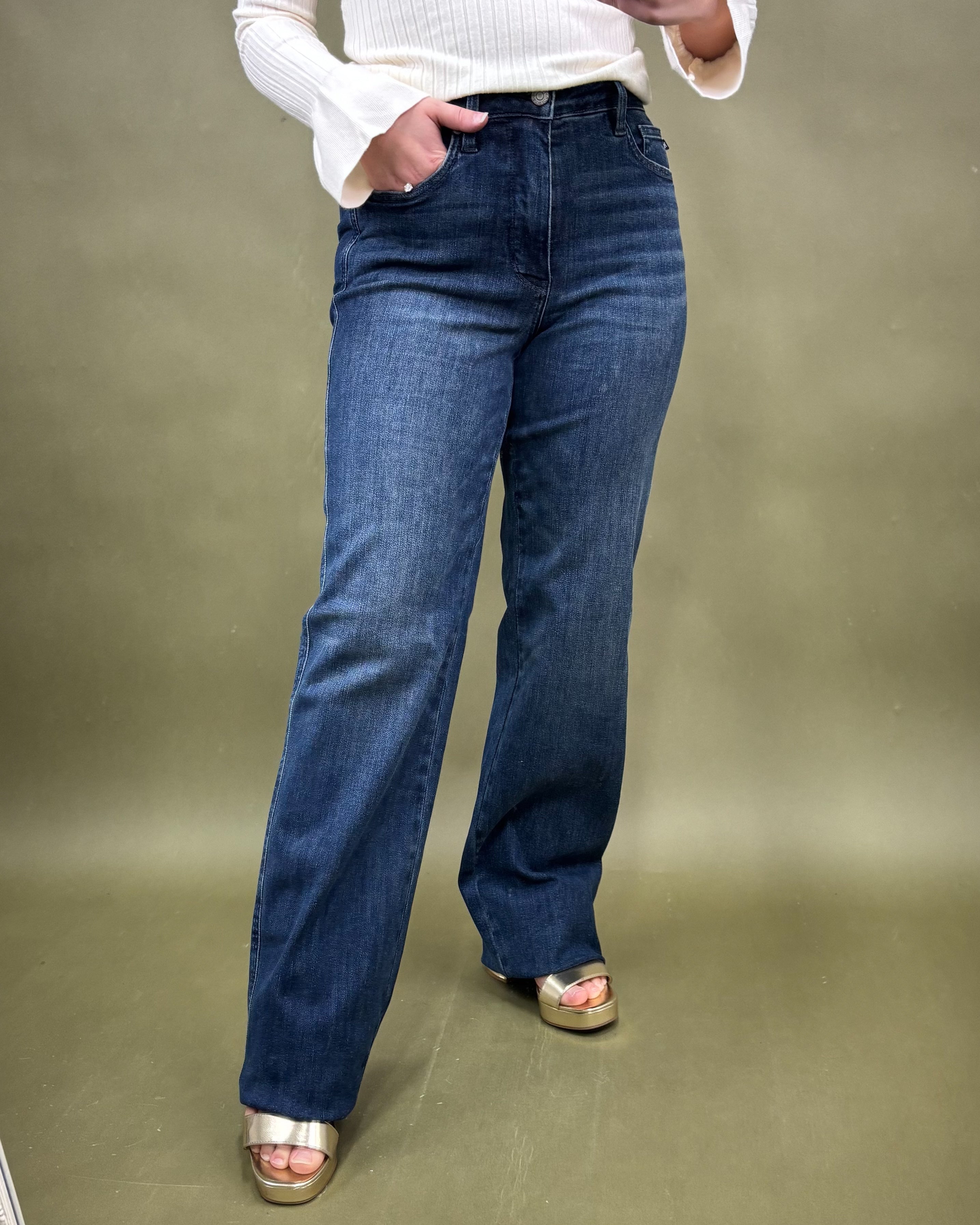 Finished in Judy Blueâs super-soft denim blend, The Elise moves with you seamlessly while maintaining its shape wear after wear. The straight-leg cut offers a timeless, elongating line that pairs perfectly with boots, heels, sneakers, sandals â you name it. From workdays to weekends, these jeans are made to be lived in.đ Features Youâll Love: