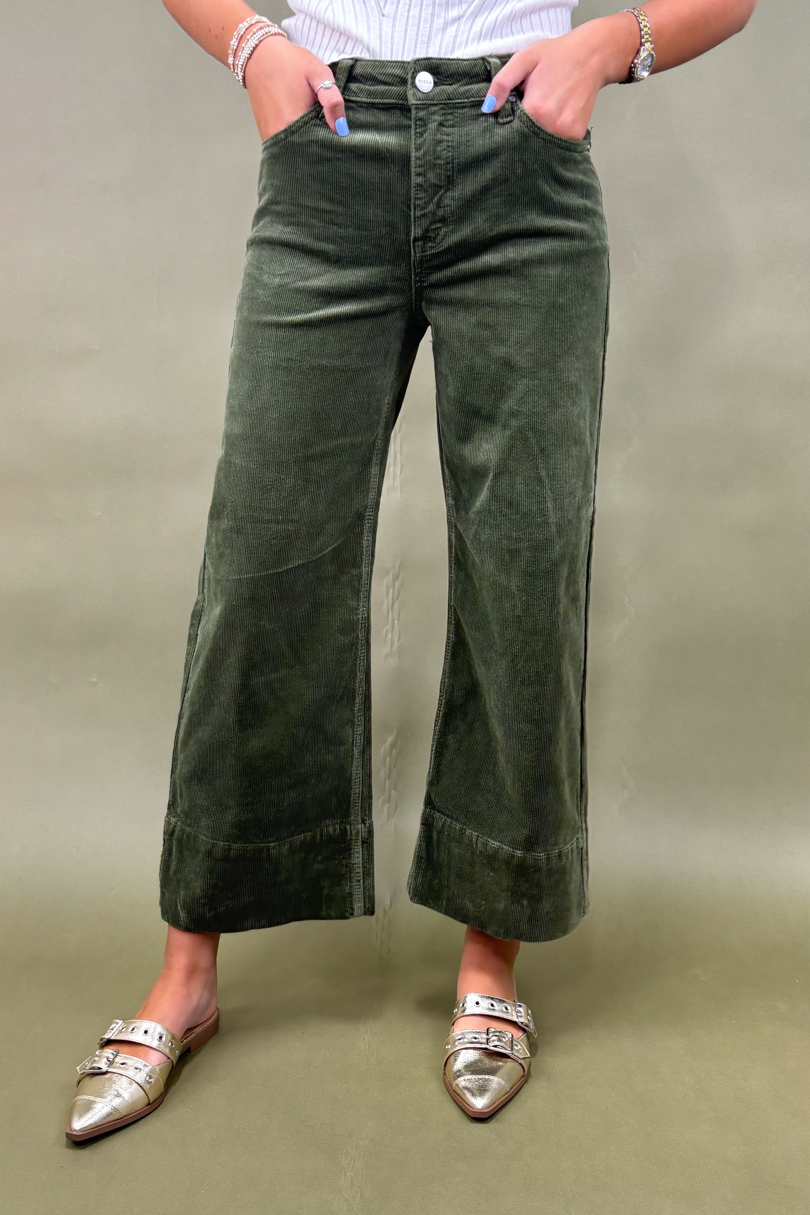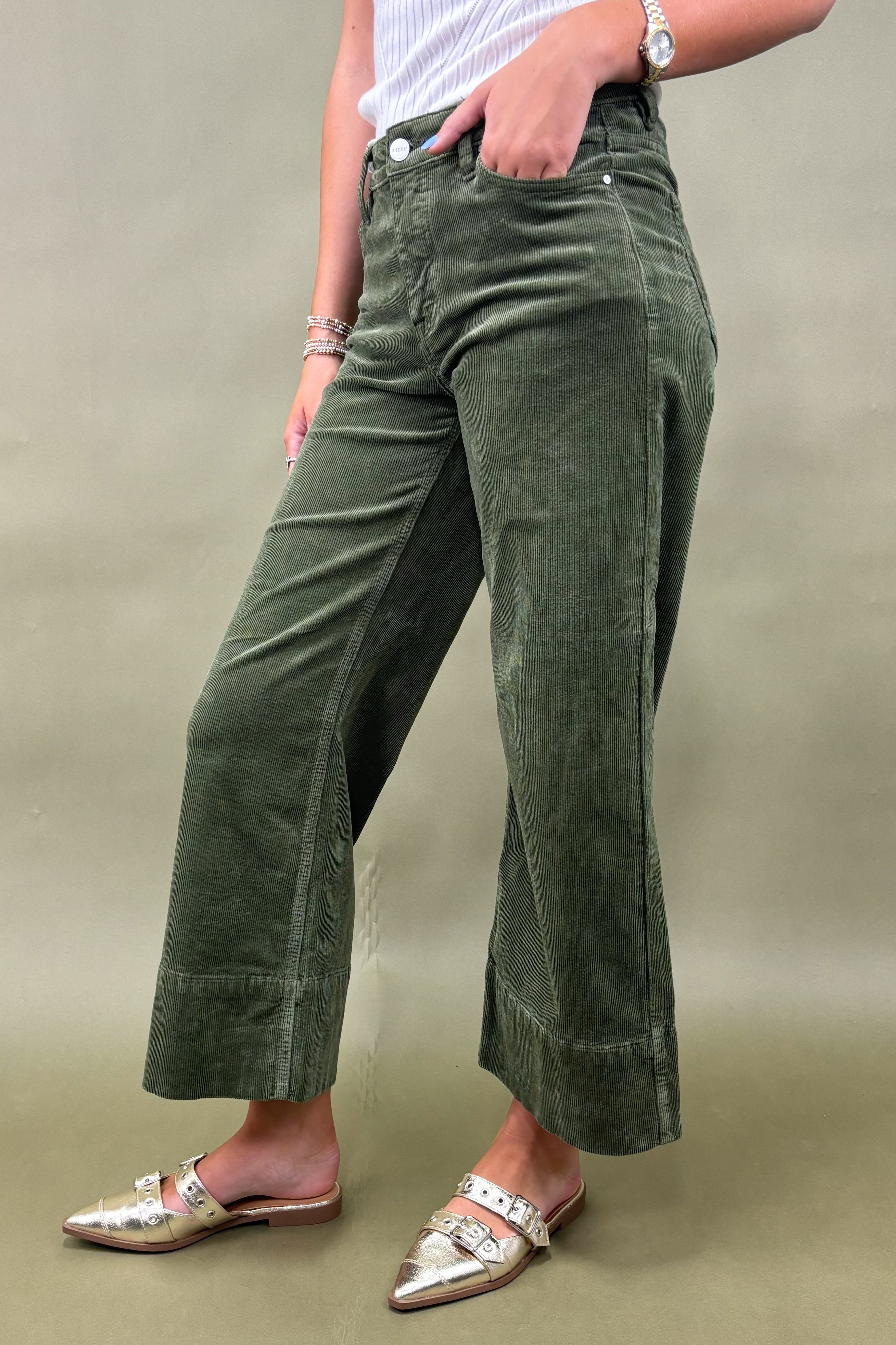Meet your new favorite fall-to-winter essential: these high-rise crop wide-leg corduroy pants. Equal parts chic, cozy, and versatile, these pants will instantly become a staple in your wardrobe. Designed in a rich olive hue, they’re the kind of bottoms that not only make a statement but also transition effortlessly from day to night.