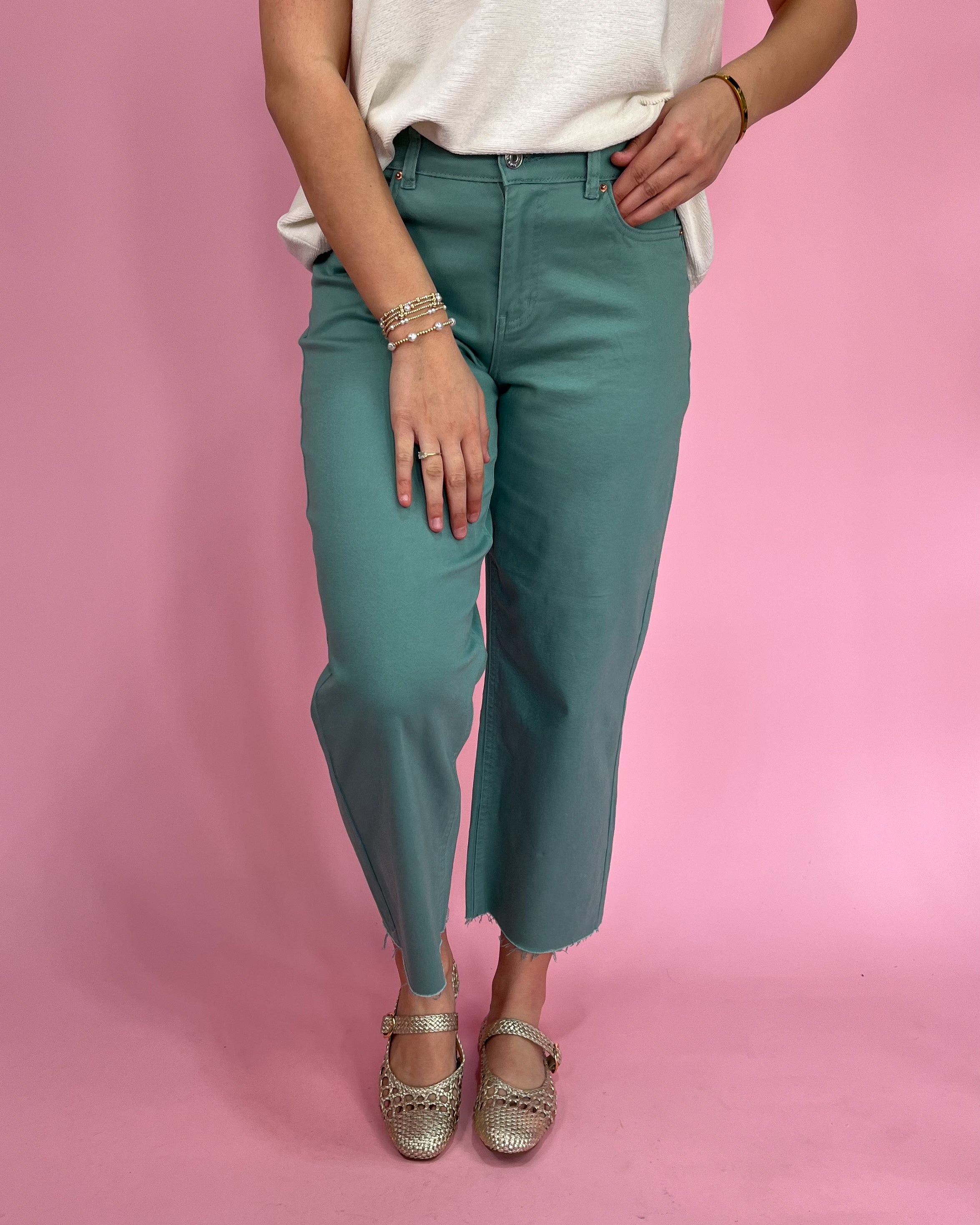 Meet The Evergreen Cropped Wide Leg Jeans — the perfect blend of trendy + wearable with a rich evergreen hue that instantly elevates your everyday denim lineup 🌿✨. These are the jeans you throw on when you want something fun and fresh, but still easy enough for repeat wear.