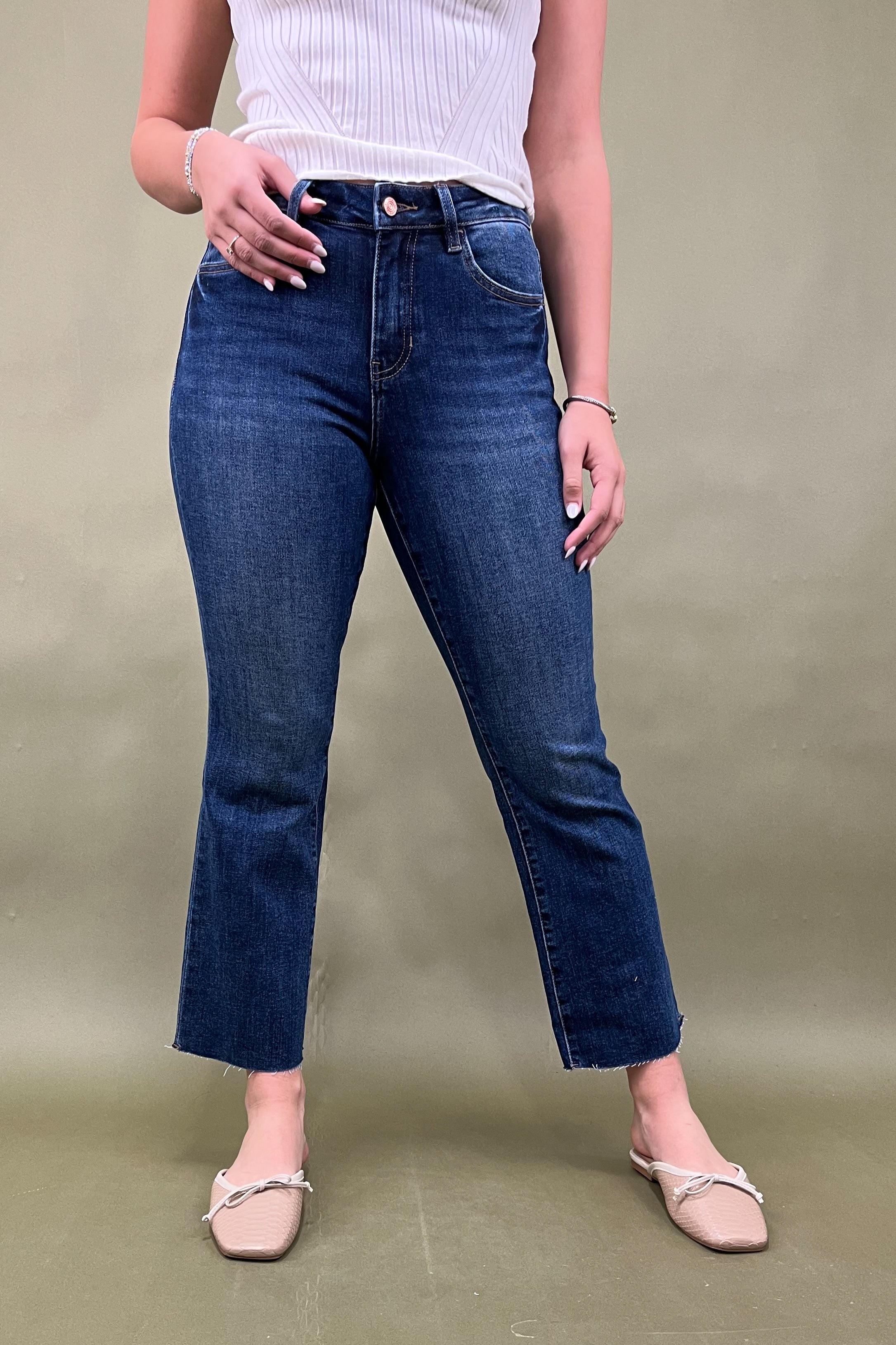 🎨 Style: High Rise • Crop Flare • Dark Wash Denim