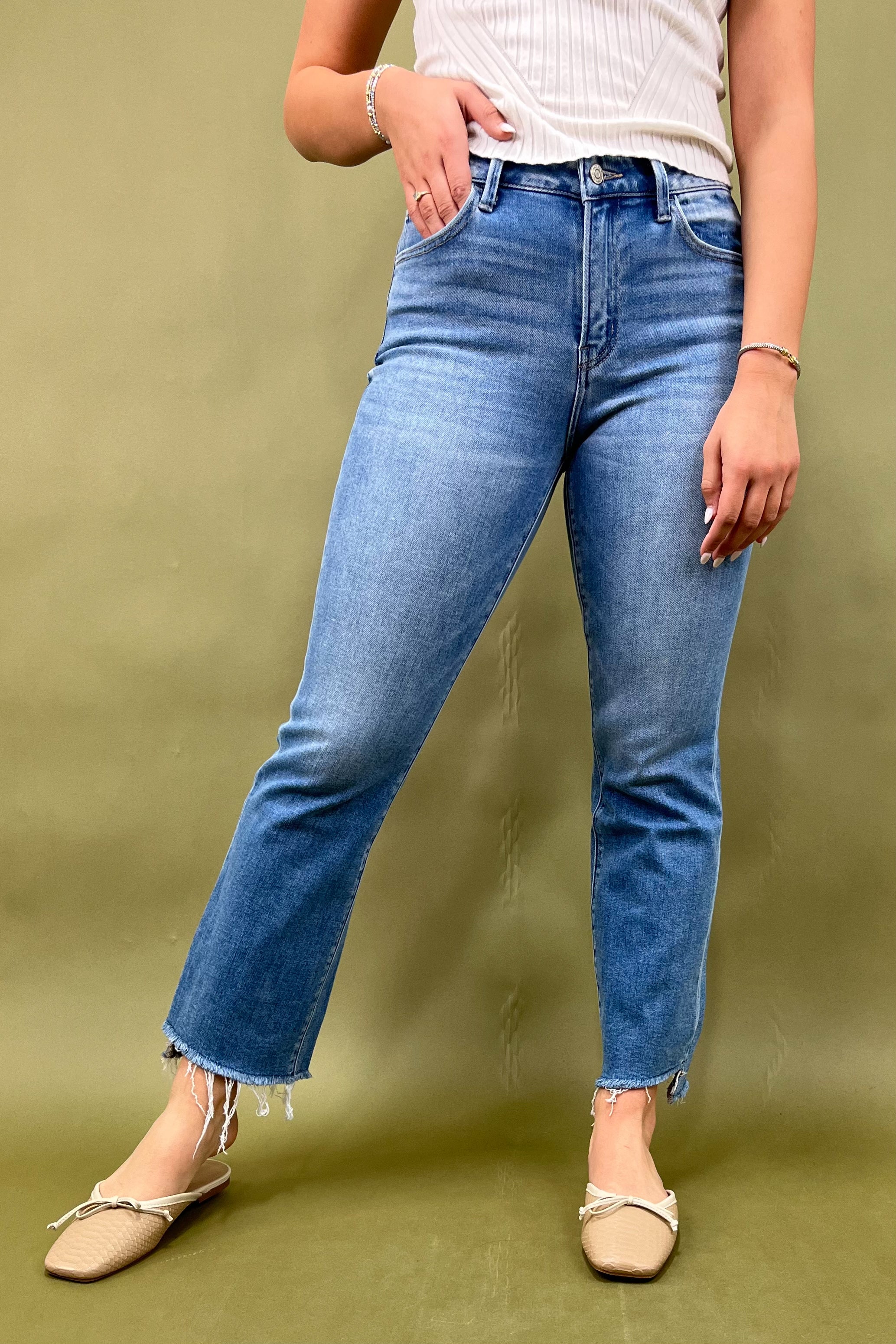Let’s start with the fit: high-rise to snatch the waist, crop flare to show off the shoes, and that just-right Flying Monkey softness that makes it feel like you’ve already broken them in — even though they just arrived. They’re not distressed all over, not ultra trendy to the point of being “a moment only,” but they do have that angled raw hem that says, “Yes I’m casual, but I also have taste.” 🤌💙
