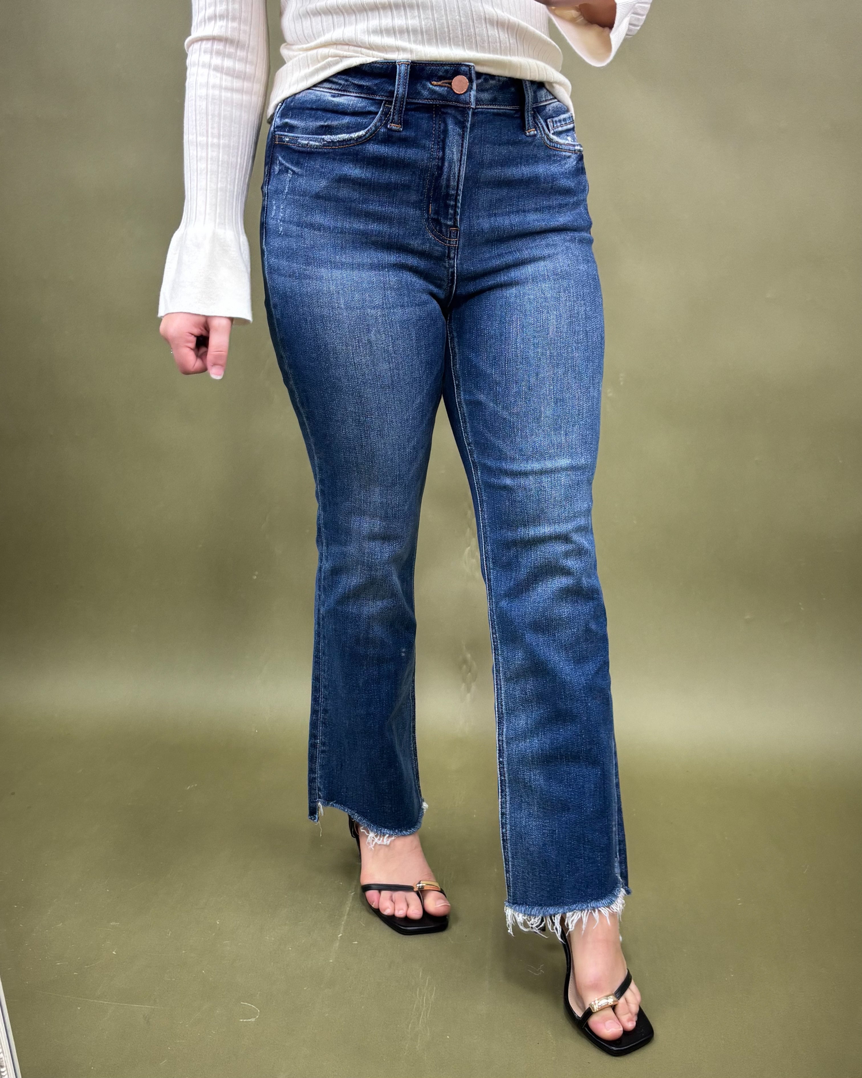 Model Stats: Model Stats: Kri is wearing a size 3/26. See size chart for more info.Meet The Monroe HR Flare Jean â the jean that gives instant âlong legs, effortless confidenceâ energy the moment you slip them on â¨. This style shapes beautifully through the waist and hips before flowing into a soft flare that balances your silhouette and creates that timeless, elongating line we love.