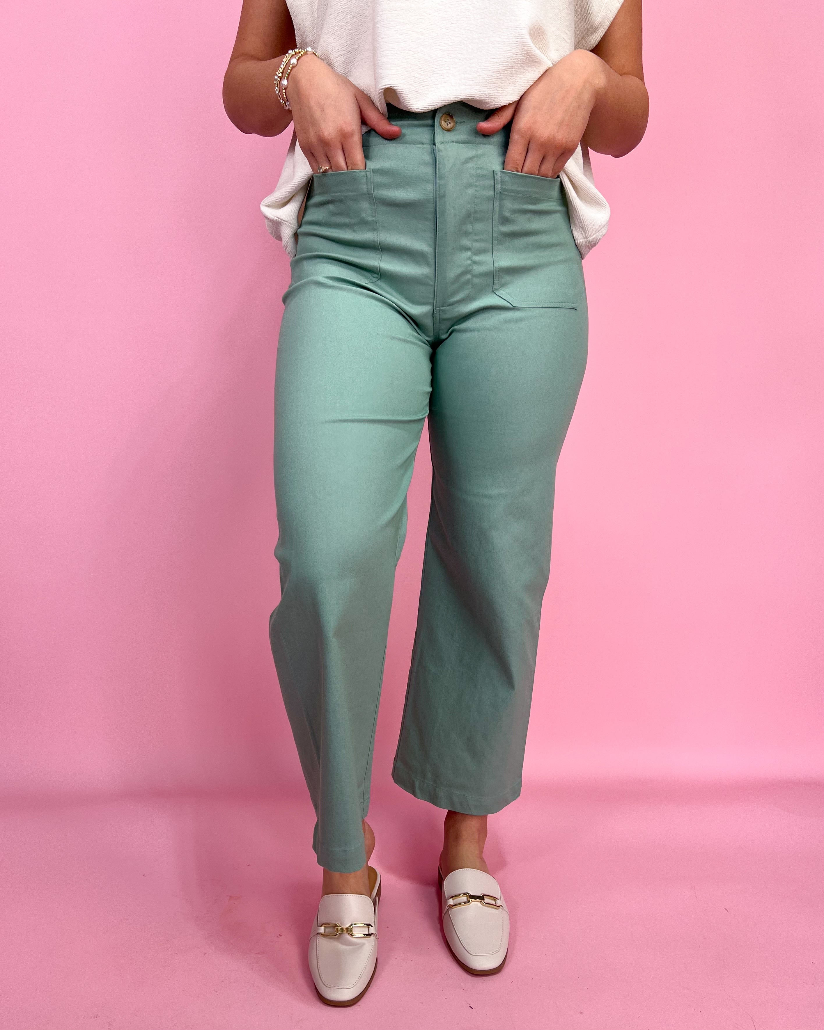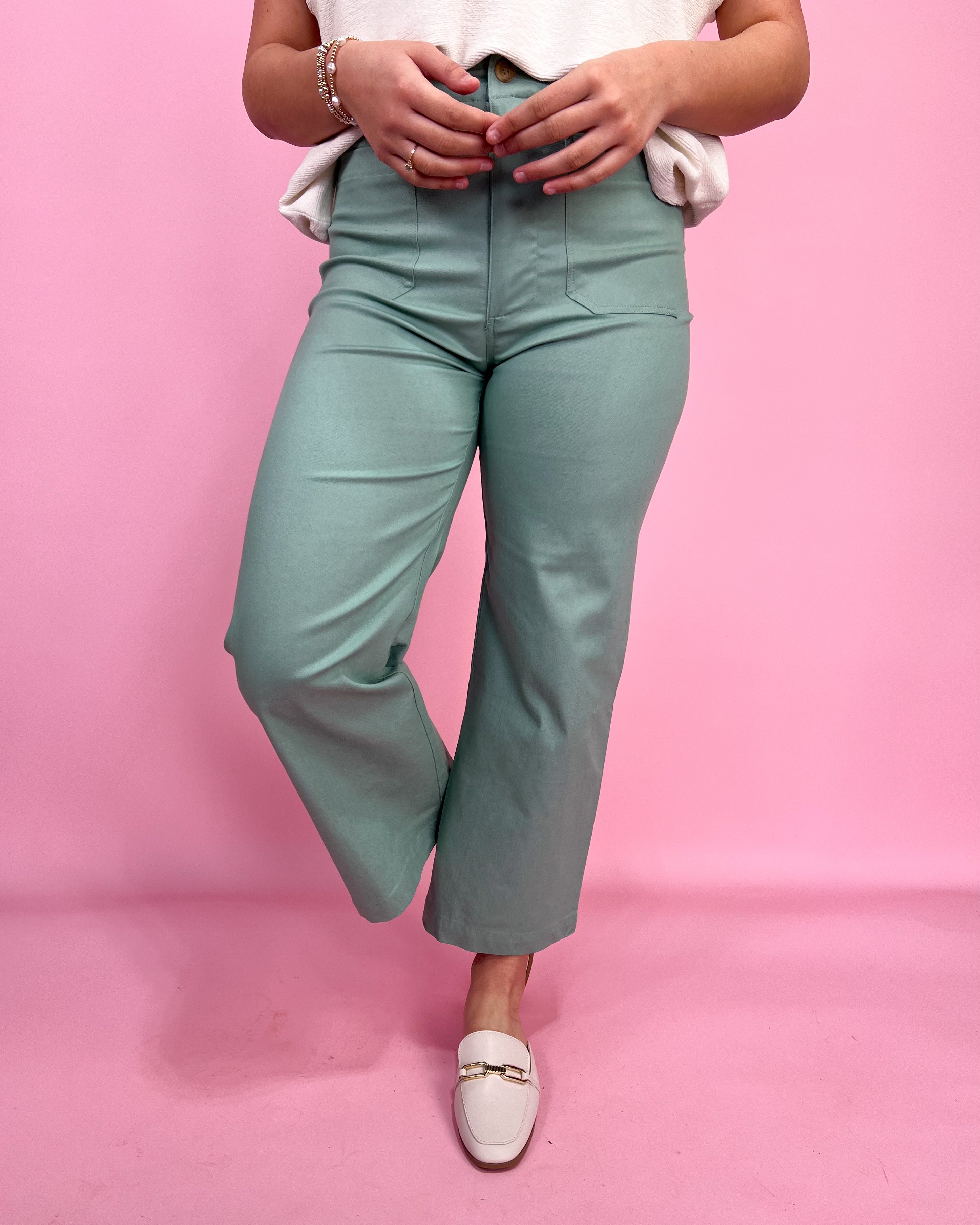 Easy, effortless, and so flattering—this sage wide leg jean is the perfect way to add a little color while keeping your outfit totally wearable. The clean look + relaxed leg makes it one of those pairs you’ll reach for constantly!With the cutest front pocket detail, a comfy structured feel, and that laid-back wide leg fit, these are made for everything from errands to brunch to casual nights out.