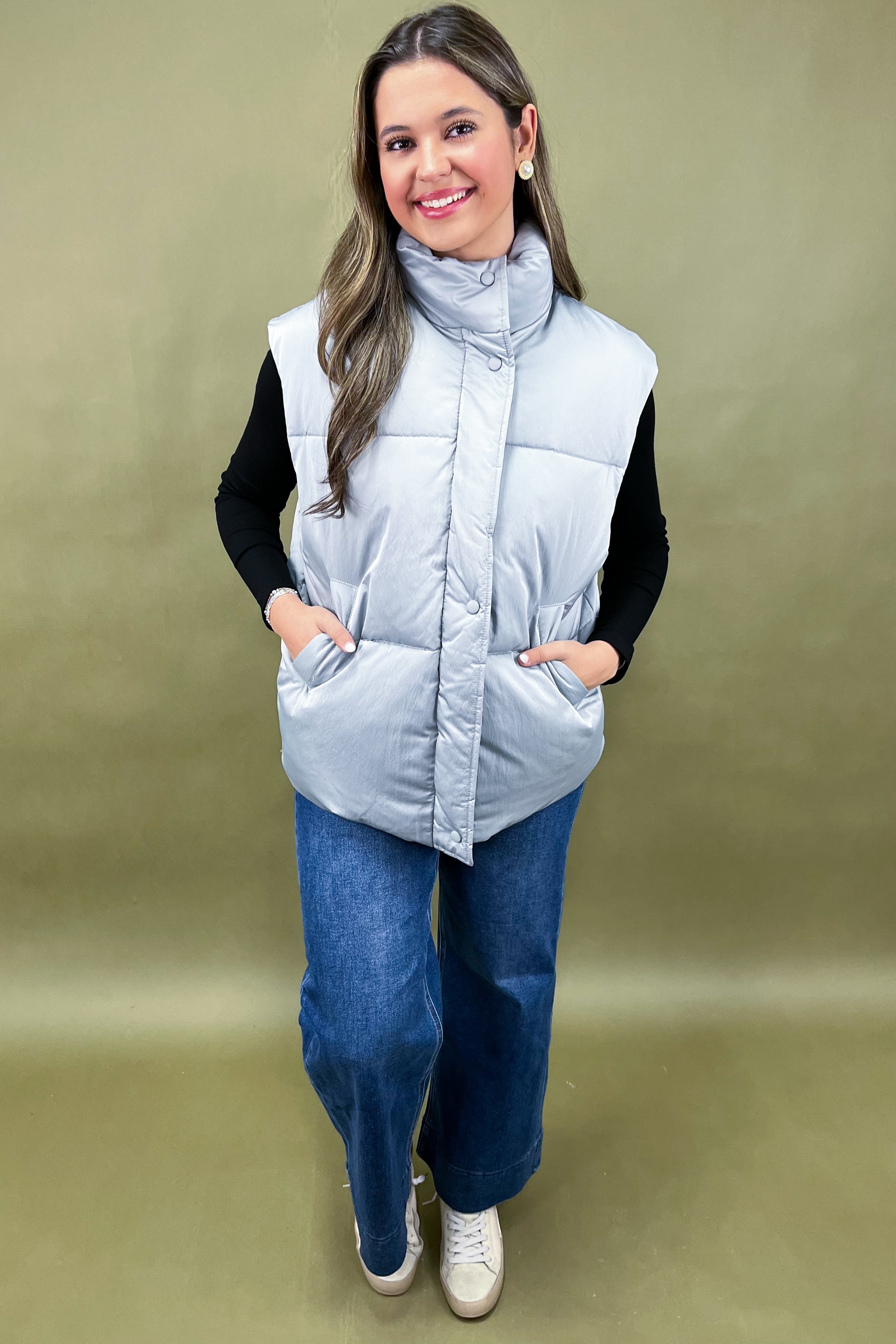 Meet the vest that’s as dreamy as its name—say hello to the Paint the Sky Vest. Designed to be your go-to layer when temps drop but your style standards stay high, this cozy puffer is the ultimate blend of function and fashion. With its plush padding and sleek finish, it’s like wearing a hug while still looking totally chic. 🌤️💫