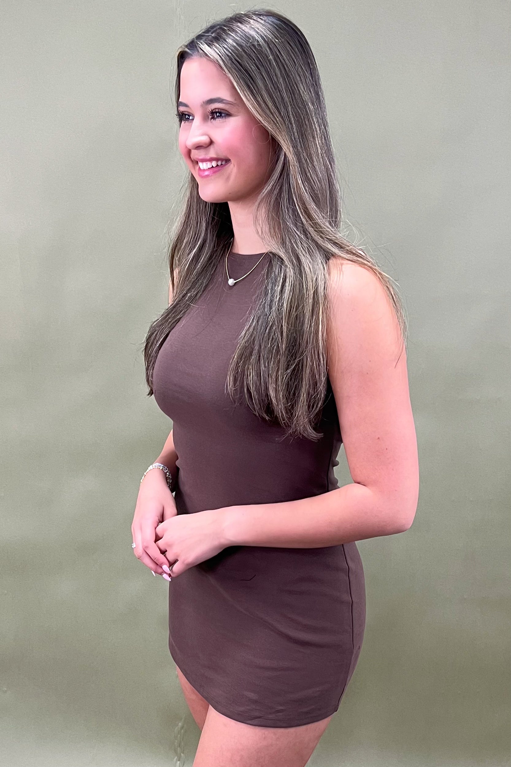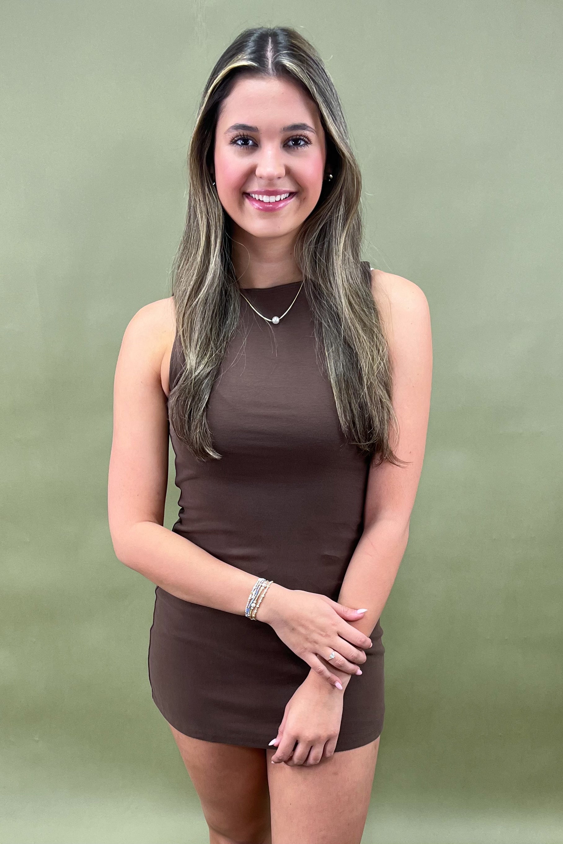 The sleeveless cut keeps it versatile: wear it solo when the temps are mild, or layer it up with your favorite denim jacket, chunky cardigan, or sleek blazer when the crisp air rolls in. The mini length adds just the right touch of playfulness, giving you that flirty edge without trying too hard. And since it’s designed unlined with a streamlined finish, the silhouette stays smooth, simple, and effortlessly chic.