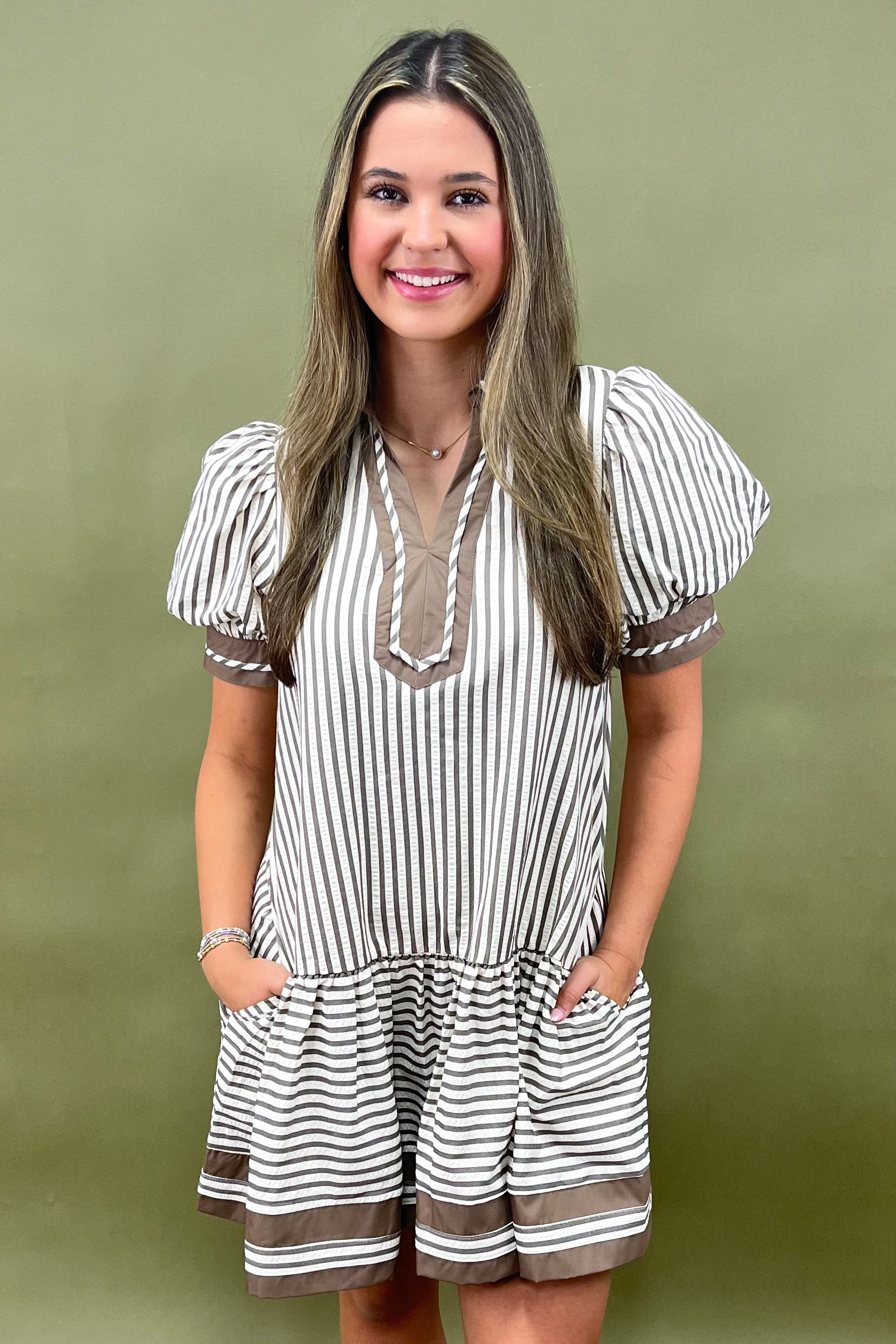 Basically, the Chai Spice Striped Mini Dress is your style hack: one piece, countless outfits, endless compliments. 💌