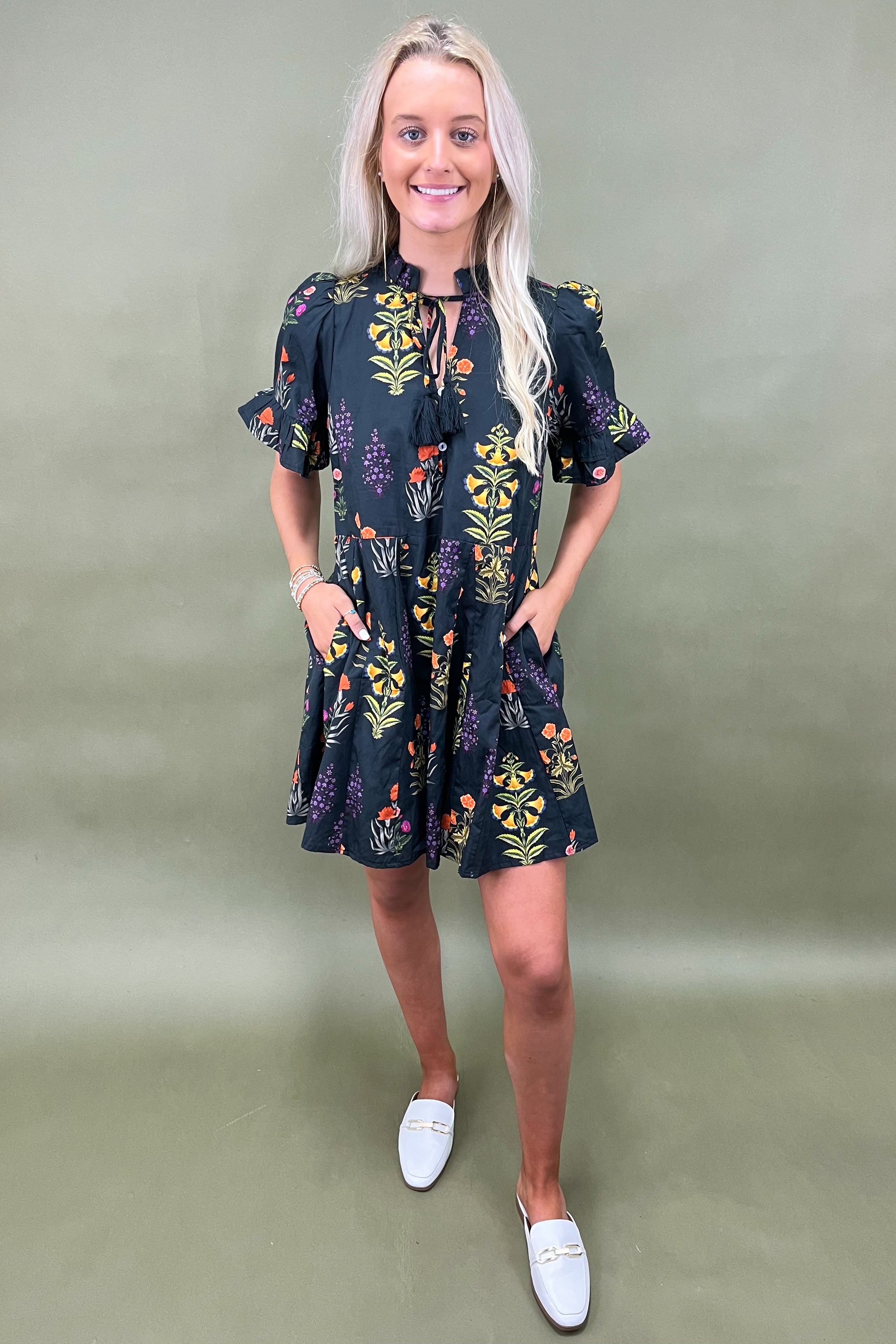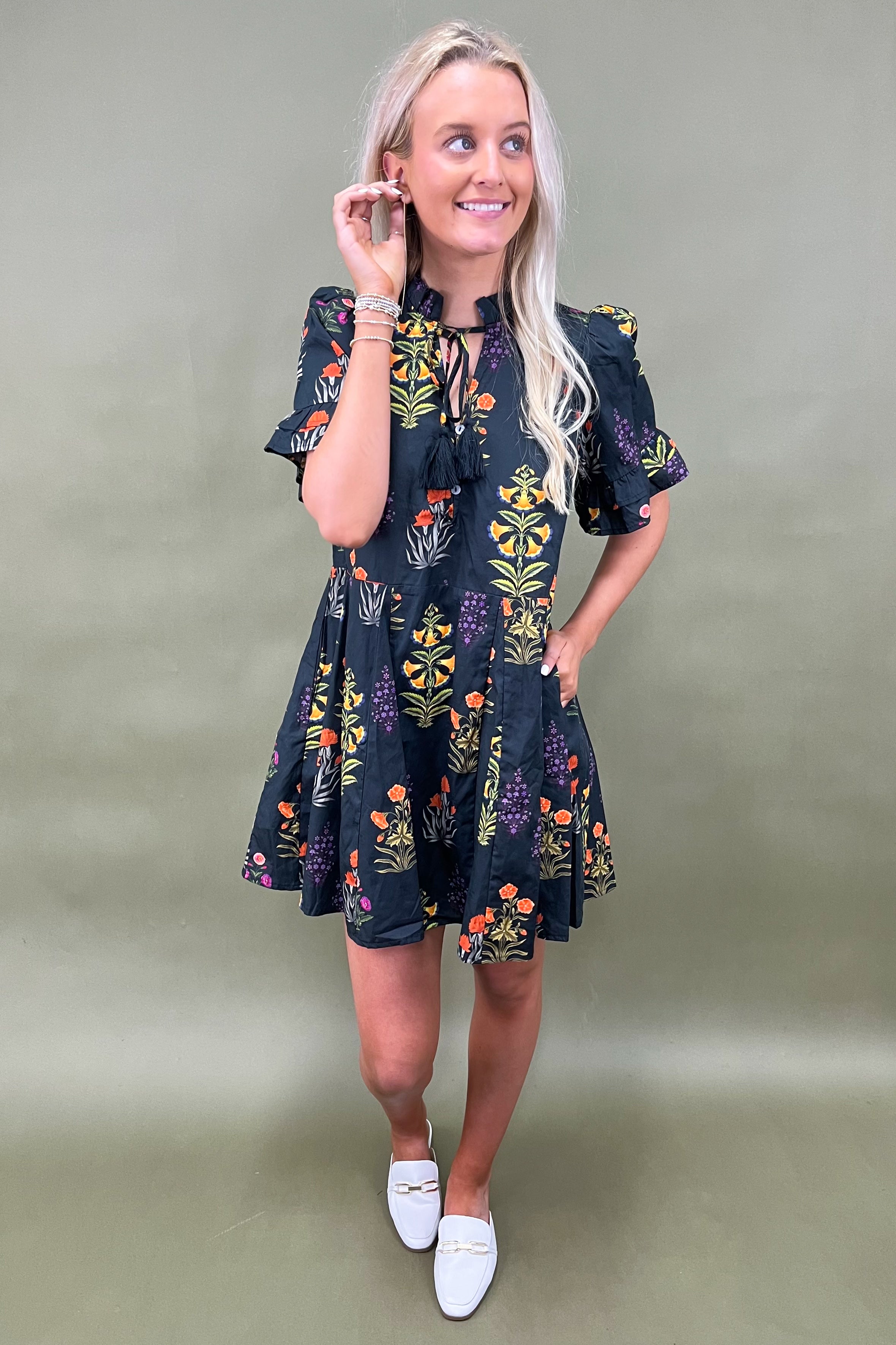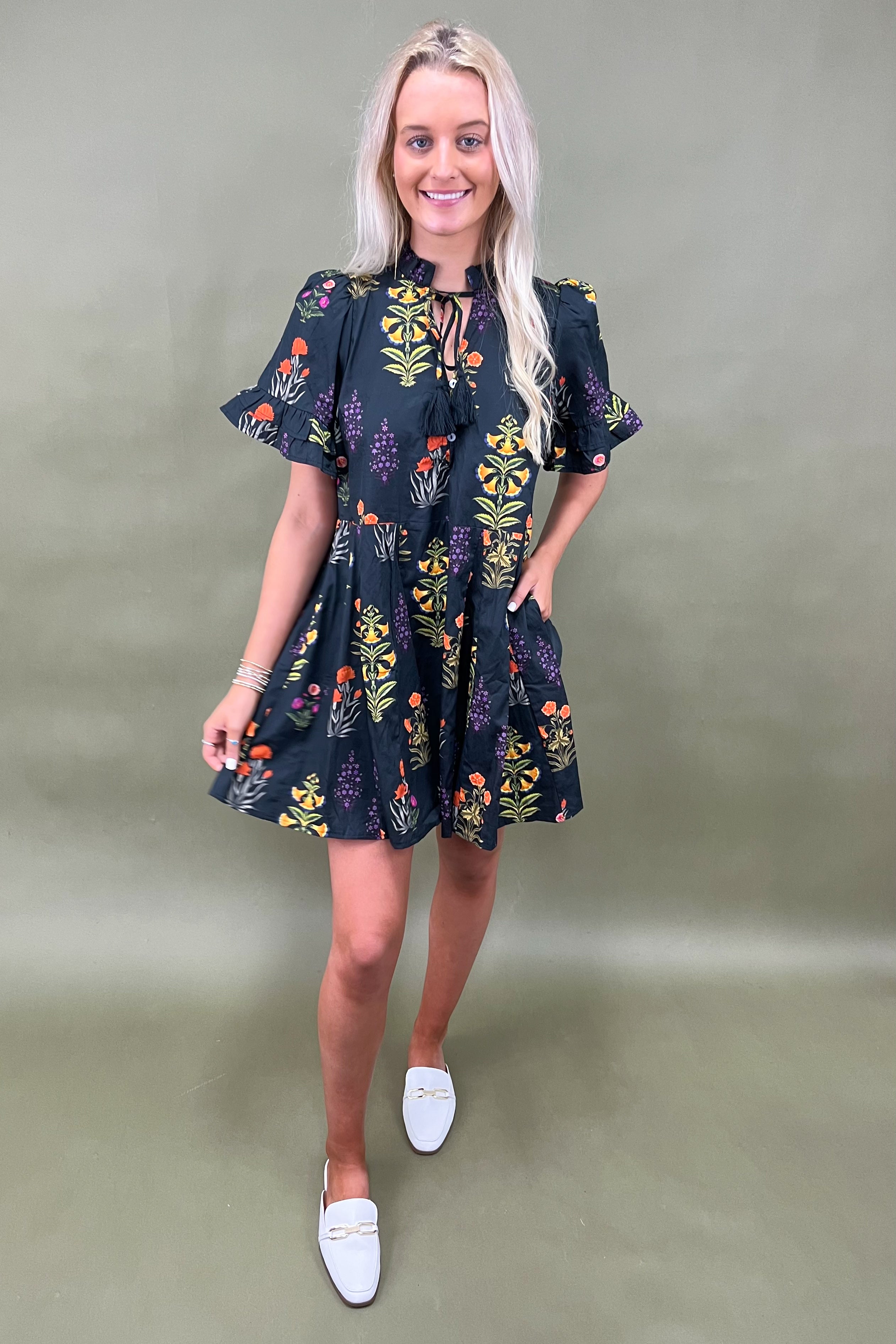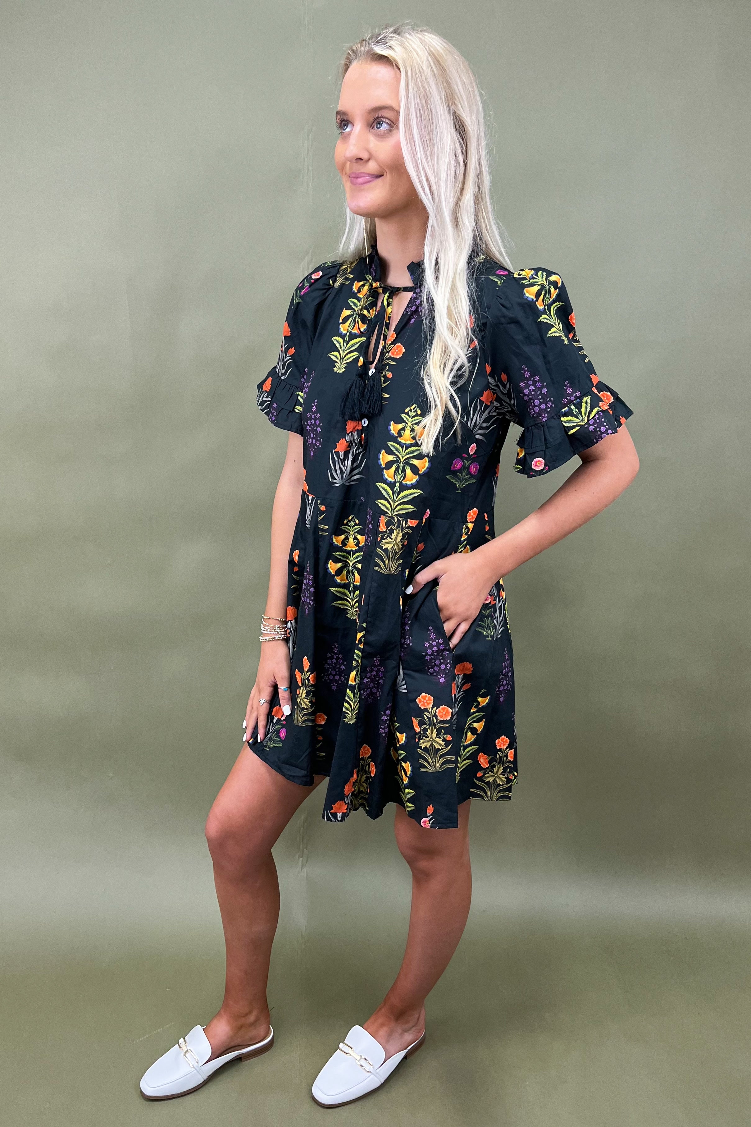 This is a dress you’ll find yourself reaching for again and again. It feels special without being over the top—perfect for brunch dates, backyard parties, or even dressed up for a festive evening out. The dark base makes the colors pop, which means you’ll always stand out (in the best way). It’s the kind of piece that sparks compliments wherever you go. 🌾