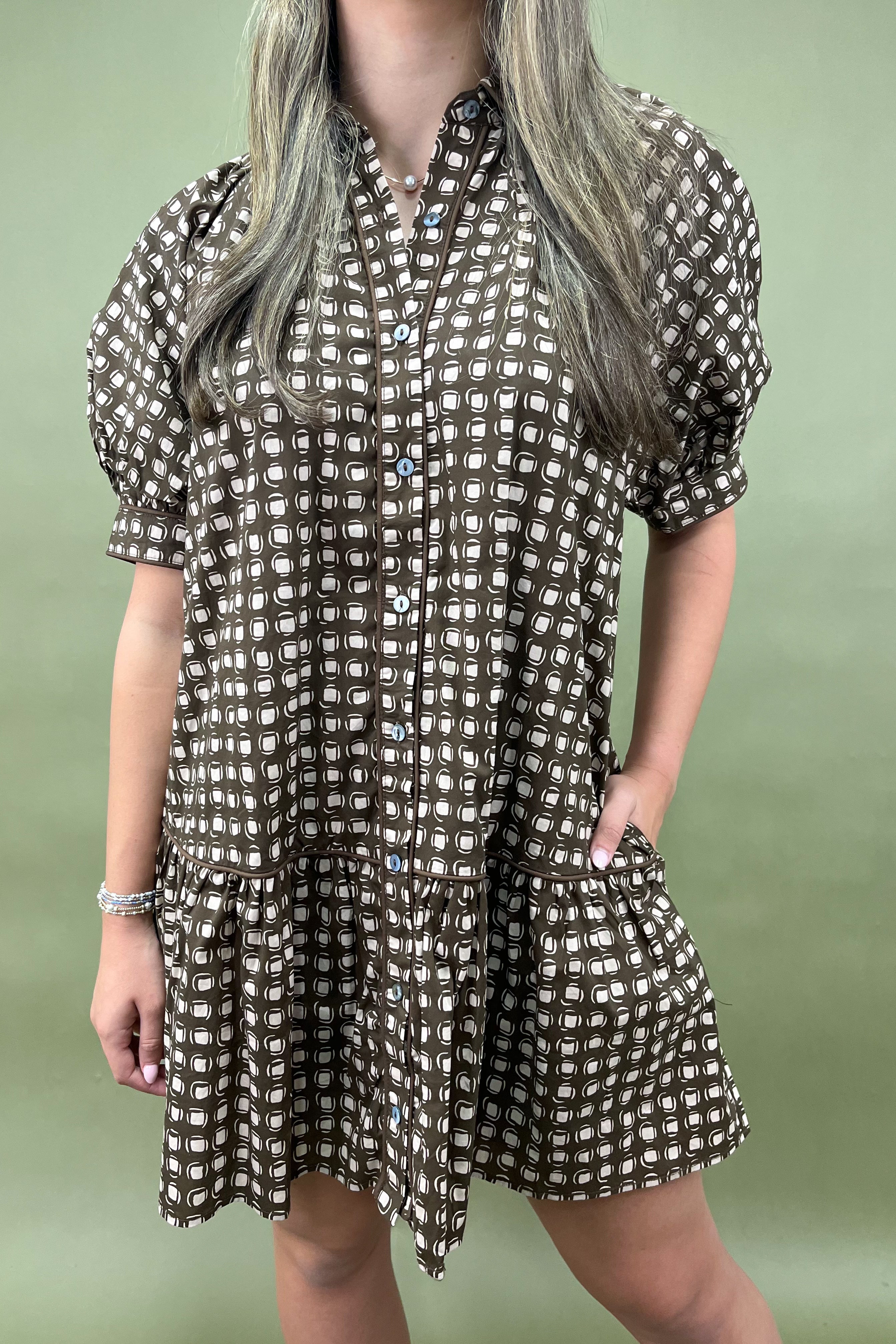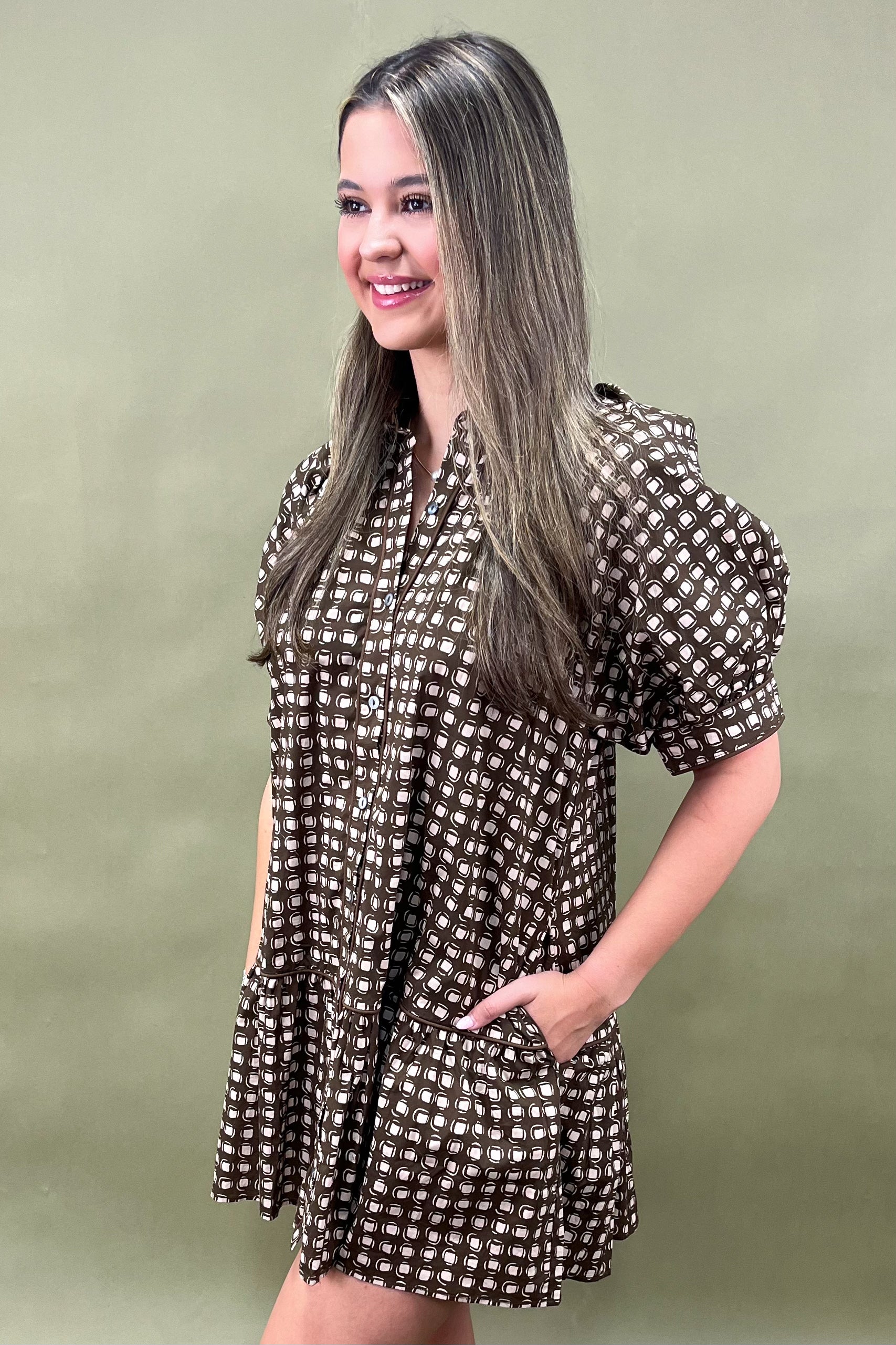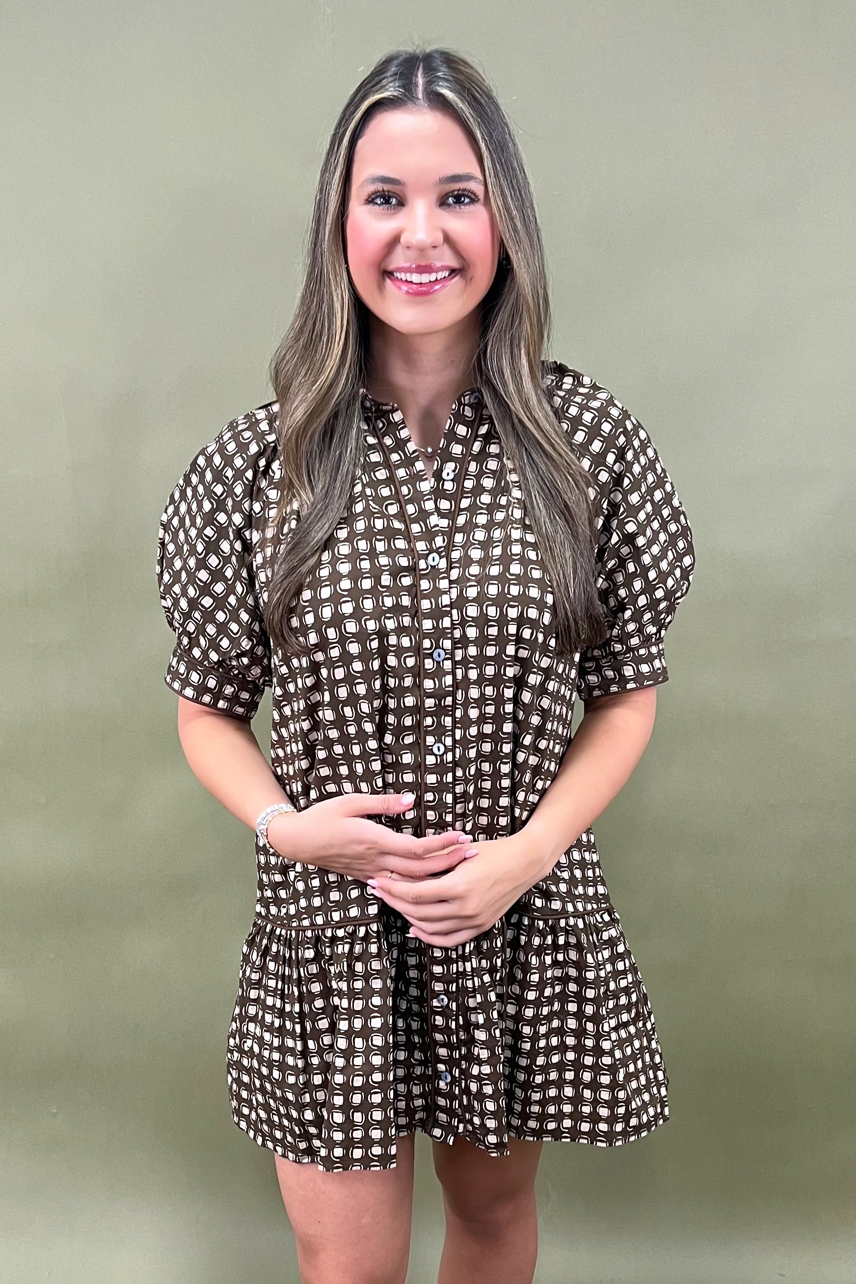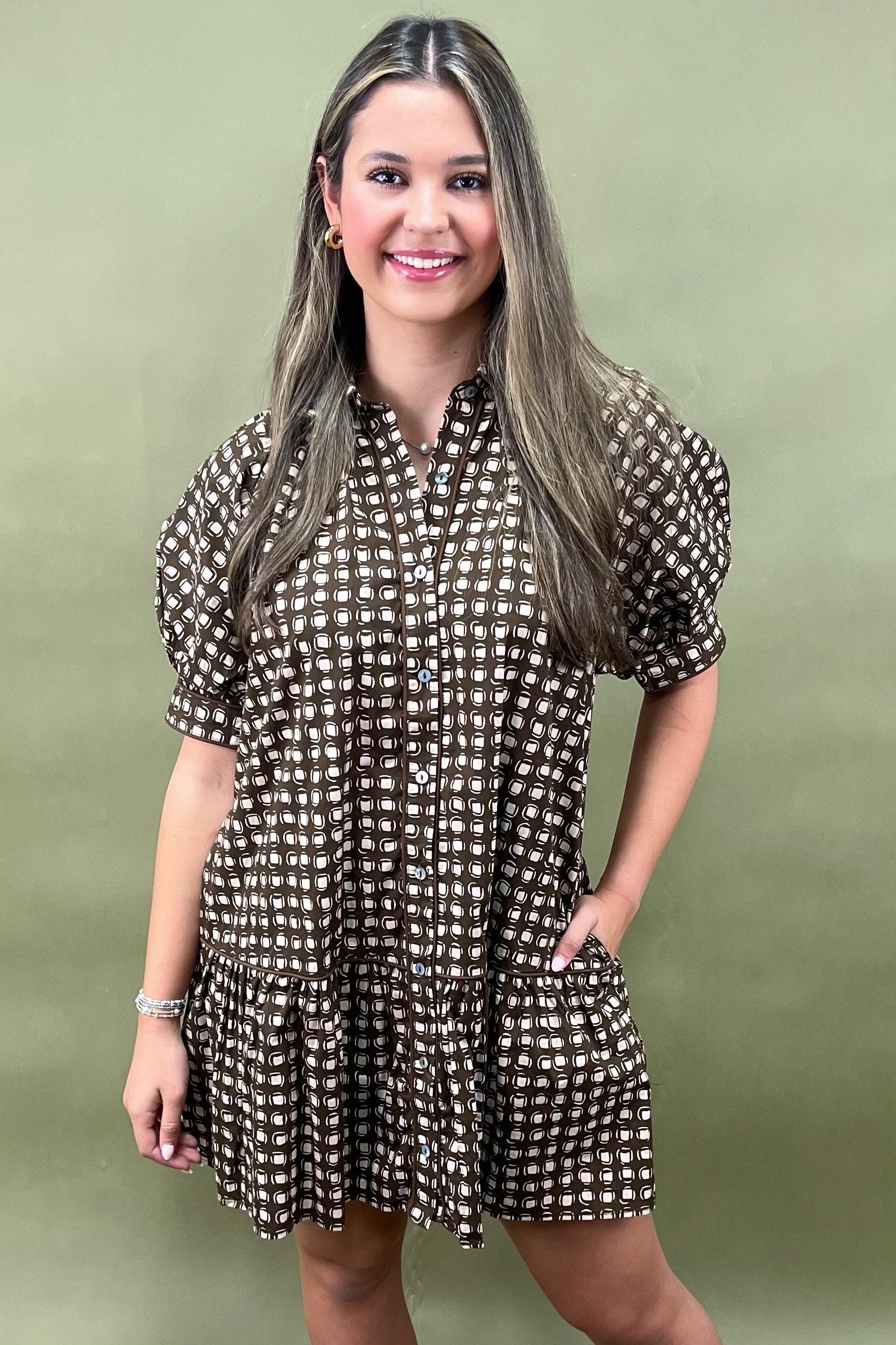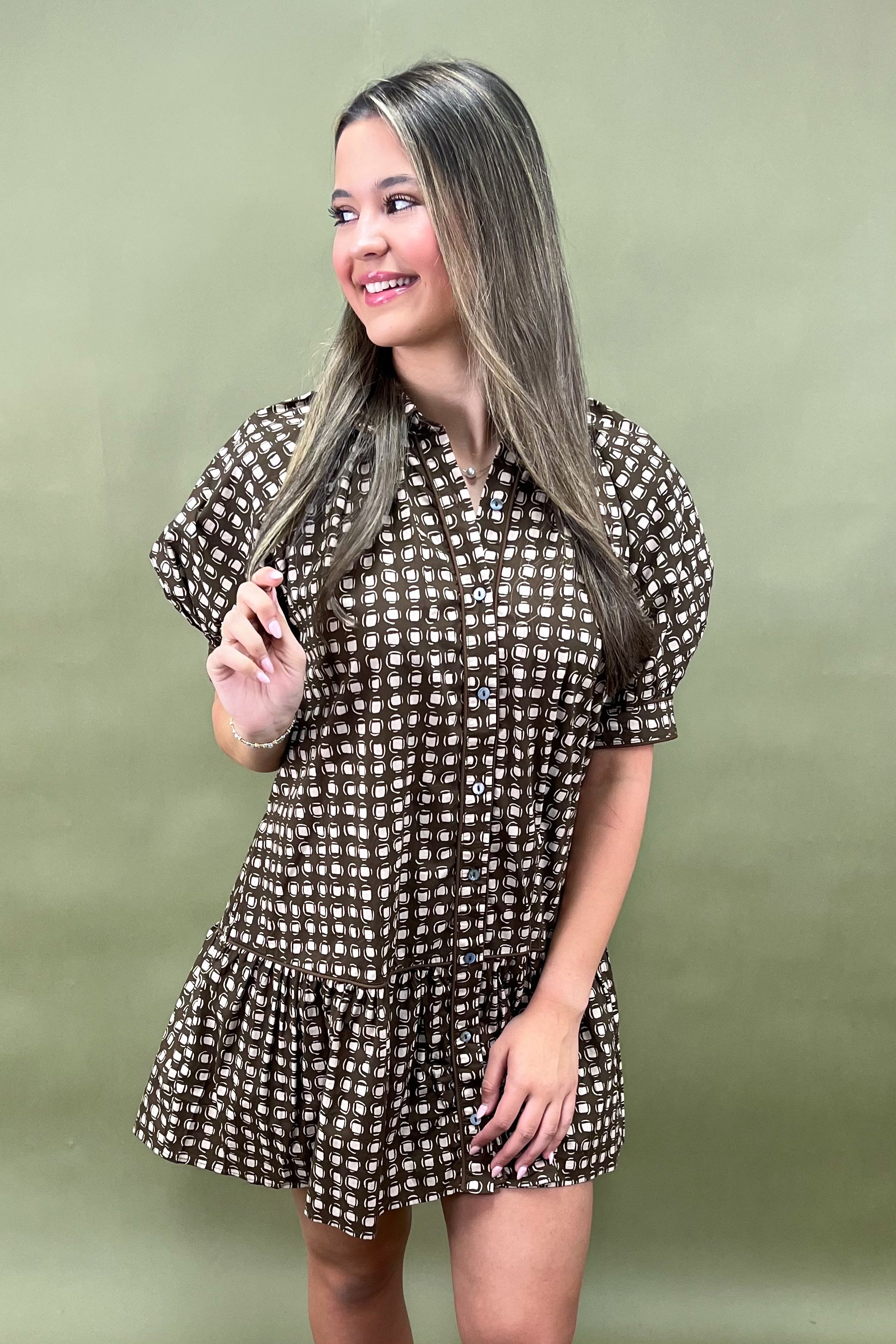 The collared neckline brings a touch of sophistication, while the puff sleeves add just the right amount of playful volume. The slightly tiered skirt creates soft movement with every step, giving the dress a feminine finish without overcomplicating the look. From running errands to heading into the office to grabbing dinner with friends, the Mocha Magic Button-Up transitions seamlessly from day to night.