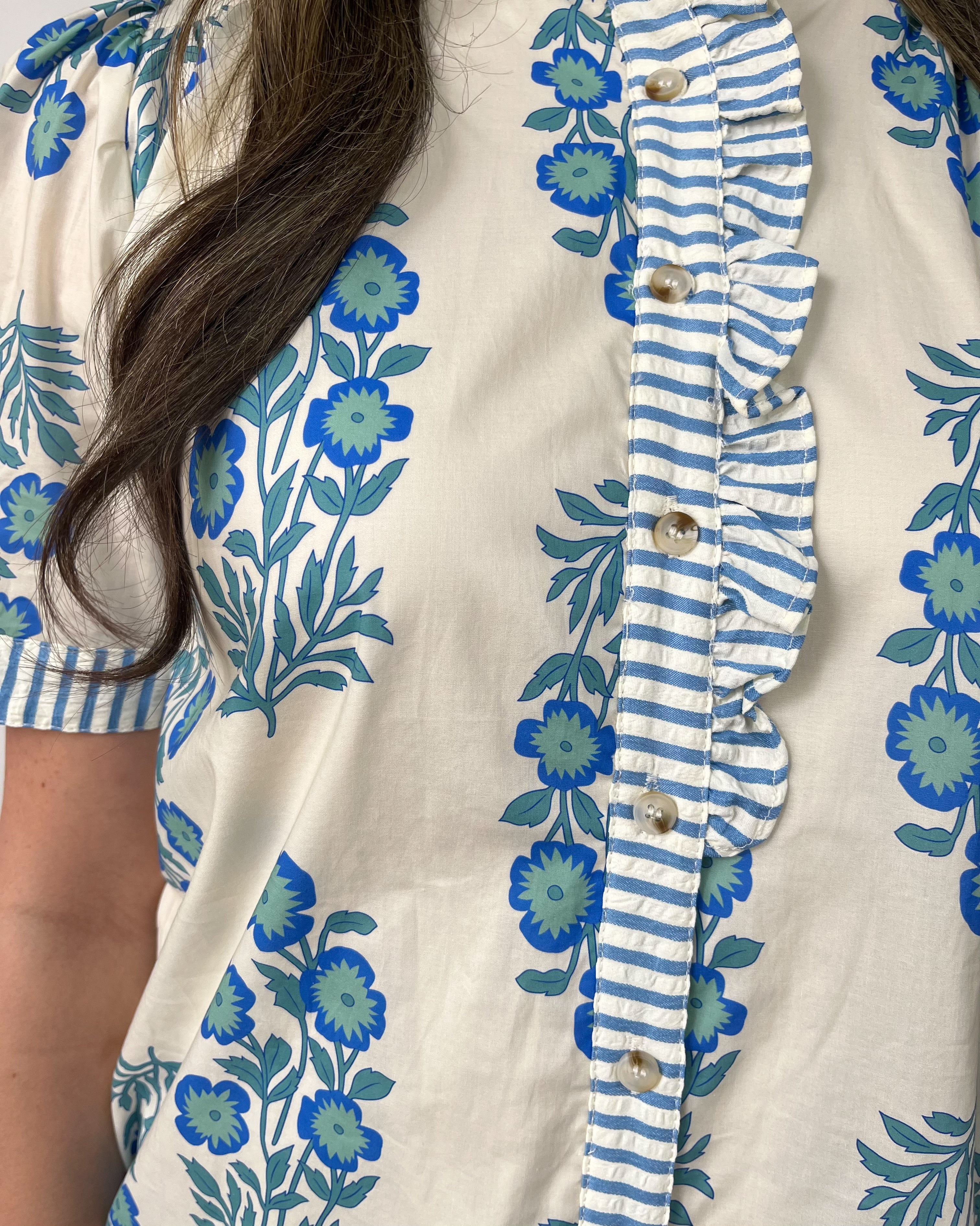 Soft Skies Floral Mini Dress brings all the airy, romantic vibes with its dreamy blue floral print and charming striped accents đđž This piece feels like a breath of fresh airâlight, feminine, and effortlessly pretty, perfect for sunny days, brunch plans, or strolling through town in style âš