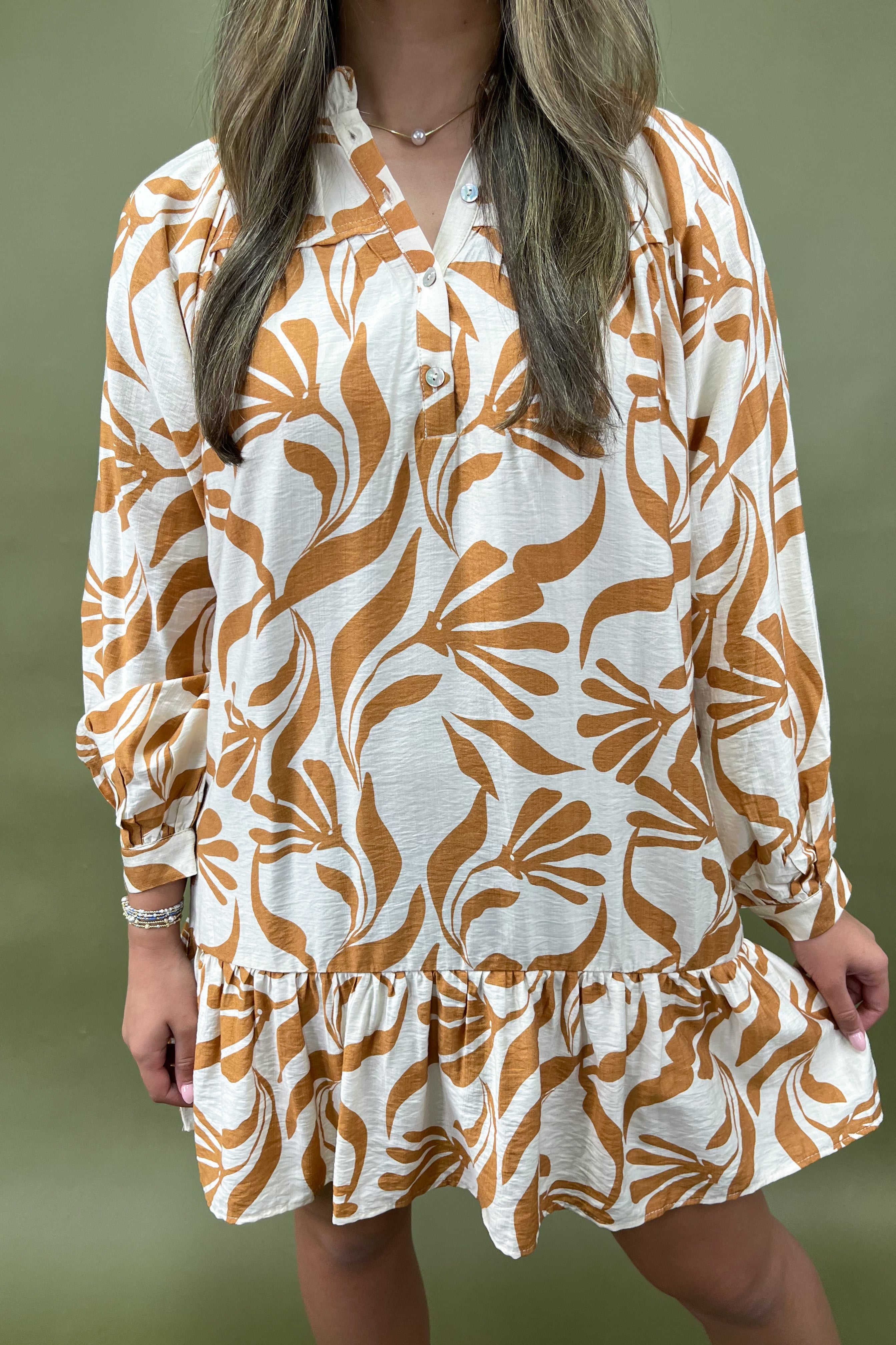 Step into a world of effortless charm with the Terracotta Dreaming Printed Dress 🌿✨ — the perfect mini that feels like sunshine and good vibes all wrapped into one. This dress is your go-to when you want something bold yet easy, fun yet chic, and comfortable enough to take you from coffee runs to golden hour cocktails without missing a beat. The earthy terracotta swirl print gives it that dreamy, wanderlust energy while keeping things timelessly stylish.