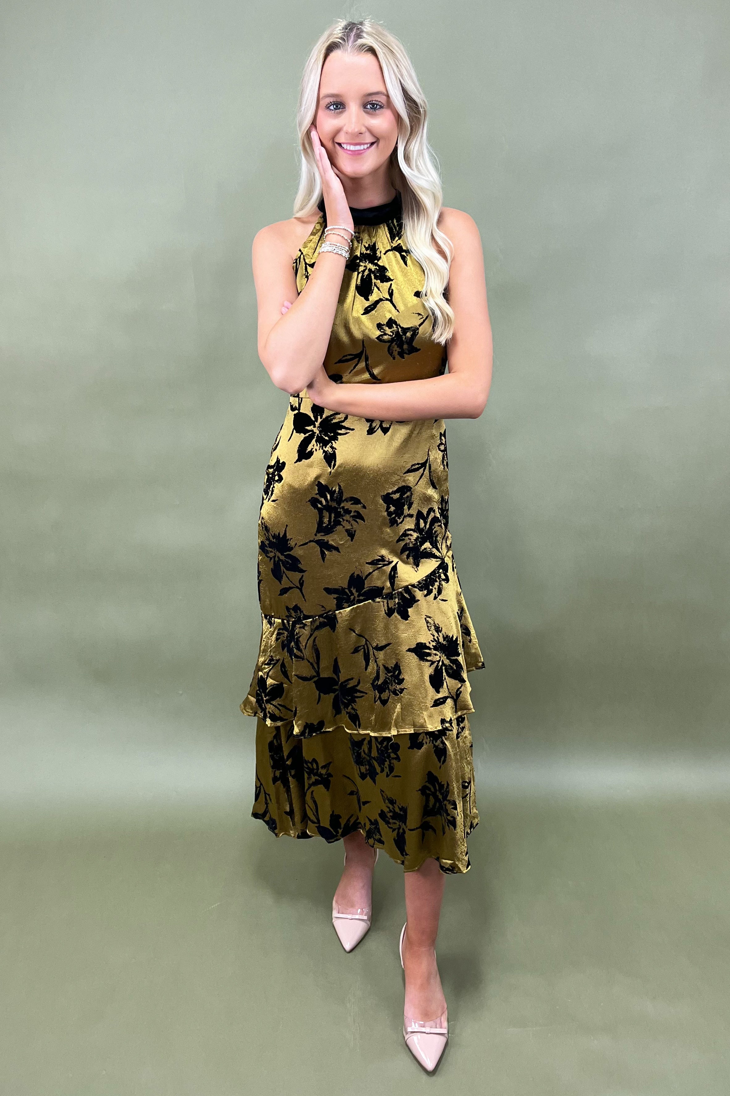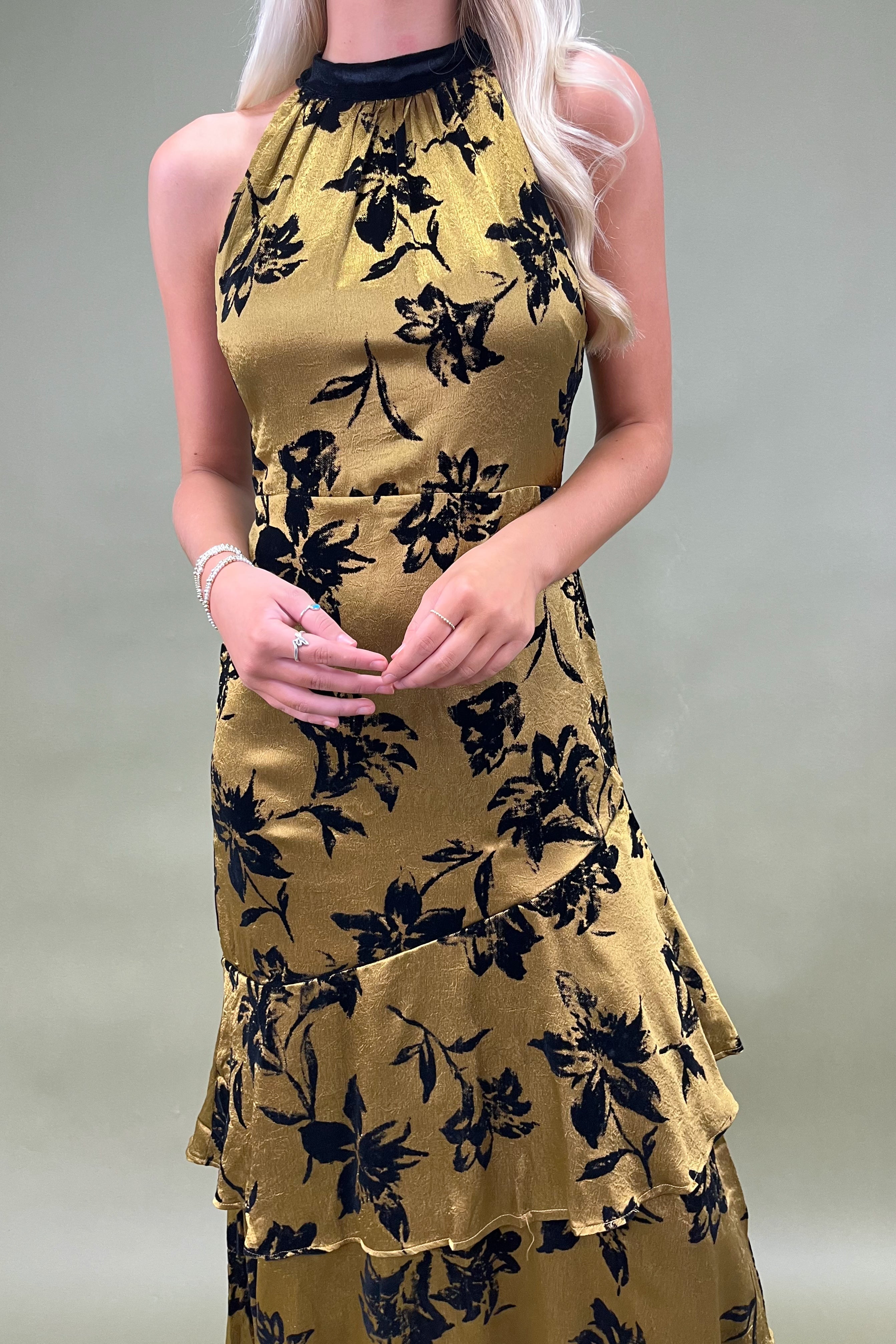 When luxe velvet meets moody florals—you get the Golden Hour Velvet Maxi 🍯🖤. This dreamy gown is designed in a rich golden-mustard hue with bold black burnout floral details that make it feel like pure poetry in motion. The flowy silhouette, tiered hemline, and soft velvet-like texture catch the light with every step, making this piece one you’ll want to twirl in all season long.