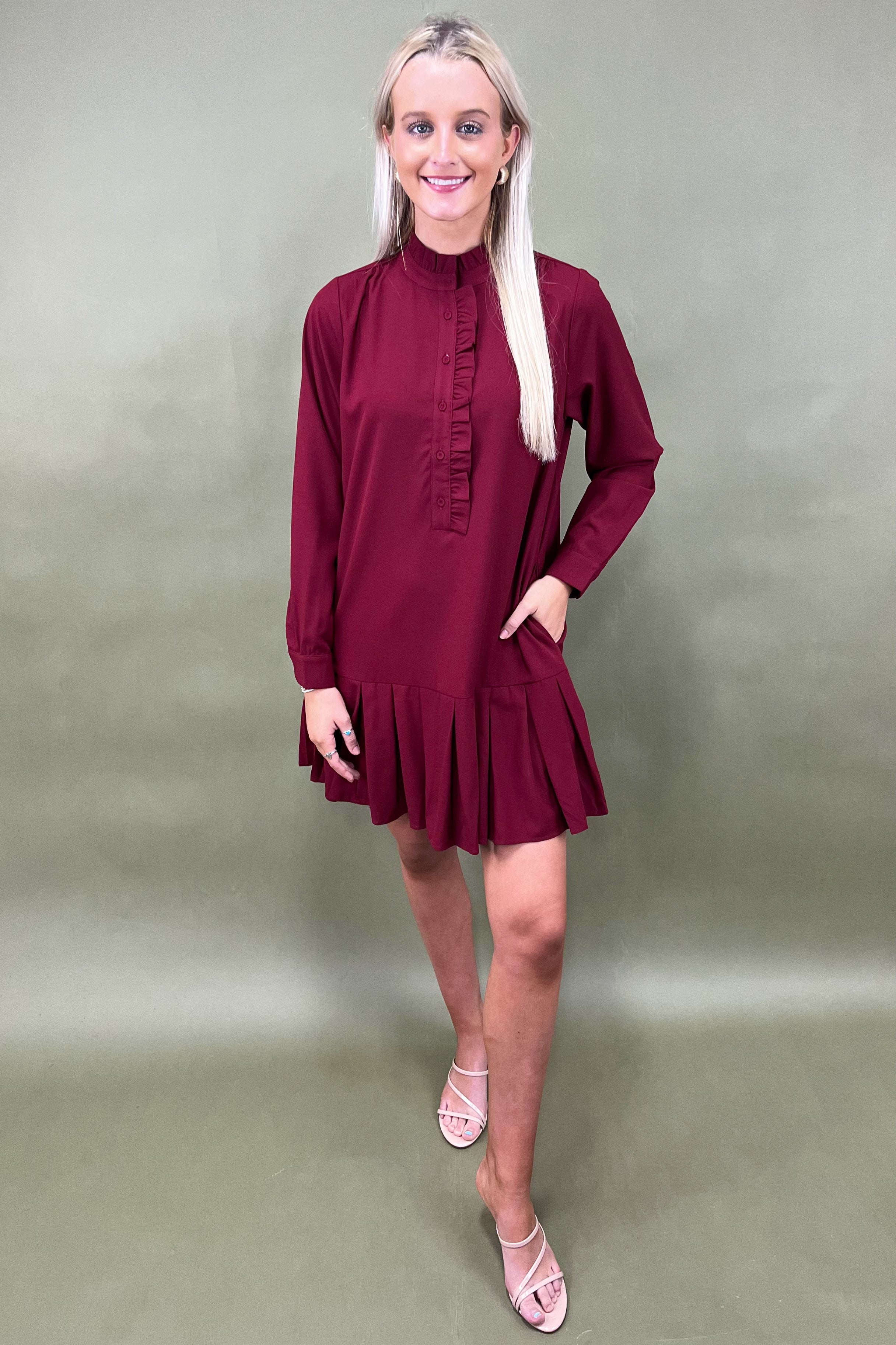 The Merlot Moments Dress isn’t just a pretty piece for your closet — it’s a reliable go-to for all those “I don’t know what to wear” moments. The deep hue sets the mood, while the details do the heavy lifting for you. You don’t need to over-accessorize; this dress shines on its own. The shape is flattering without being clingy, letting you breathe and move while still feeling put together. Think of it as your one-and-done outfit solution when you want style without the stress.