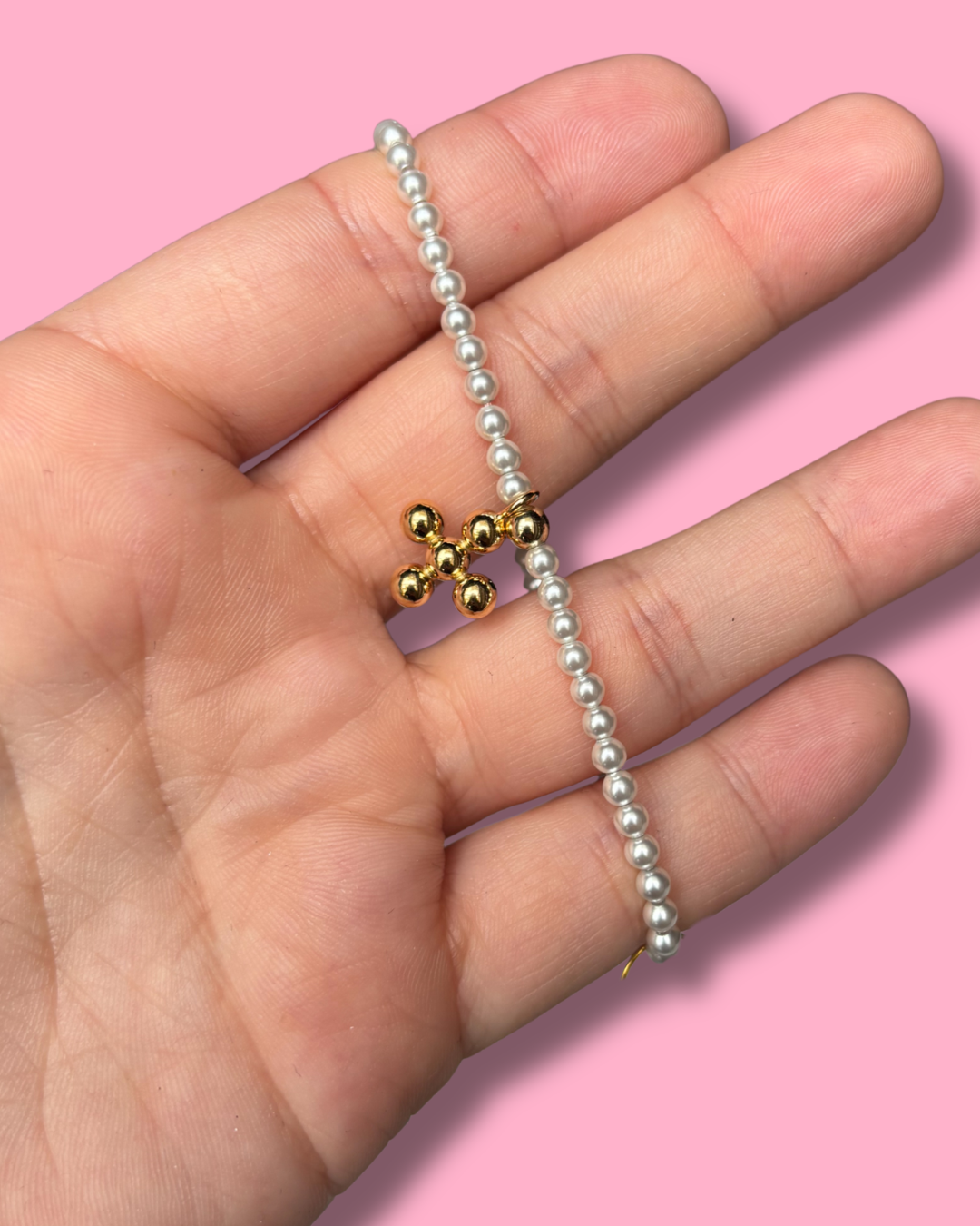 Little things mean a lot—and this delicate, meaningful piece is a beautiful reminder of faith and everyday grace. Featuring classic crystal pearls and a dainty gold beaded cross, it’s the perfect blend of timeless style and subtle symbolism you can wear with everything.