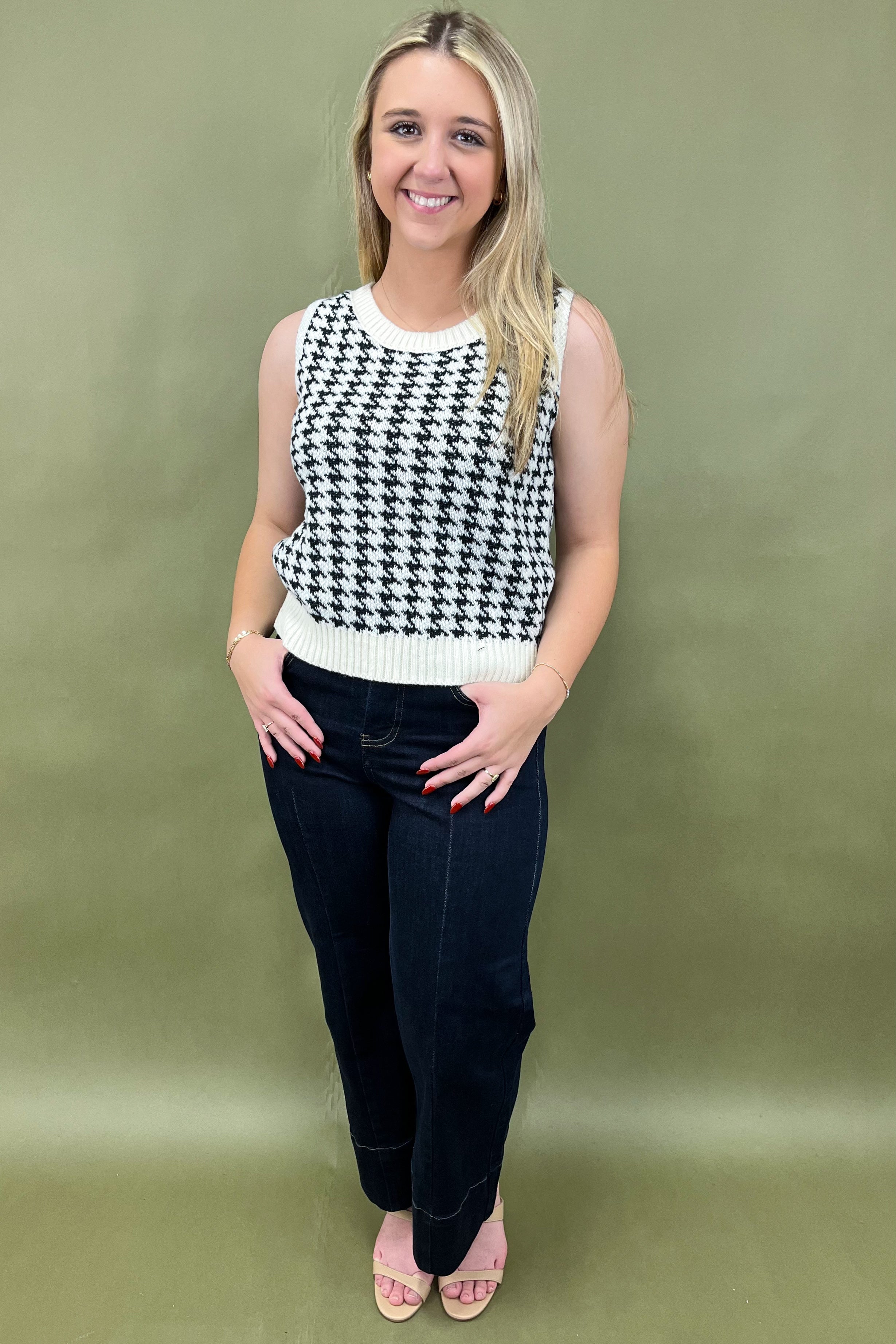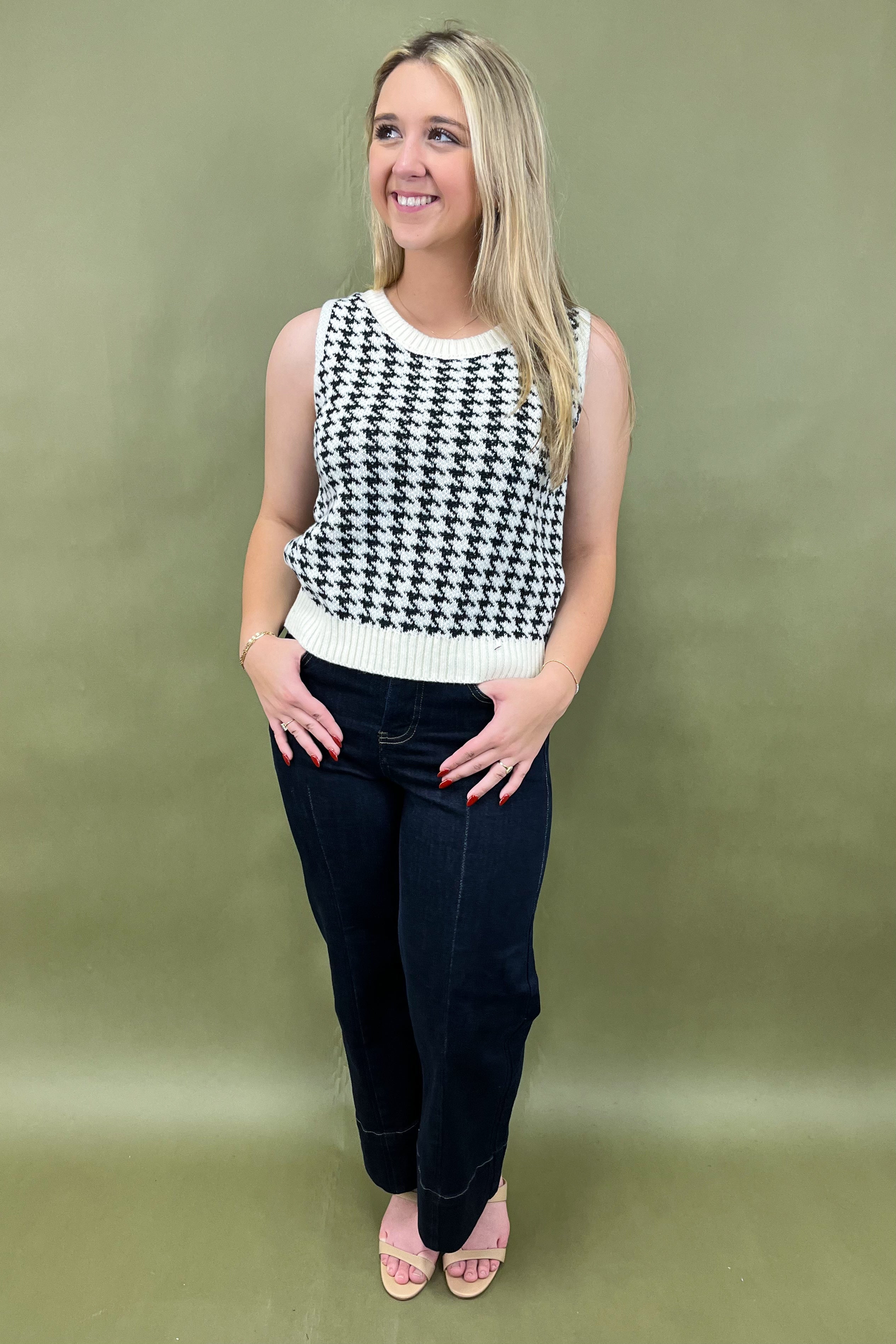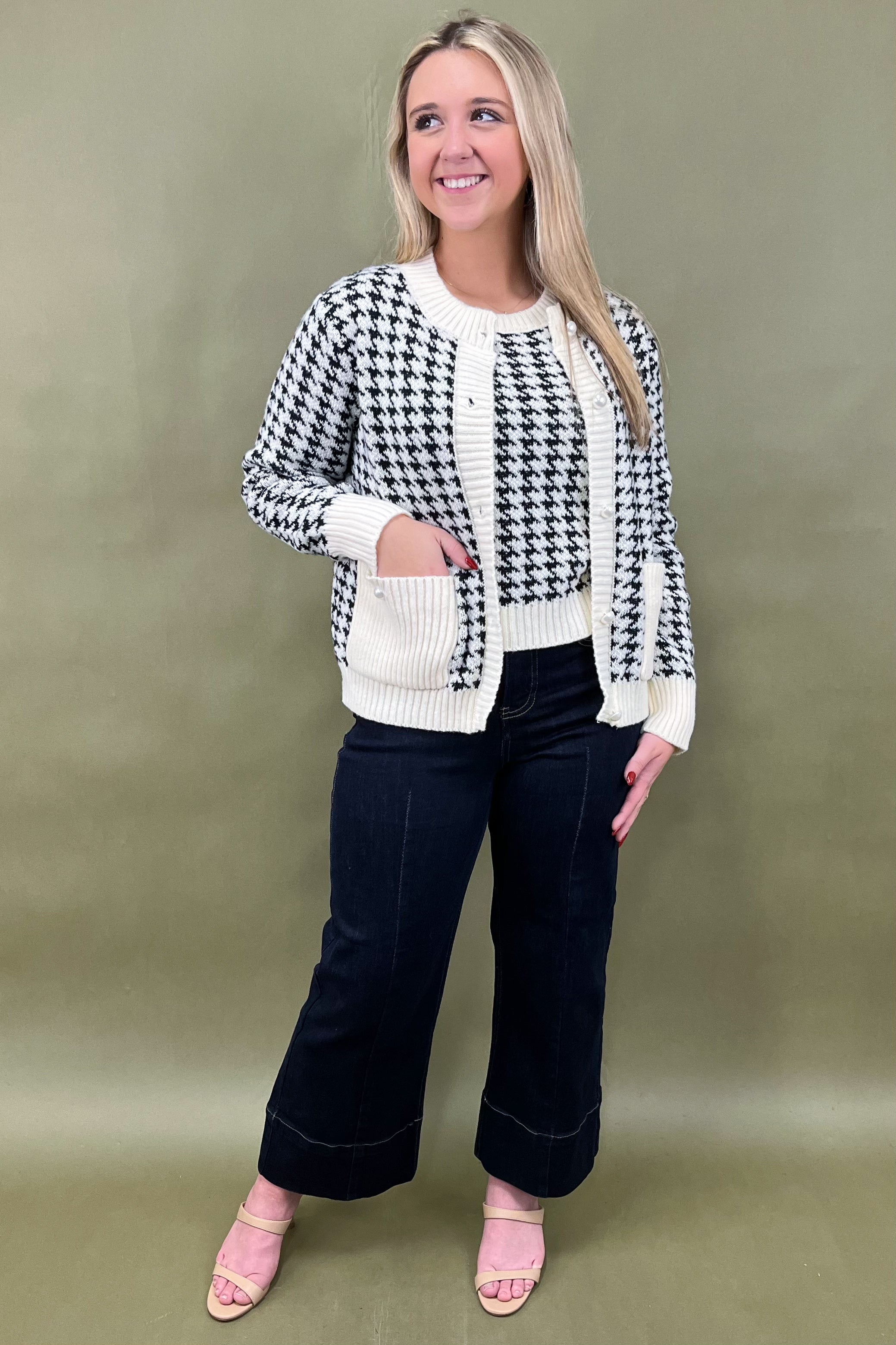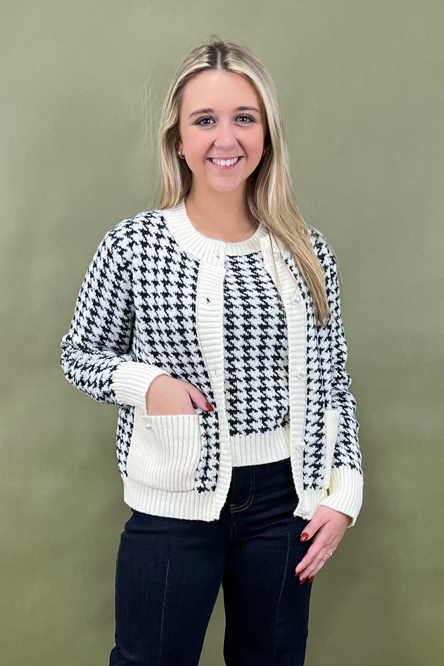 Say hello to your new go-to outfit heroes: the Check Me Out Tank & Cardigan set. This two-piece wonder is the ultimate mix of cozy, classic, and chic—aka everything your closet dreams are made of. From coffee dates to office days, and even those “I want to look cute but don’t want to try too hard” moments, this houndstooth duo has you covered in style. ✨