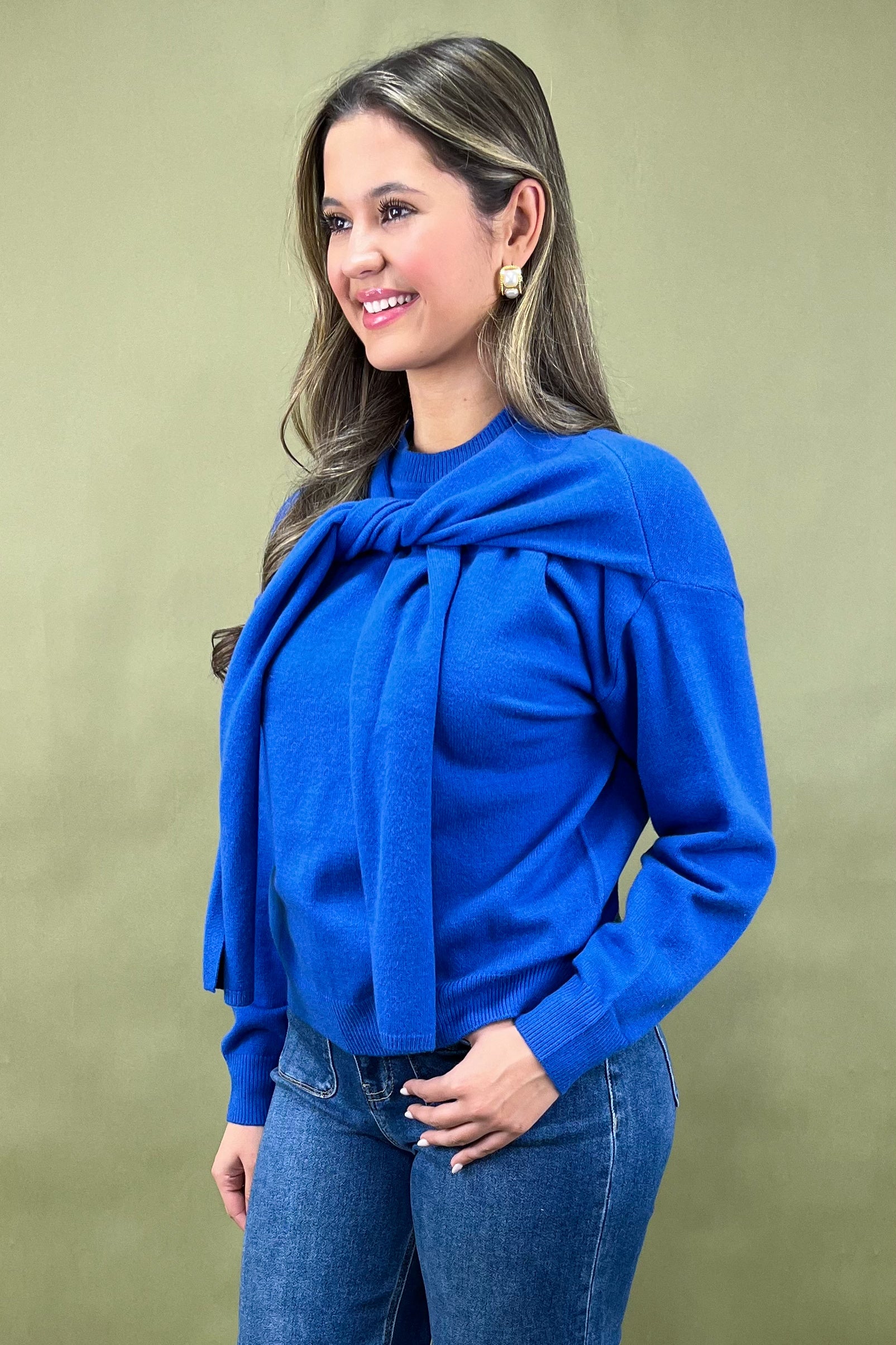 Take off in style with the Jet Setter Tie-Front Sweater — your passport to cozy-chic perfection! ✈️💫 Whether you’re boarding a plane, heading to brunch, or running around town with your favorite latte in hand, this stunning cobalt blue knit delivers effortless elegance with a playful twist. It’s that “I look put together without even trying” piece every closet needs.