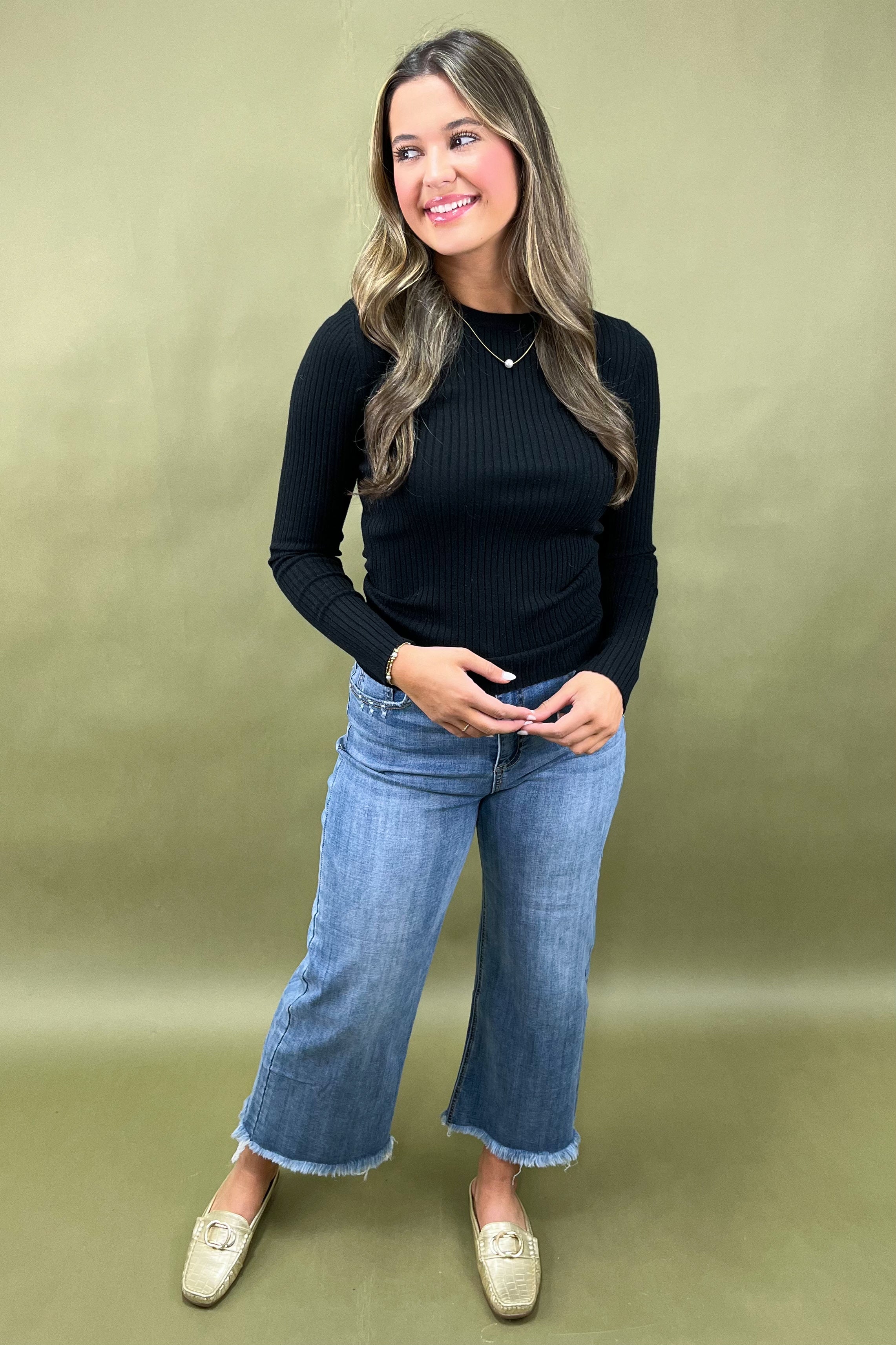 Meet your new not-so-basic basic: The Simply Chic Top. She’s sleek, timeless, and effortlessly stylish—the kind of top that can take you from “running errands” to “date night ready” without even trying. With her ribbed knit texture, fitted silhouette, and versatile black shade, she’s the piece your closet will thank you for.