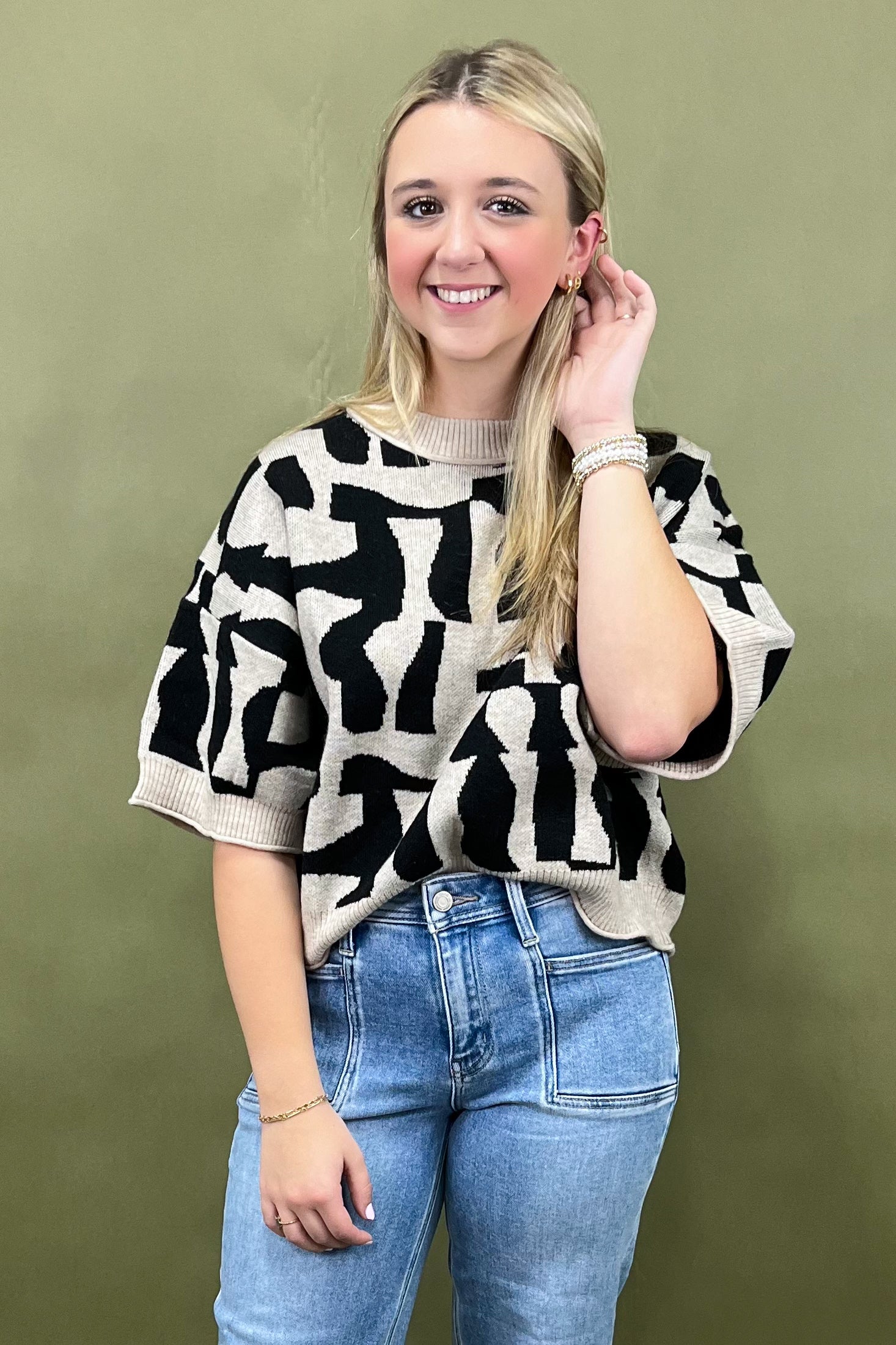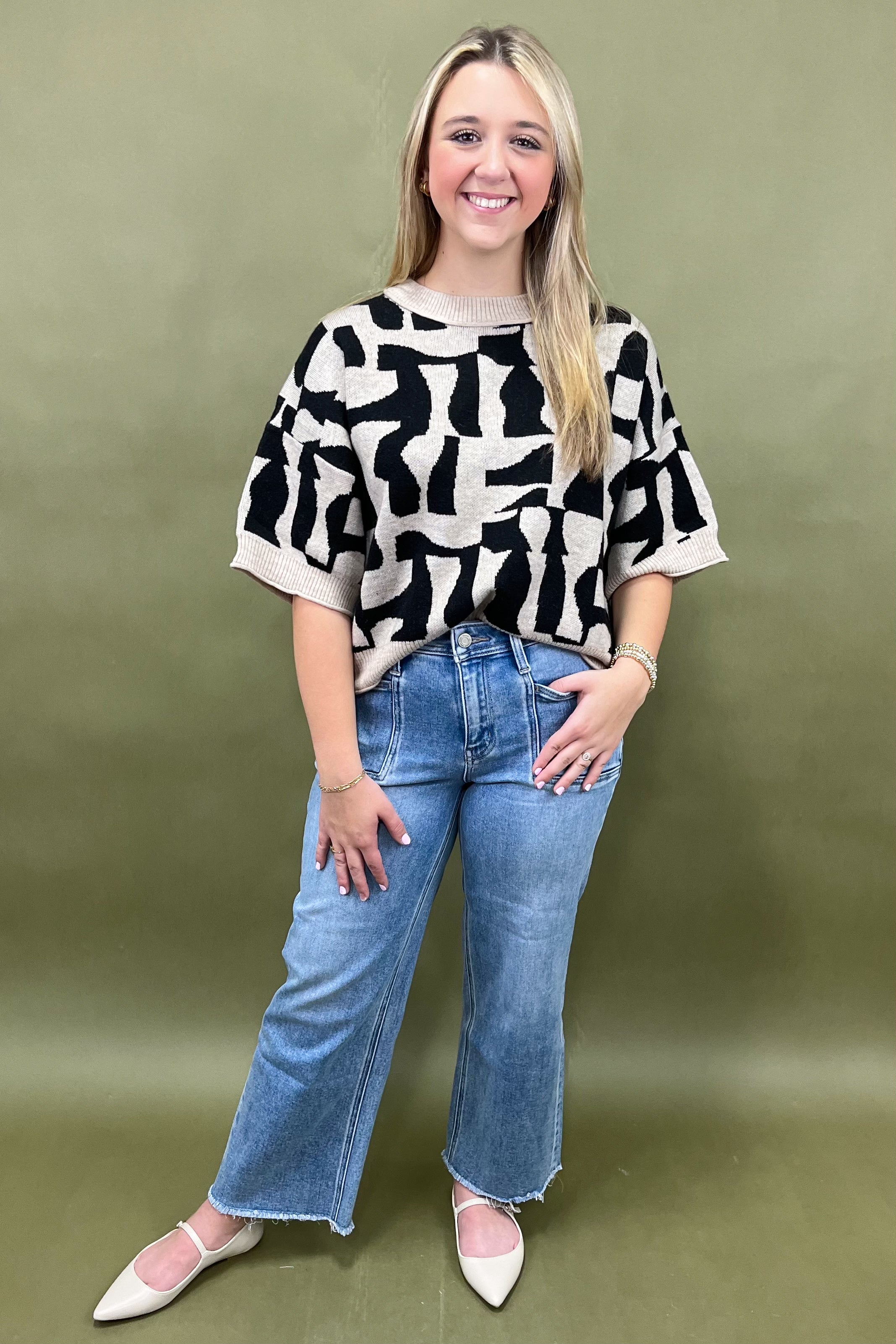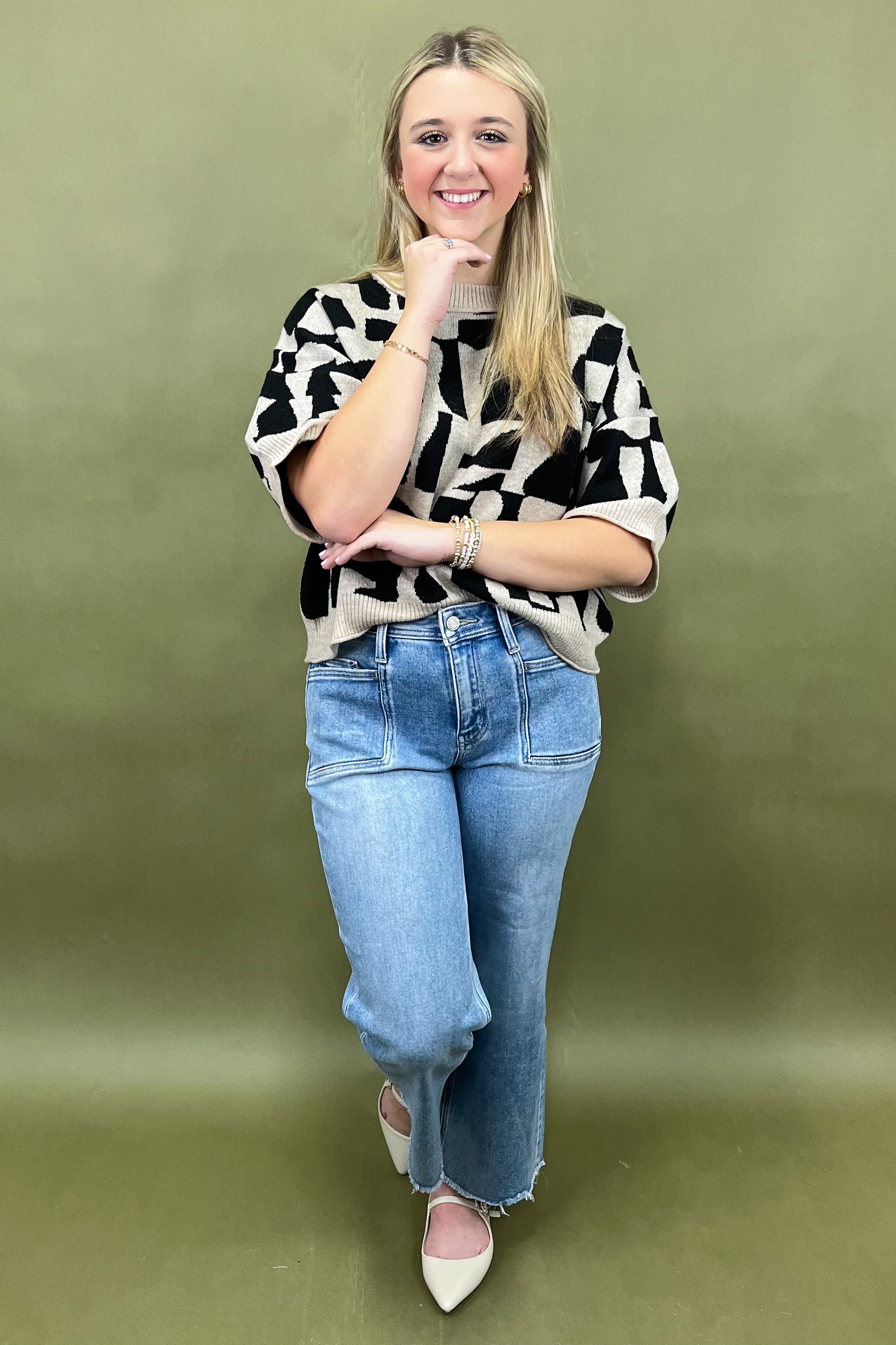 The Art District Chic Abstract Sweater Top is all about that effortless blend of comfort and creativity. đ€ Itâs for the woman whoâs confident, expressive, and not afraid to stand out â the one who turns every sidewalk into a runway and every outfit into a work of art. This sweater feels high-end but wearable, cozy but bold, trendy yet timeless.