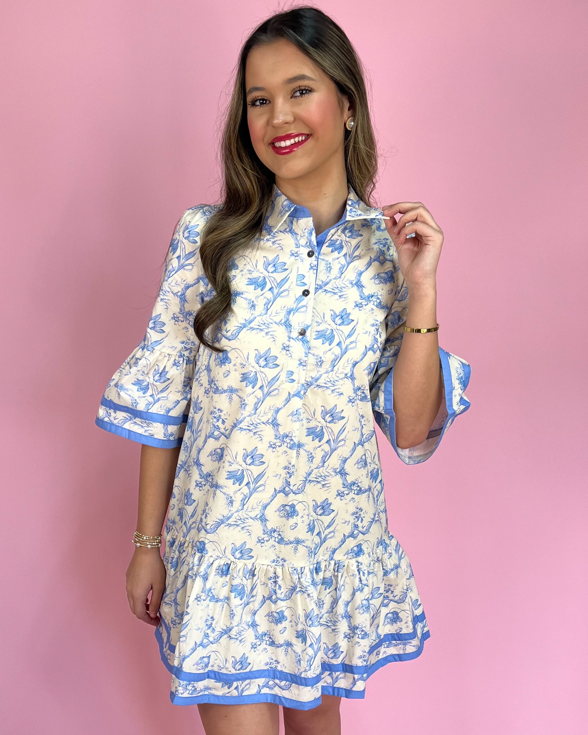 This dress is giving classic charm with an effortless, everyday twist 😍🌿 The blue-and-ivory willow-inspired floral print feels timeless and feminine, while the crisp collar and button-down front keep it polished and easy to wear ✨
