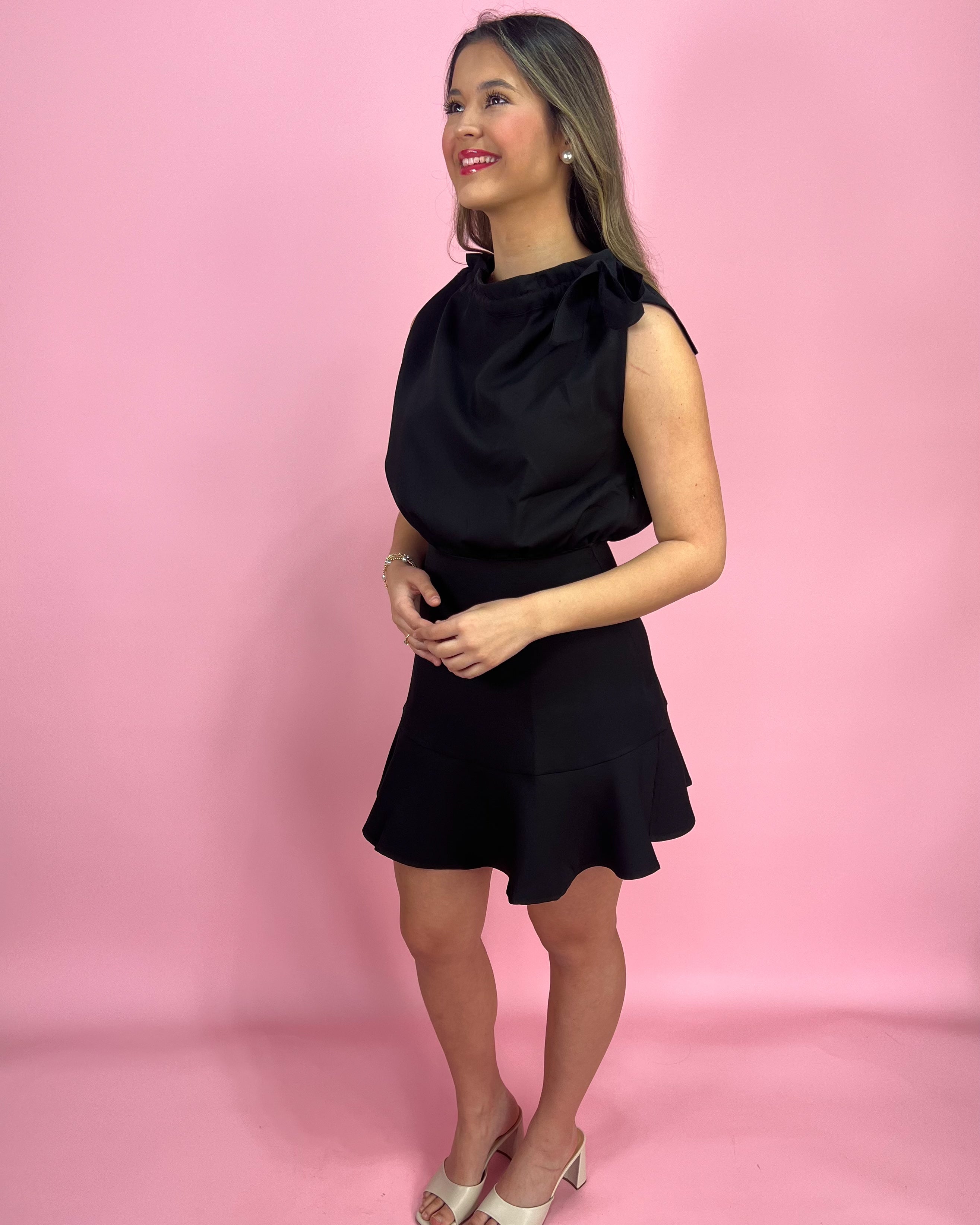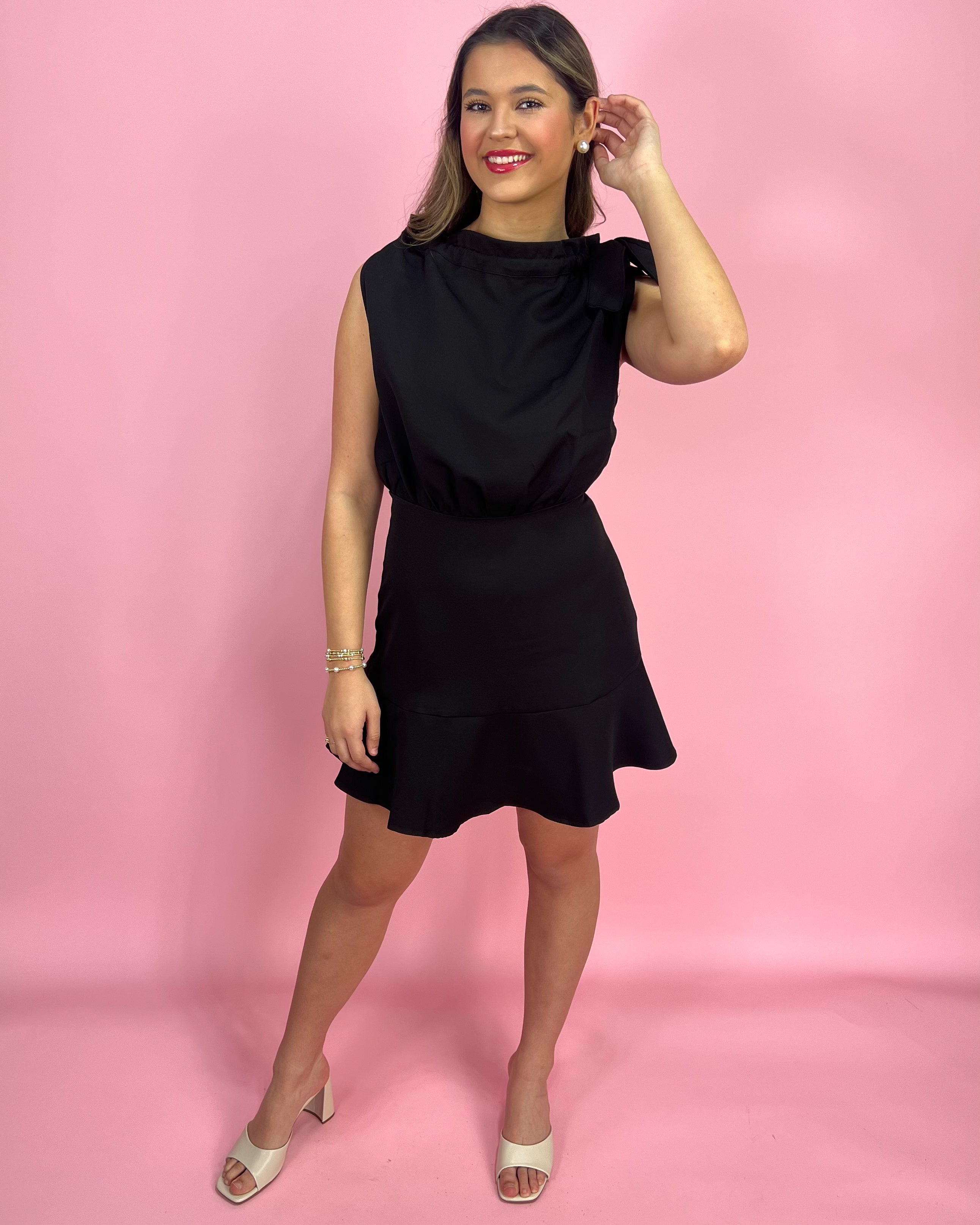 If you’re looking for the ultimate little black dress with a twist — this one is SO good 😍 The mock neckline keeps it chic and polished, while the statement bow detail instantly makes it feel elevated and special (no extra styling required!).