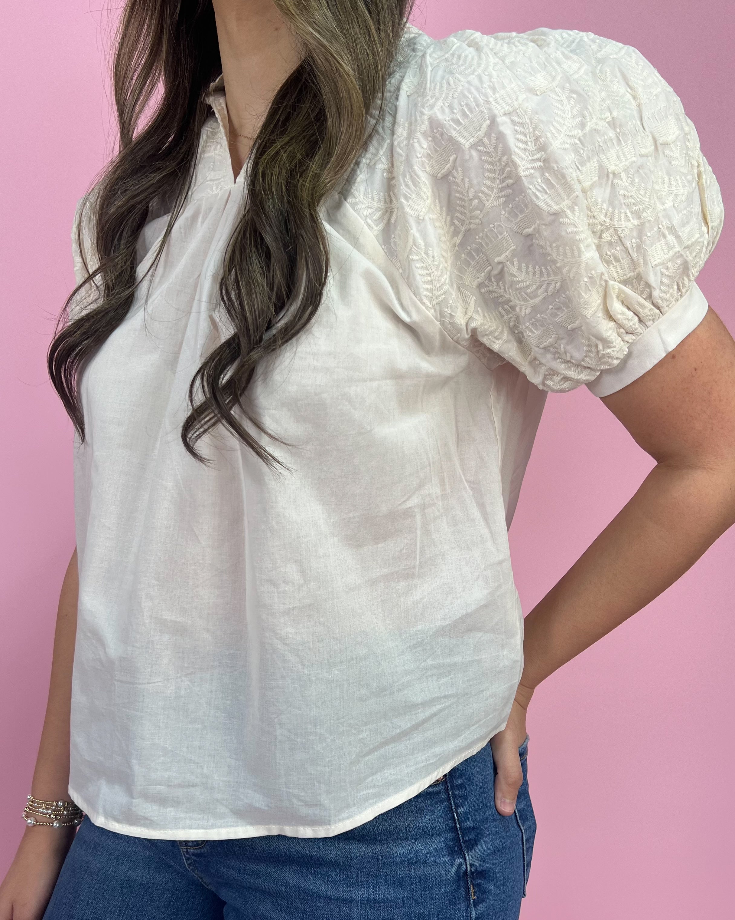 ✨ Statement embroidered puff sleeves for texture + charm