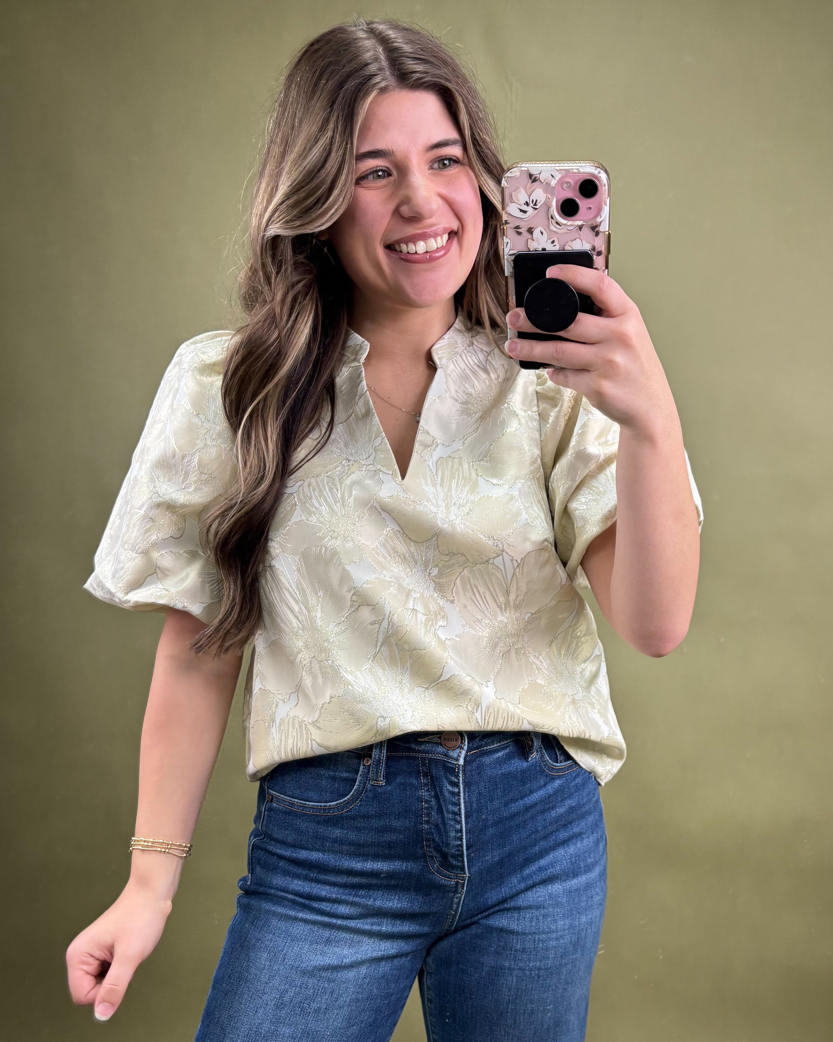 The Champagne Blooms Puff Sleeve Top is all things lovely, luxe, and unbelievably easy to style—basically the definition of boutique perfection. ✨🌼