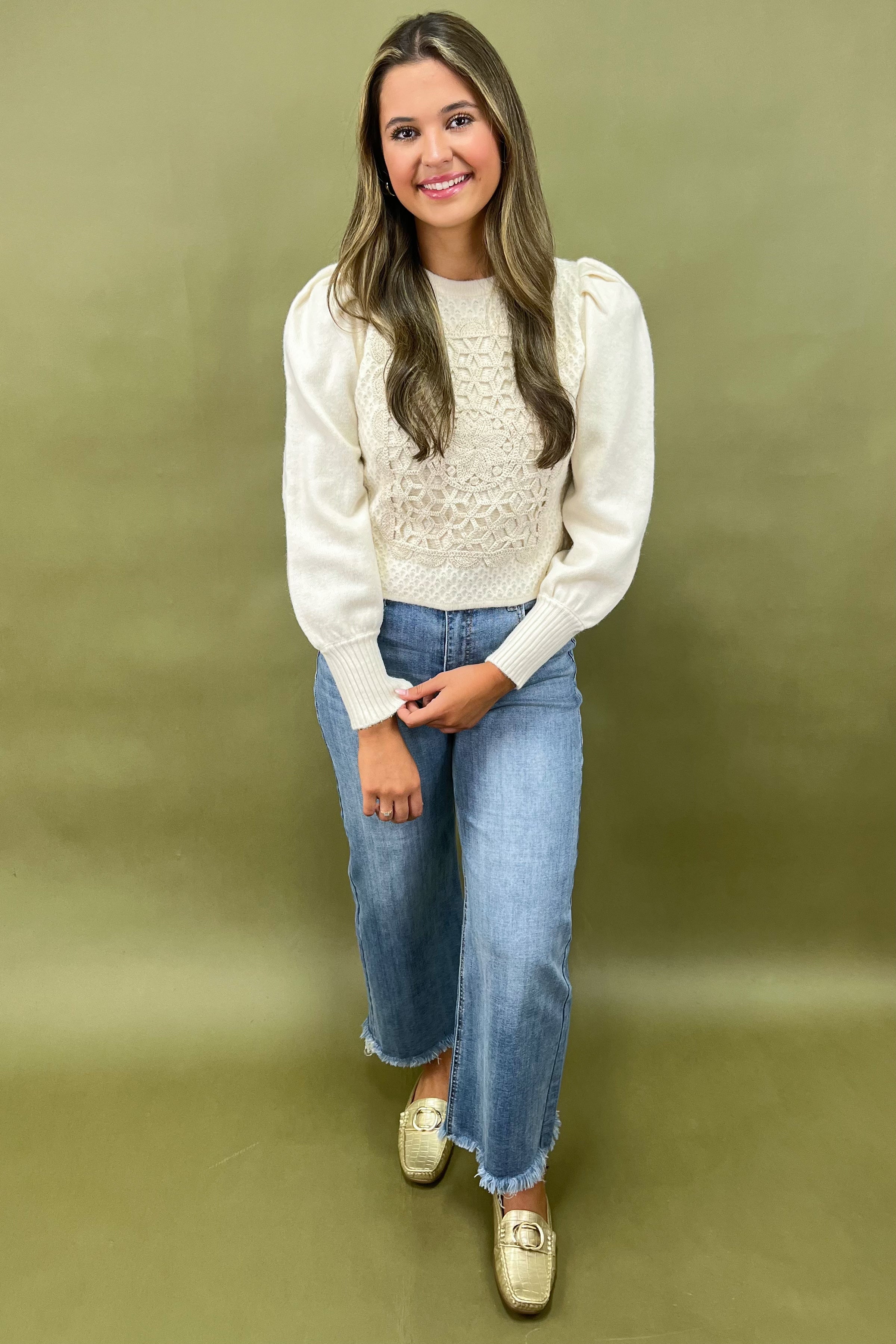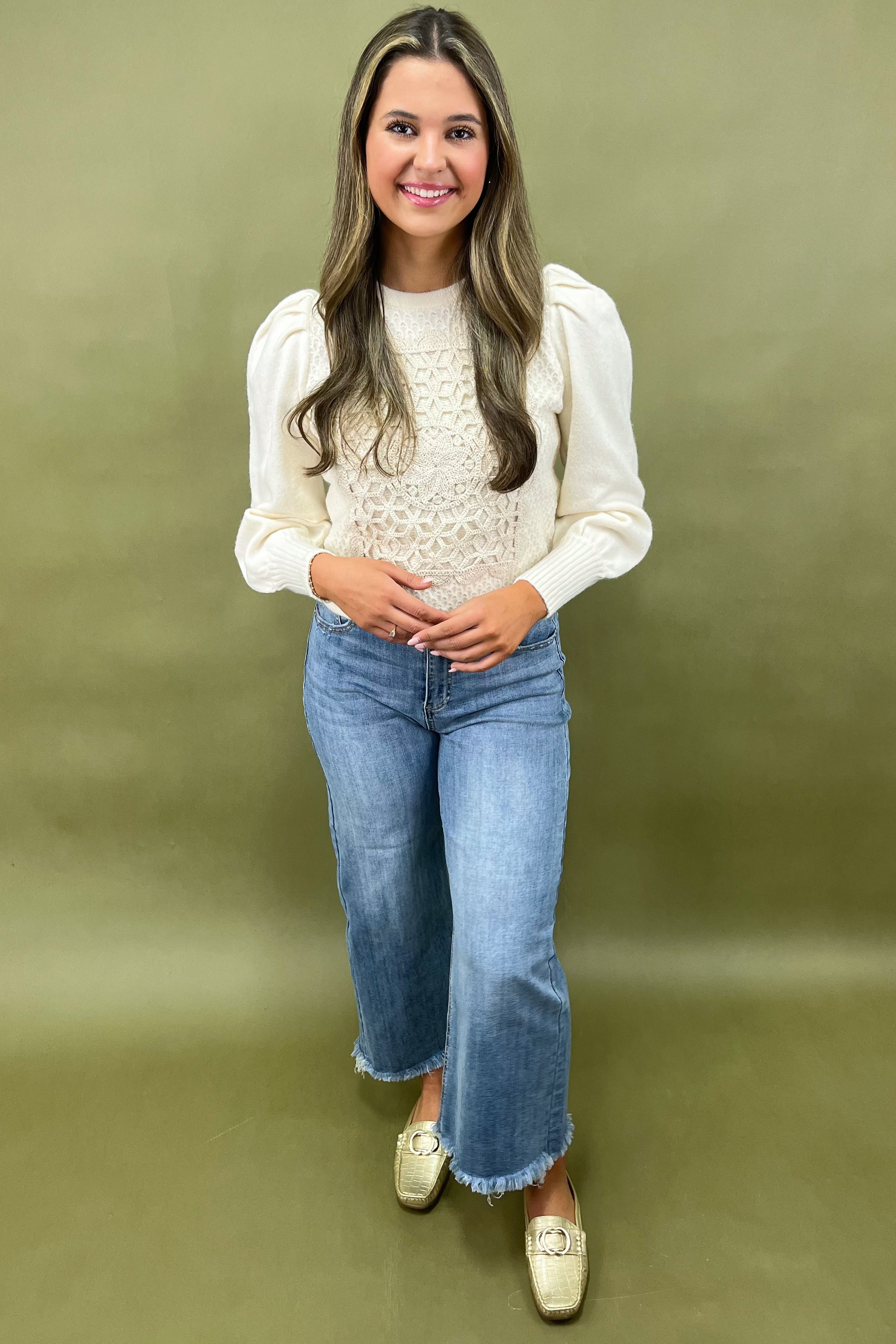 This isn’t your everyday sweater — the Enchanted Threads Sweater feels like something you’d discover in a storybook boutique, tucked away on cobblestone streets. It’s the sweater you’ll reach for when you want to look effortlessly put together, whether you’re heading to brunch with the girls, strolling through a holiday market, or snuggled up at home with a good book. The thoughtful detailing gives it an upscale, boutique feel, while the cozy knit makes it just as practical as it is beautiful.👗 Styling Inspo