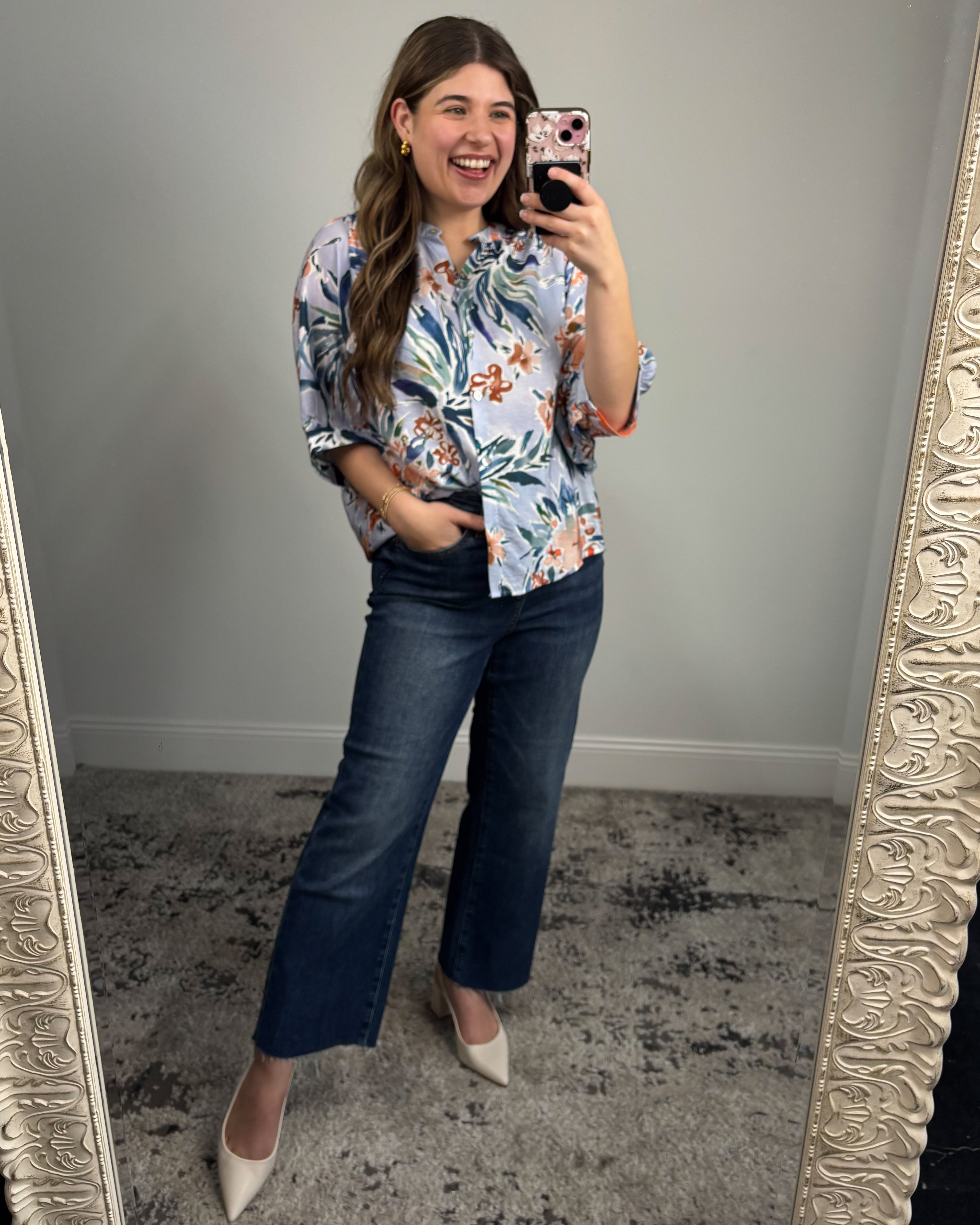 The Floral Canvas Button Down Blouse is the perfect blend of comfort and artistry. With its breezy feel, stunning brushstroke blooms, and flattering relaxed fit, this top brings feminine charm to any outfit. A standout staple for your spring wardrobe! 🌿💐✨