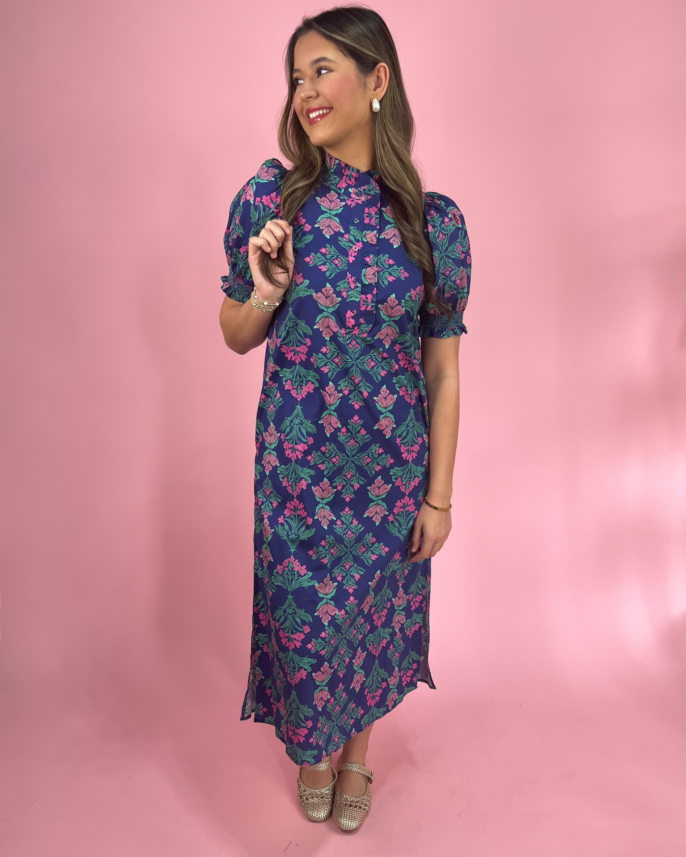 Naturally Navy Floral Puff Sleeve Maxi Dress