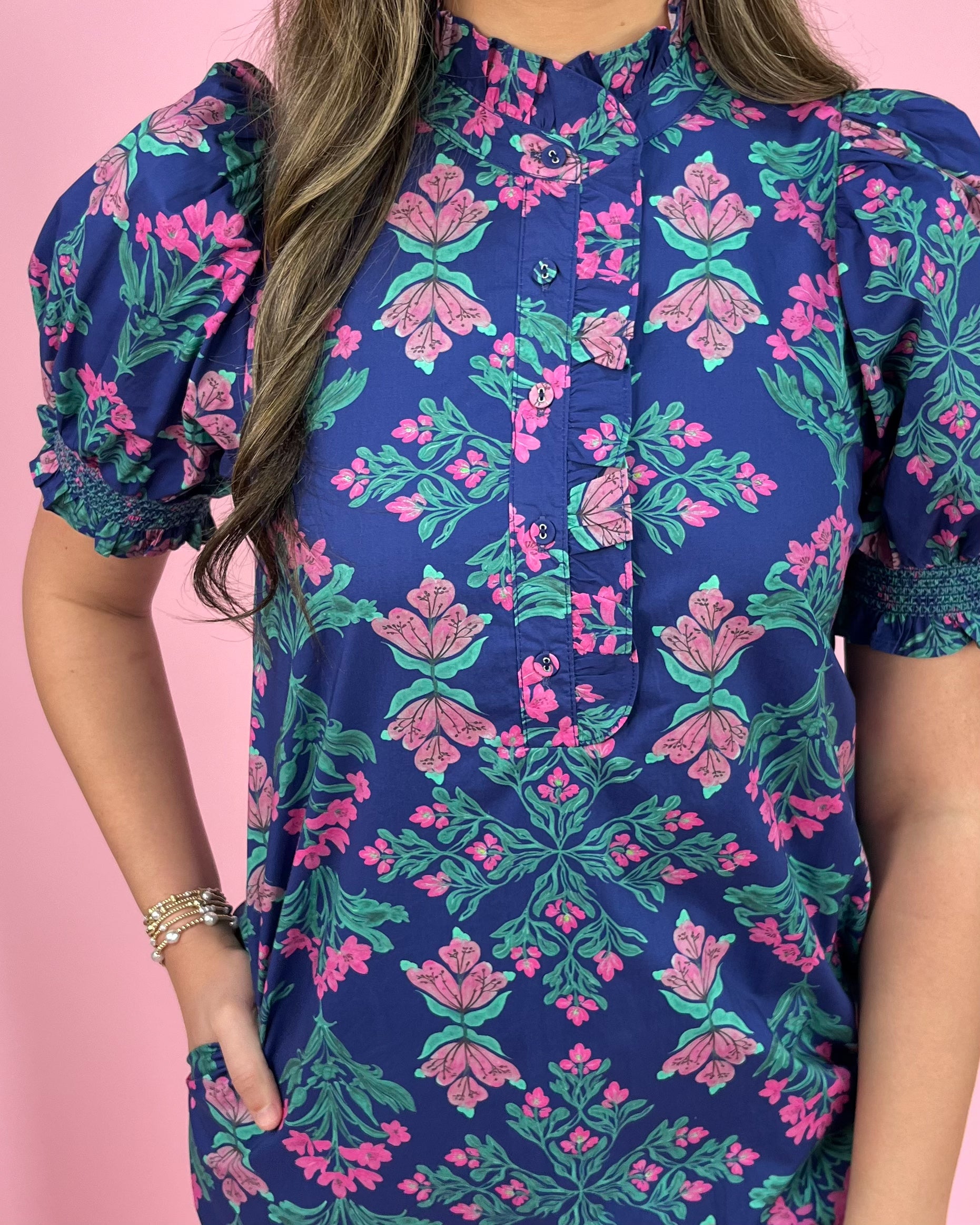 Bold, beautiful, and bursting with color — this navy floral maxi is an instant mood booster! The vibrant pink and green botanical print pops perfectly against the deep navy background for a look that feels both playful and polished. 💐💙