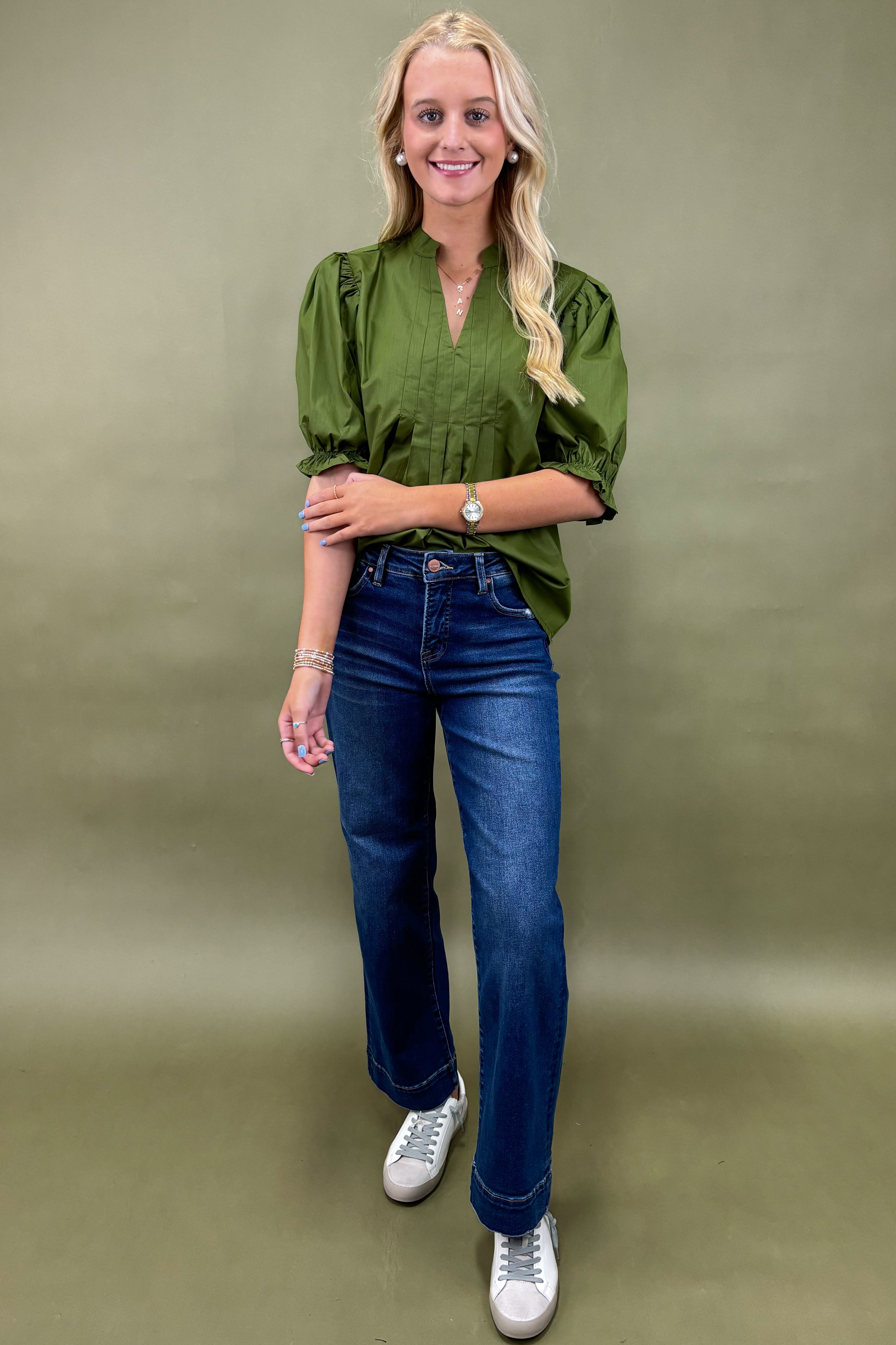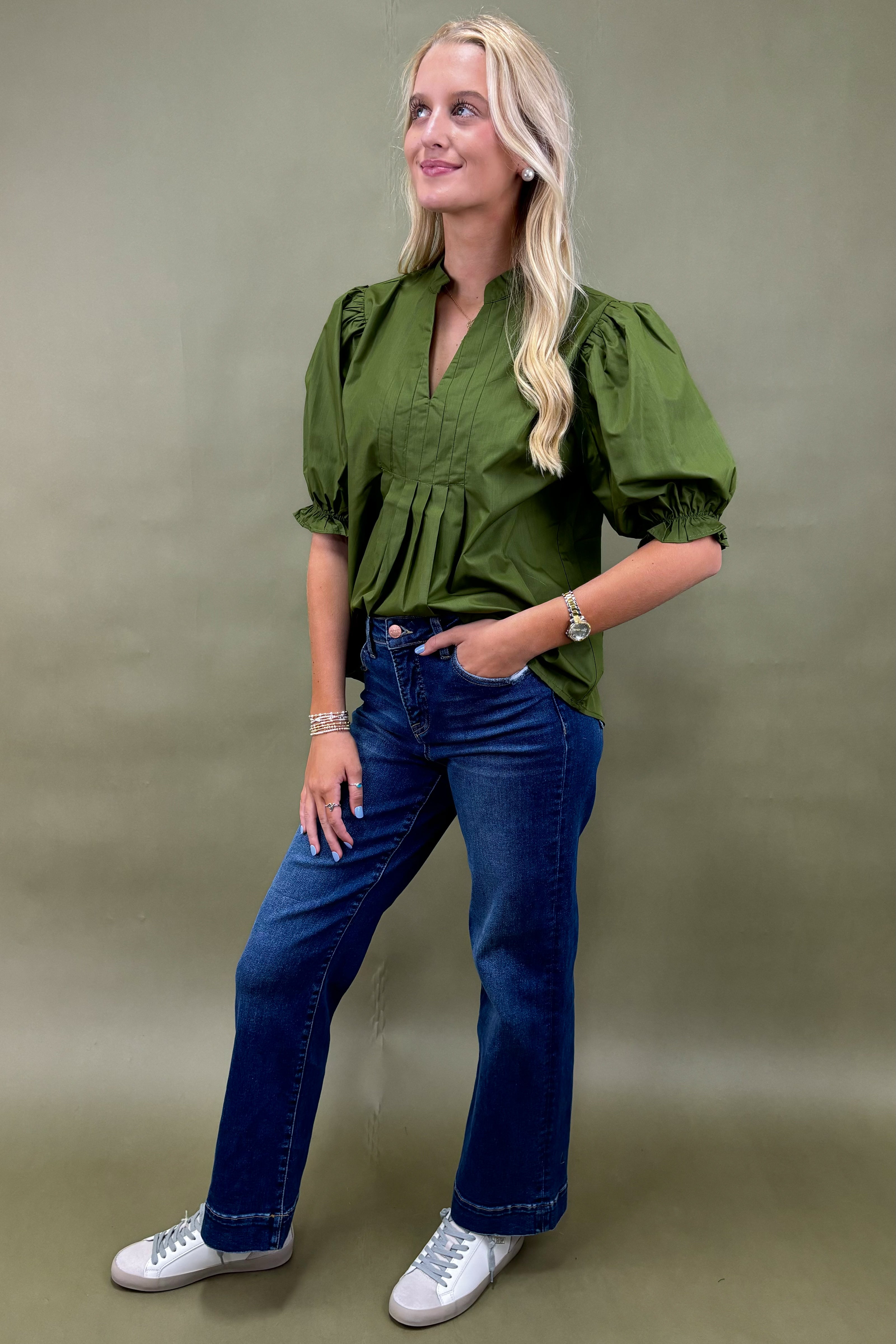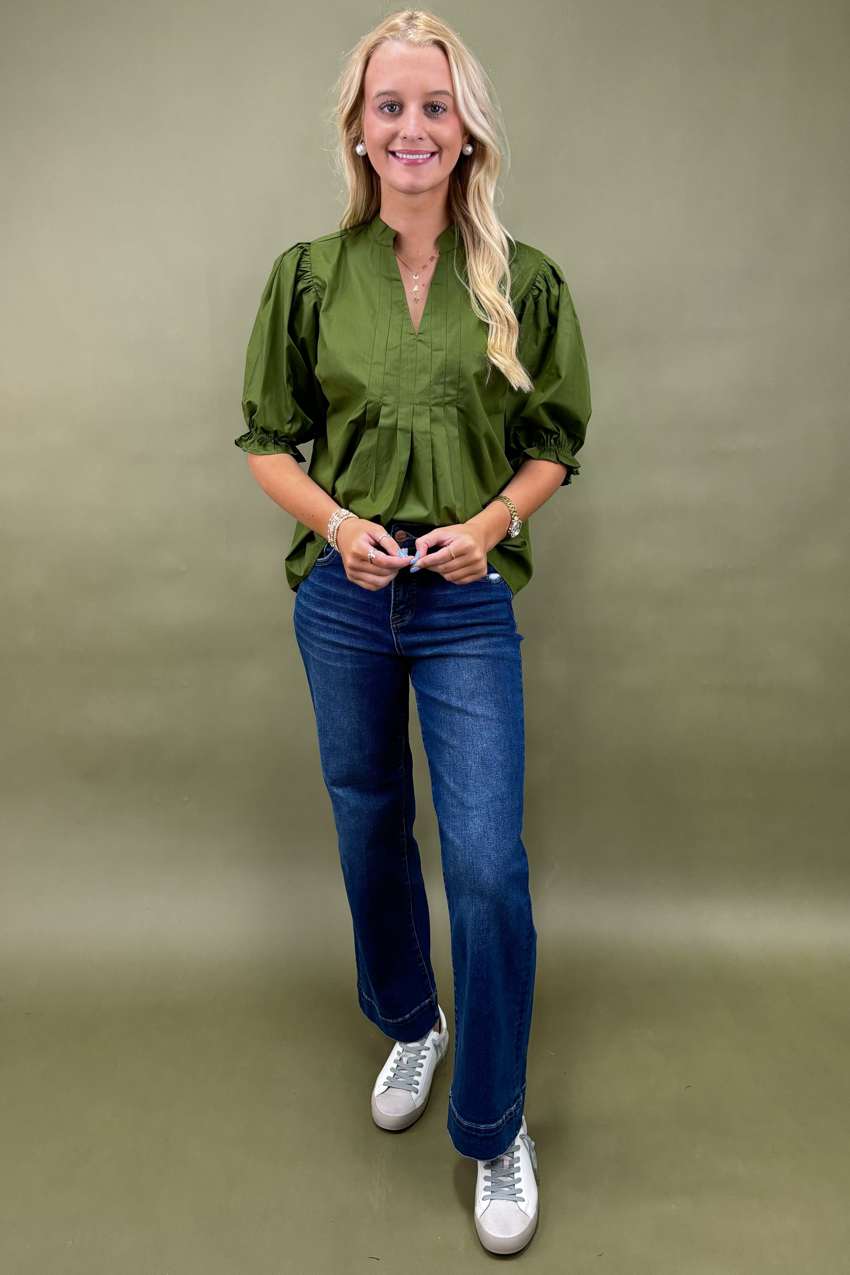 If you’ve been searching for that perfect balance of sophistication and flair, this olive pleated top is destined to be your new favorite. With its vibrant yet earthy-toned hue, tailored pleating, and structured puff sleeves, it brings together elegance, confidence, and a touch of drama. Whether you’re dressing it up for a polished workday look or styling it down for an effortlessly chic weekend outfit, this top delivers versatility and style in spades.