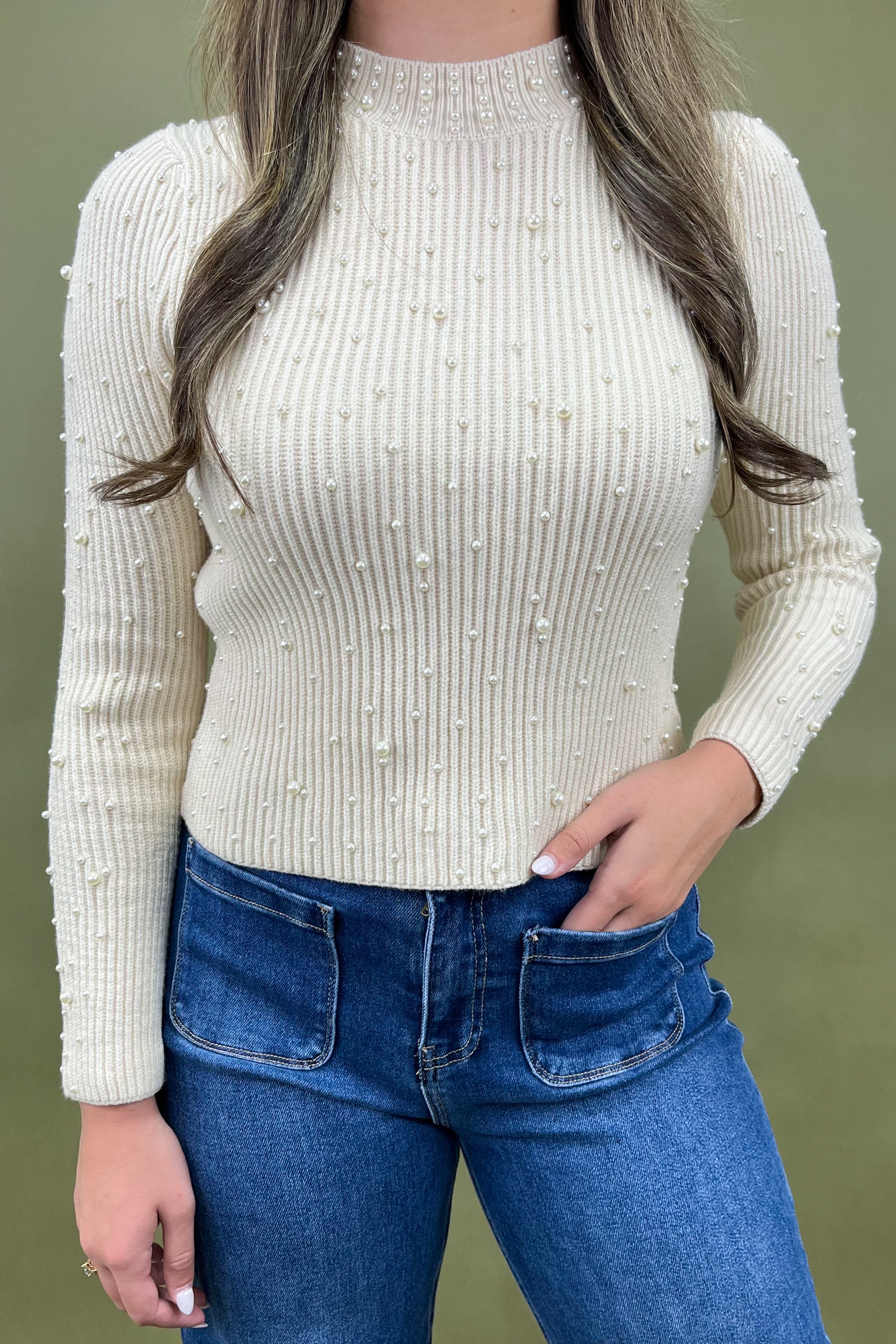 The Polished Pearl Knit Sweater is the definition of understated glamour â soft, feminine, and endlessly versatile. Itâs the kind of piece that makes you feel put-together in seconds, whether youâre dressing up or winding down. Every pearl catches the light, every detail feels intentional â itâs cozy, classy perfection.