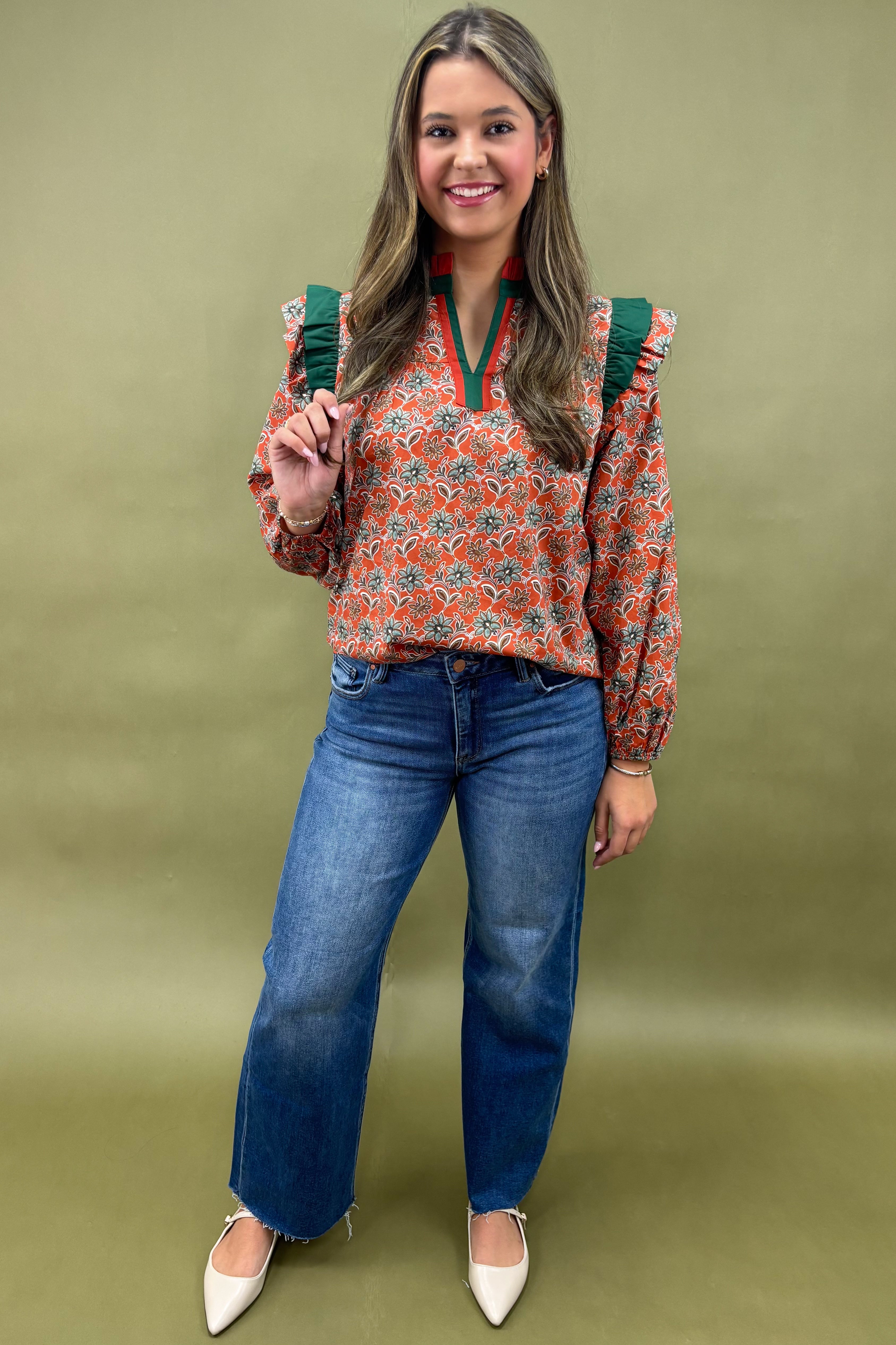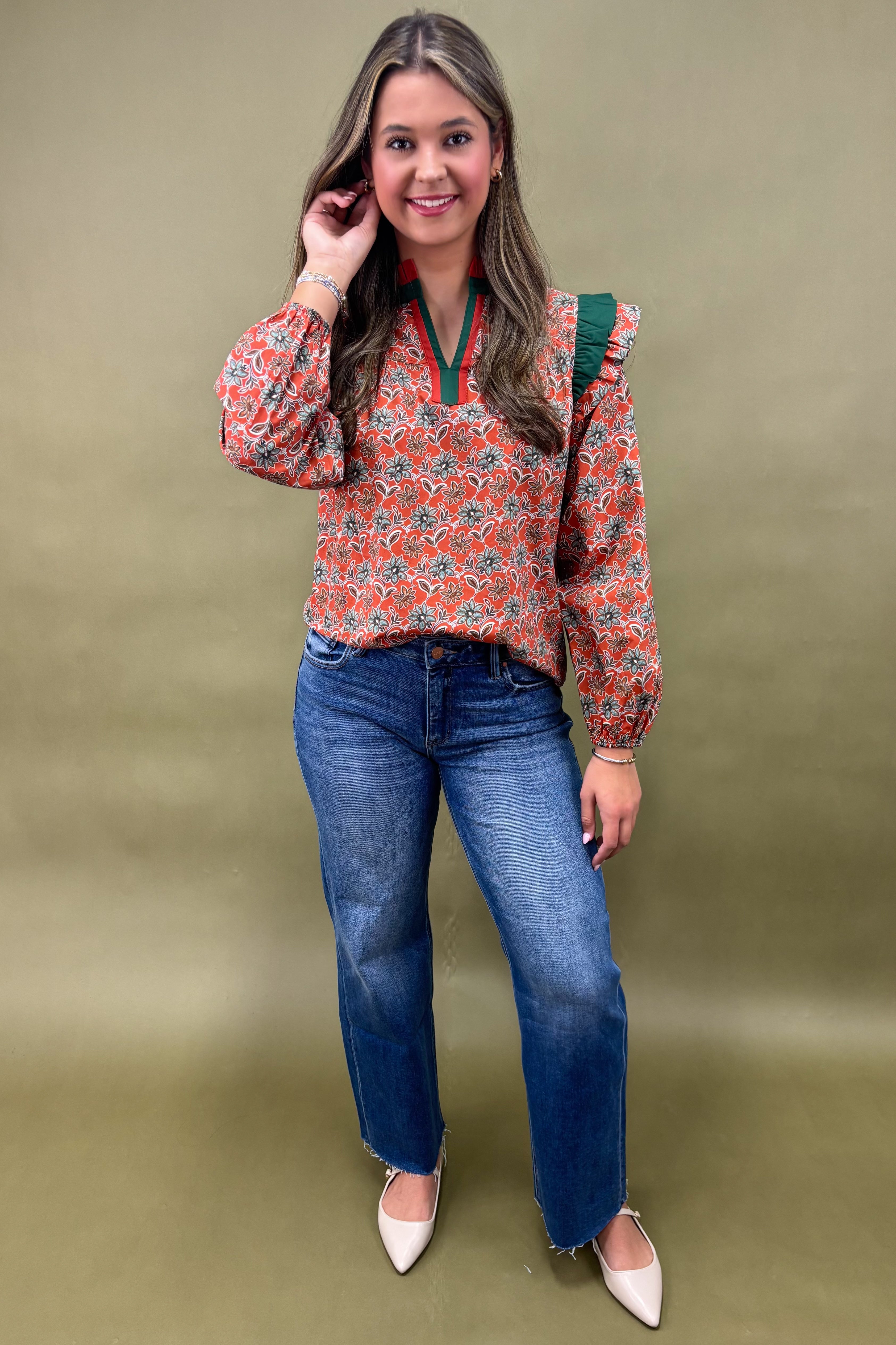 With its vintage-inspired pattern, bold use of color, and charming details, this blouse feels like something you’d discover in a boutique on a hidden street while traveling—but lucky for you, it’s ready to bring all that wanderlust energy straight into your closet.