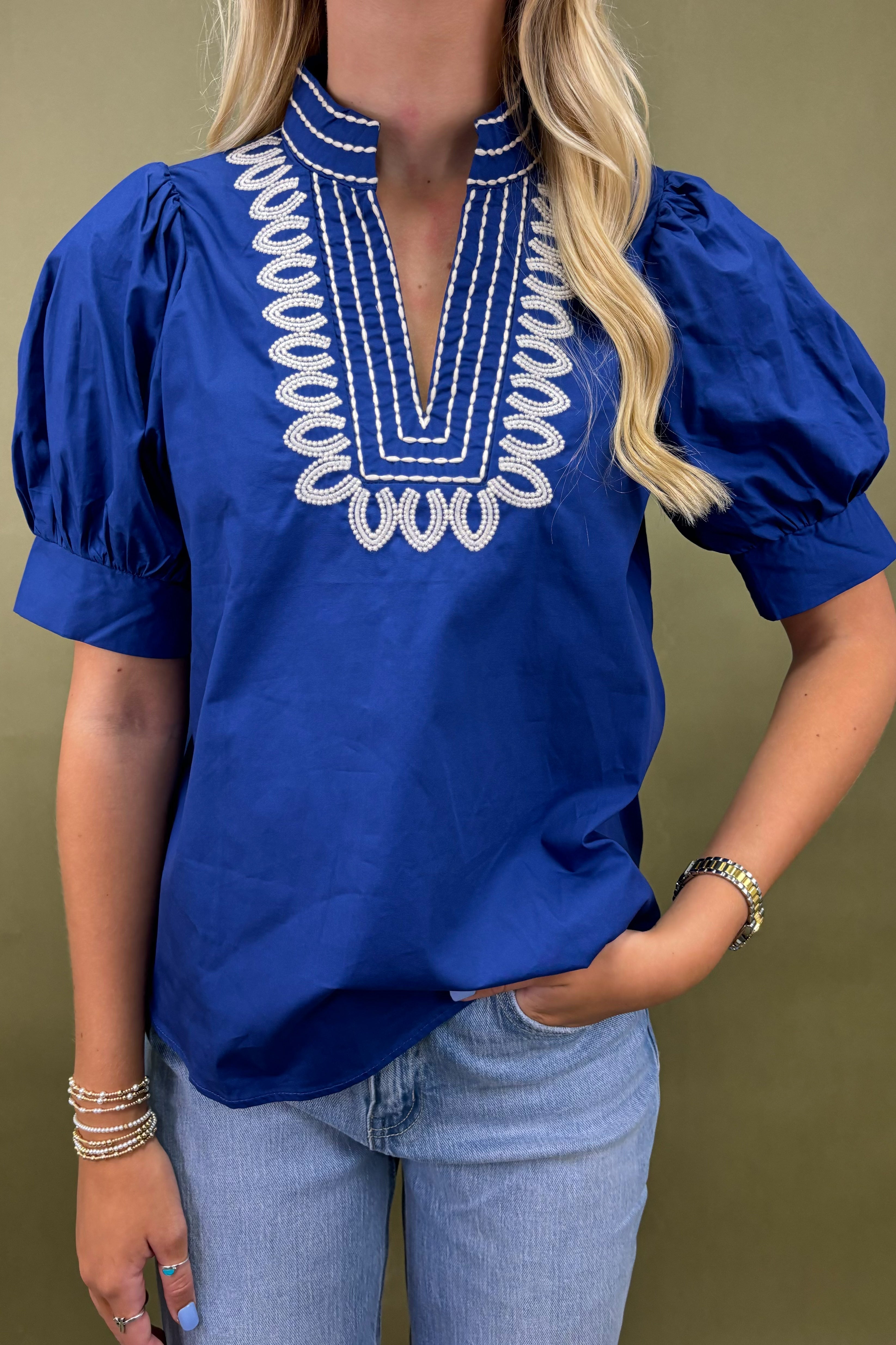 The Royal Radiance Puff Sleeve Top is the definition of a statement piece you’ll actually wear. The bold color gives it a standout presence, the embroidery offers timeless detail, and the silhouette strikes the perfect balance between polished and playful. It’s ideal for anyone who loves tops that feel special but can be styled multiple ways.