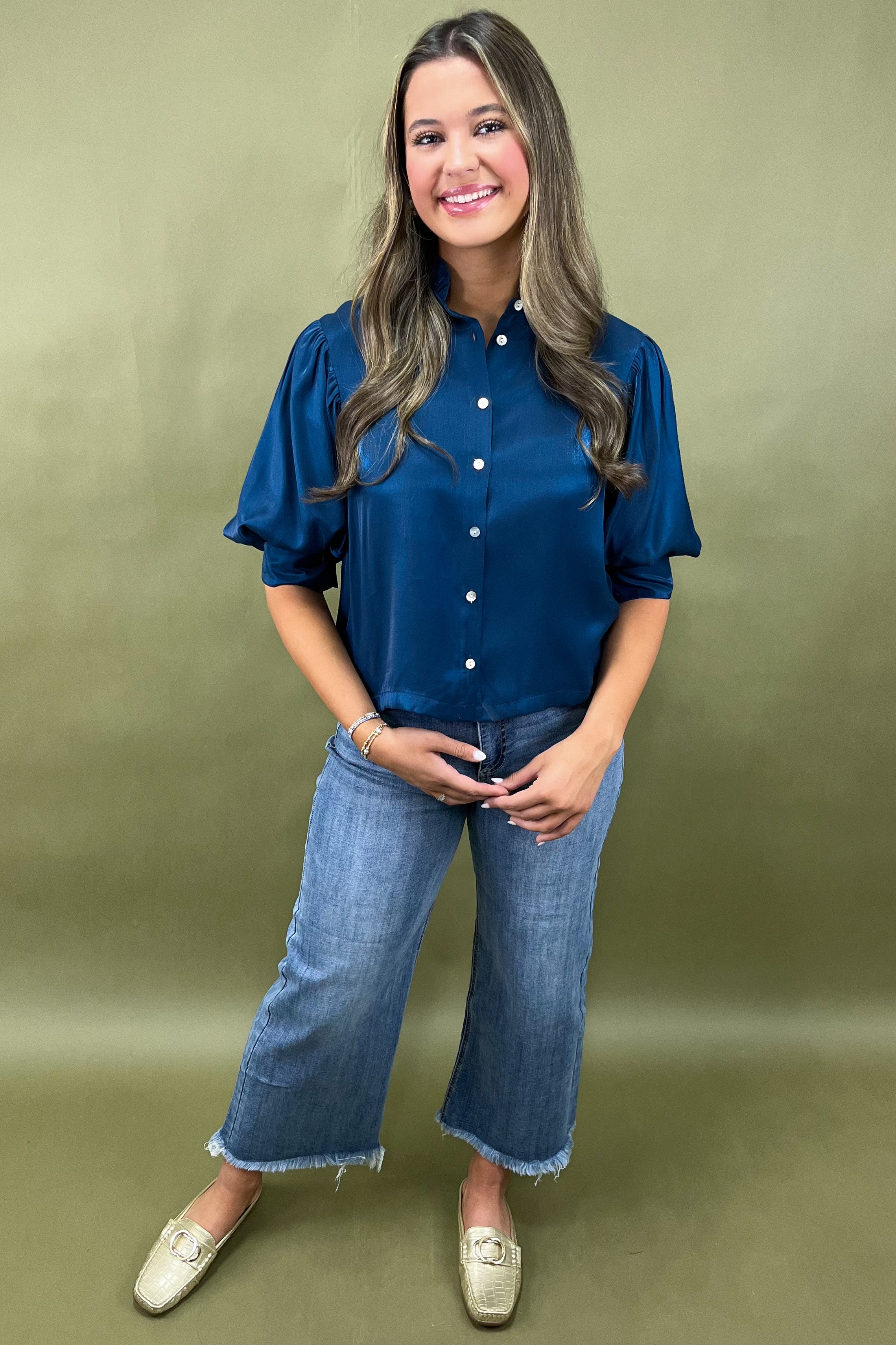 Introducing your next show-stopping style moment — the Royal Rhythm Puff Sleeve Top 💫💙. Bold, beautiful, and designed to turn heads, this rich navy blouse is a total power move wrapped in silky sophistication. Whether you’re dressing it up for a night out or adding a touch of drama to your weekday wardrobe, this piece will have you strutting through your day like it’s your own personal runway.