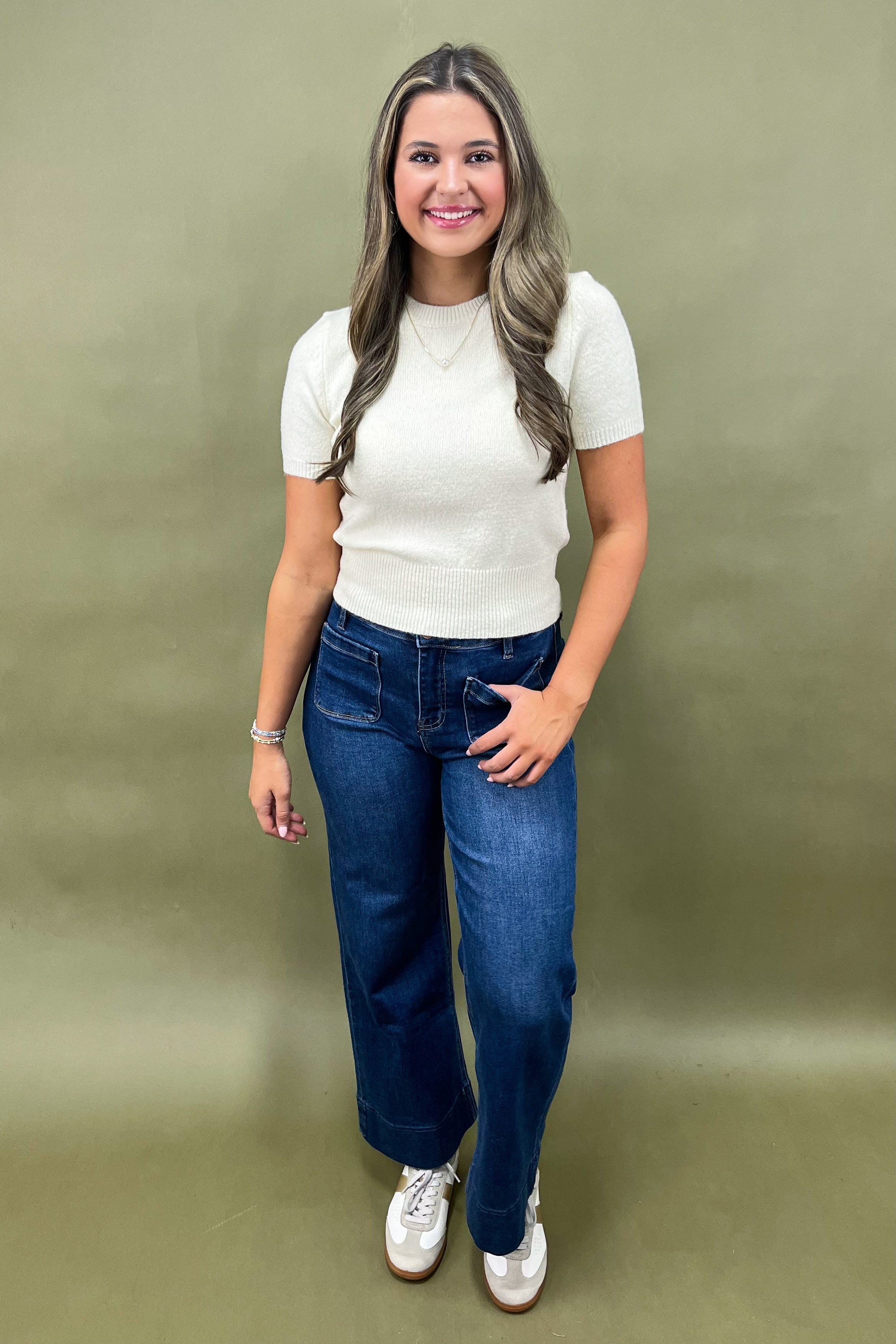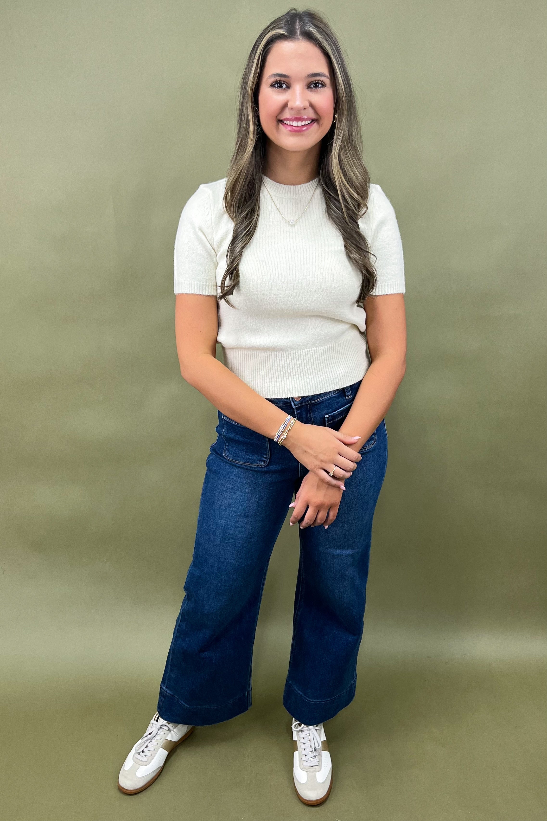 Soft, sweet, and oh-so-chic—the Cream Dream Sweater is everything you’ve been searching for in a lightweight knit. She’s cozy without being heavy, polished without being fussy, and versatile enough to wear through every season. With her creamy ivory hue and easy short-sleeve silhouette, she’s the kind of piece that will quickly become your wardrobe BFF. ✨