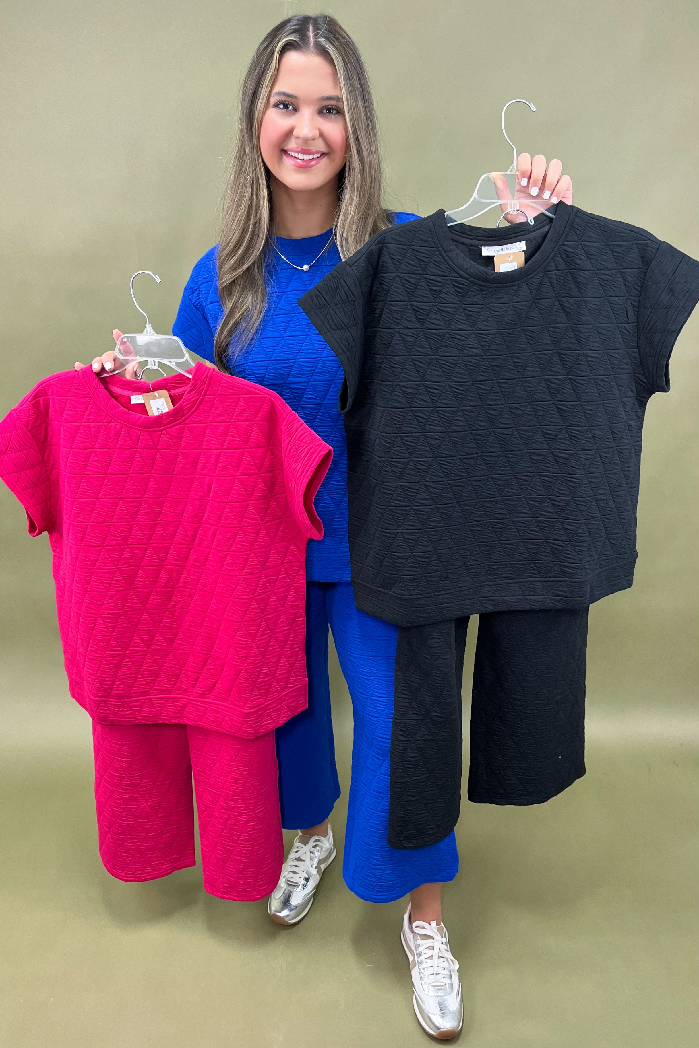 When a wardrobe staple meets a touch of texture, you get The Everyday Charm Quilted Set 💫. She’s simple enough to wear on repeat, yet special enough to make you feel put-together every single time. Featuring a modern quilted diamond pattern that’s as chic as it is cozy, this two-piece set (top + bottoms) effortlessly blends casual comfort with a stylish edge. Think of it as your "not-so-basic basic" — the kind of outfit you’ll want in every color.