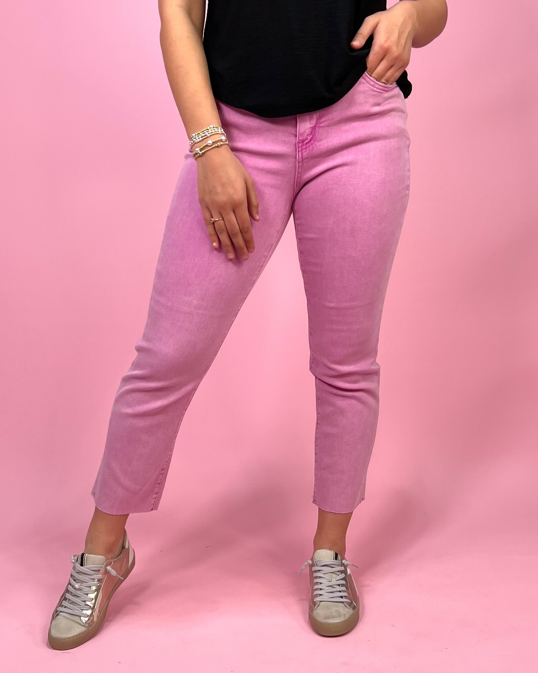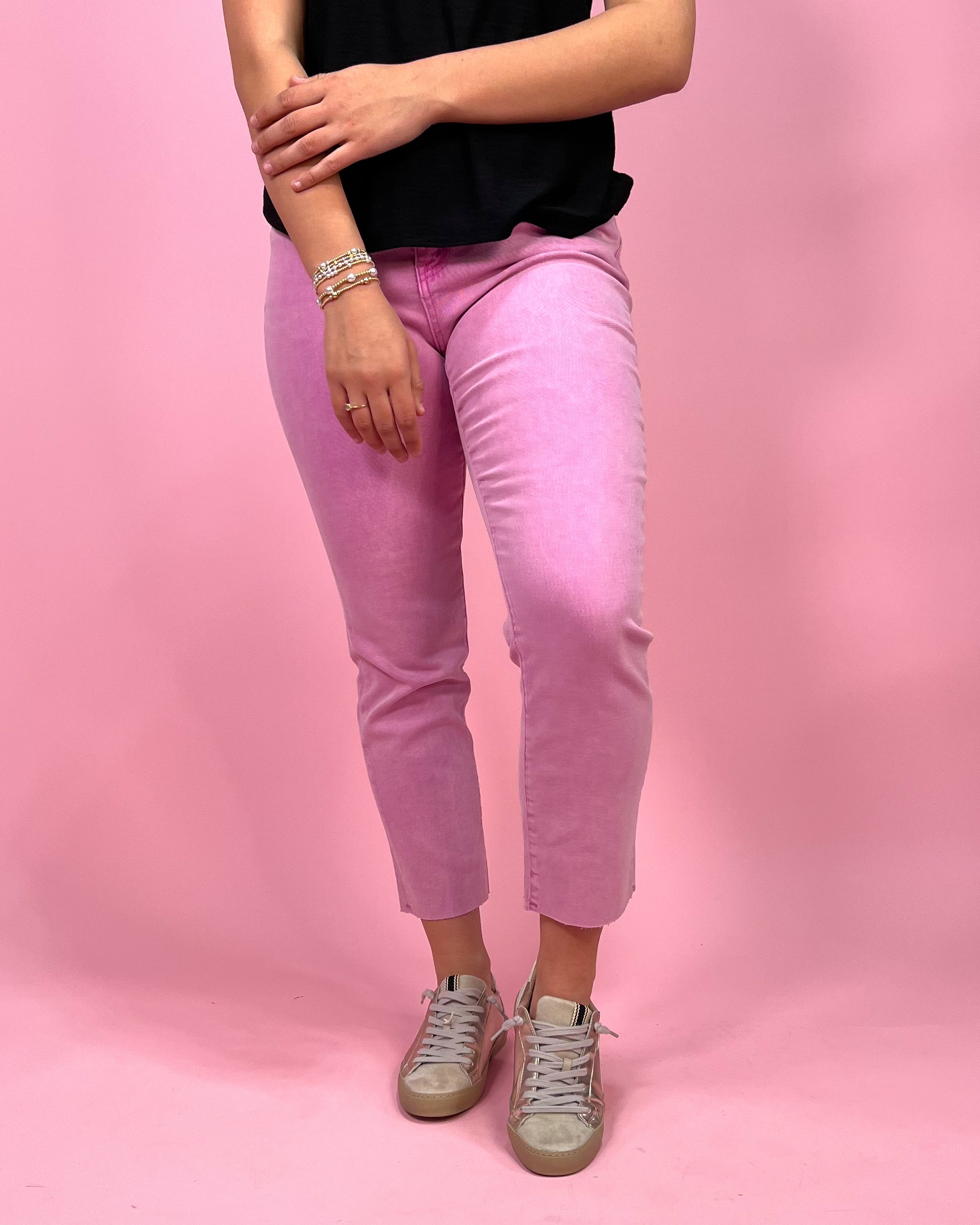 Meet the Idina Mauve HR Ankle Straight Jeans — the perfect soft pop of color for everyday wear. This beautiful mauve denim gives you a fresh, feminine look while still keeping the classic silhouette you reach for again and again.