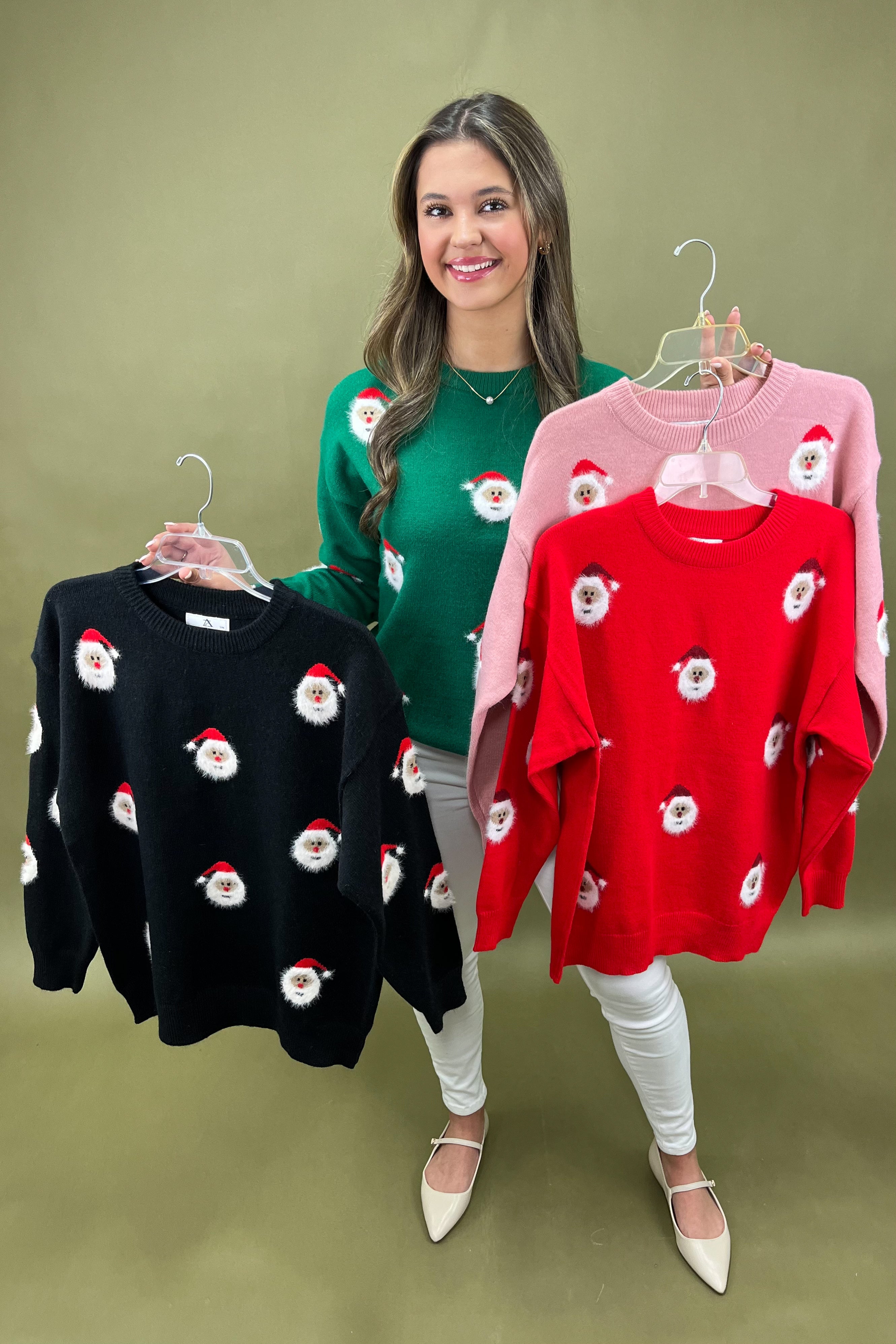 If holiday cheer could be woven into fabric, it would look exactly like this sweater đ«. With its vibrant red base and the cutest little Santa faces sprinkled all over, this knit is your go-to for every holly-jolly occasion. Whether youâre sipping cocoa by the fire, decorating the tree, or heading to your annual ugly sweater party (spoiler: yours will actually be the cutest one there đ), this piece delivers festive fun in the coziest way.