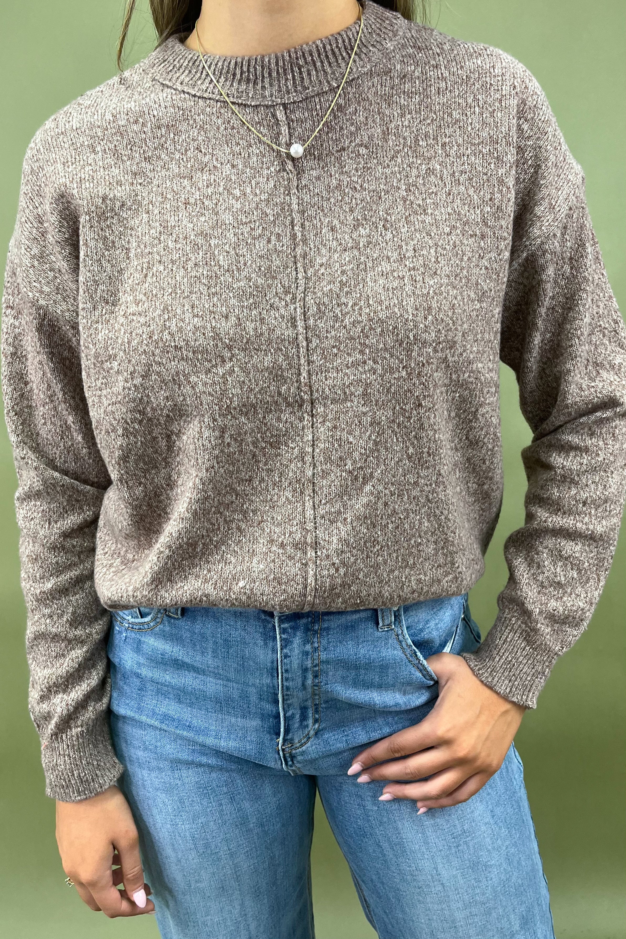 Every closet deserves a sweater that feels like comfort but looks effortlessly chic—and that’s exactly what you get with The Mocha Moments Sweater. She’s soft, cozy, and oh-so-wearable, with a heathered mocha knit that’s as warm and inviting as your morning latte.